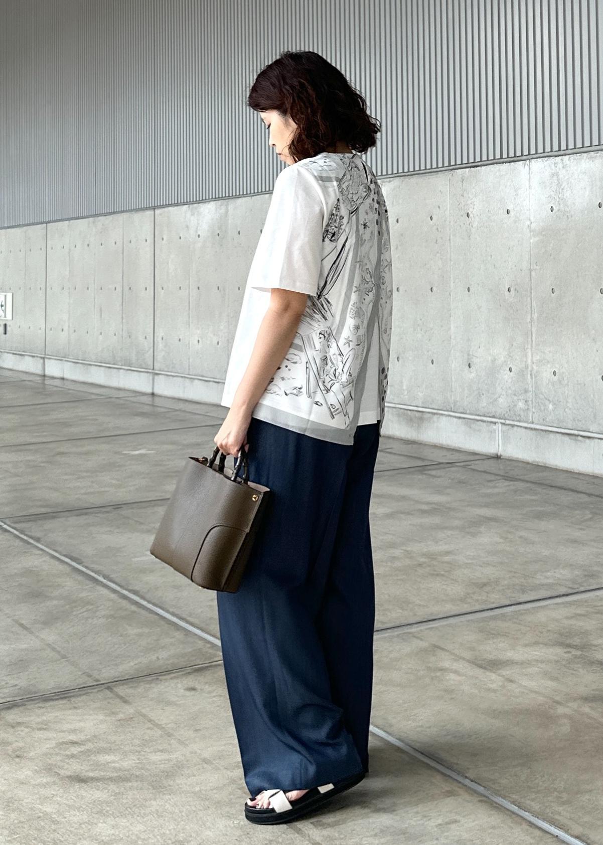 バックのプリントもモノトーンなので色合わせも困りません。 -