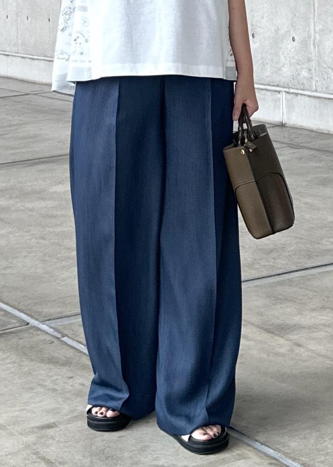 ROPÉ【洗える・カセット服・新色追加】バックサテンイージーワイドパンツ/お仕事・通勤・セットアップ対応ネイビー系 / 36¥27,500レビュー身長161㎝で普段38サイズを着用。