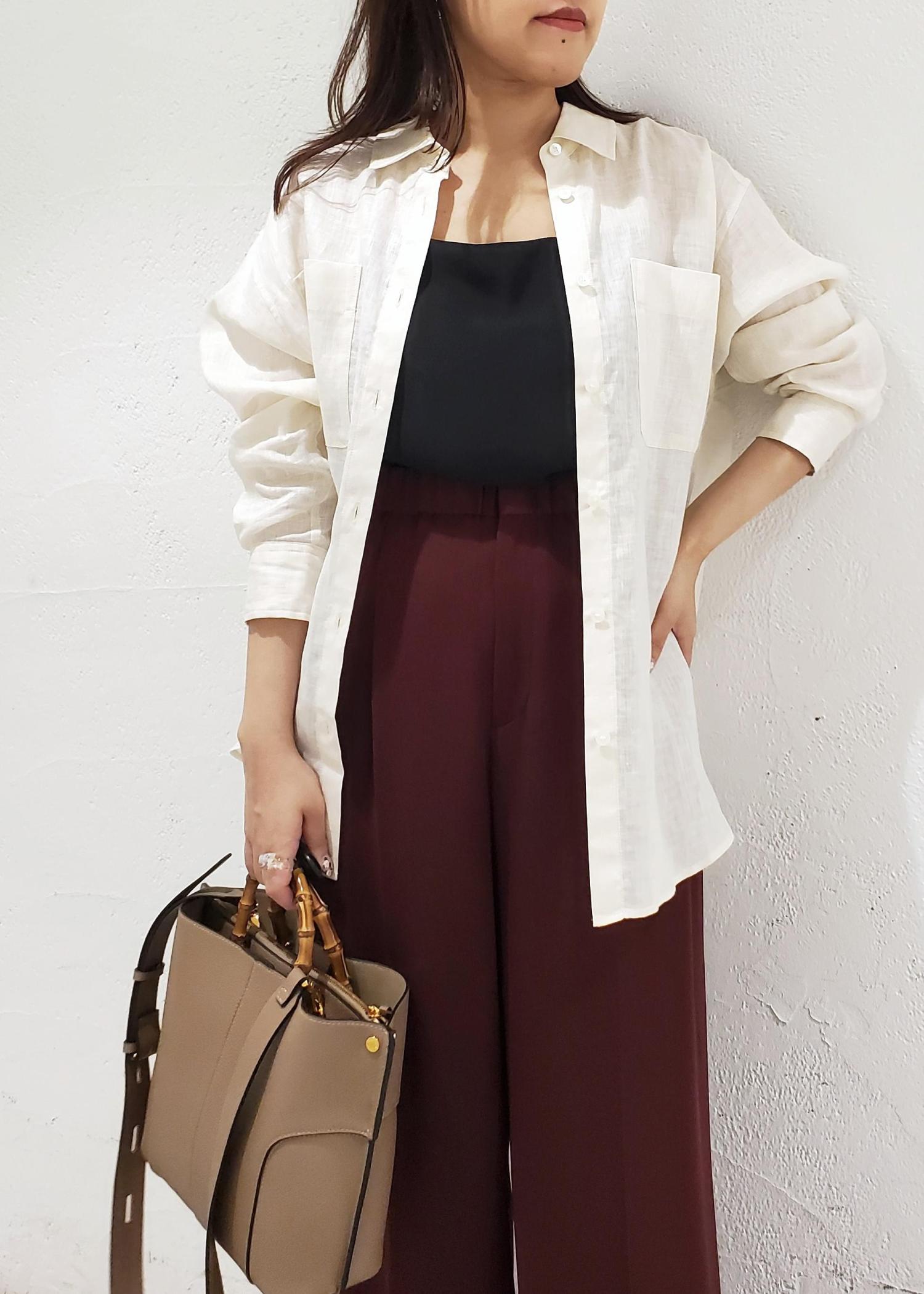 さらっとした素材感で、しわになりにくいので長時間のデスクワークやご旅行にもおすすめです。 -