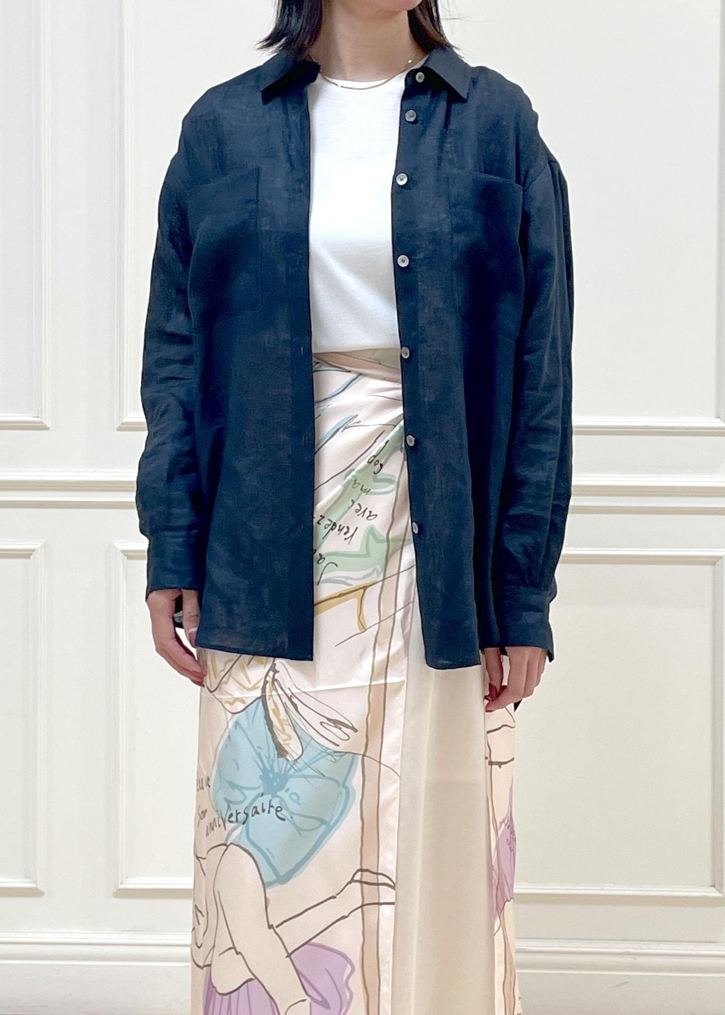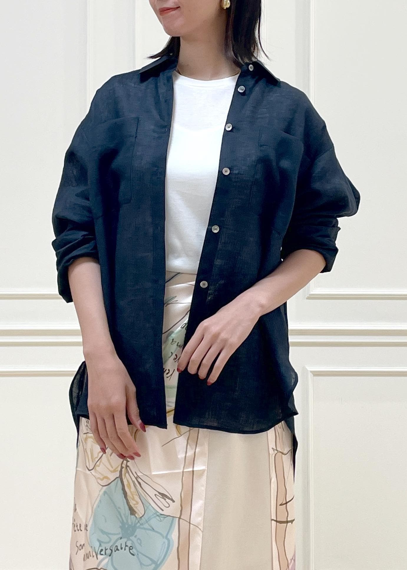 リネン素材で、軽くて通気性バツグン。暑い日もさらっと涼しく着られます。ほどよくハリ感もあるので、ラフすぎず、きちんと見えるのも嬉しいポイント。