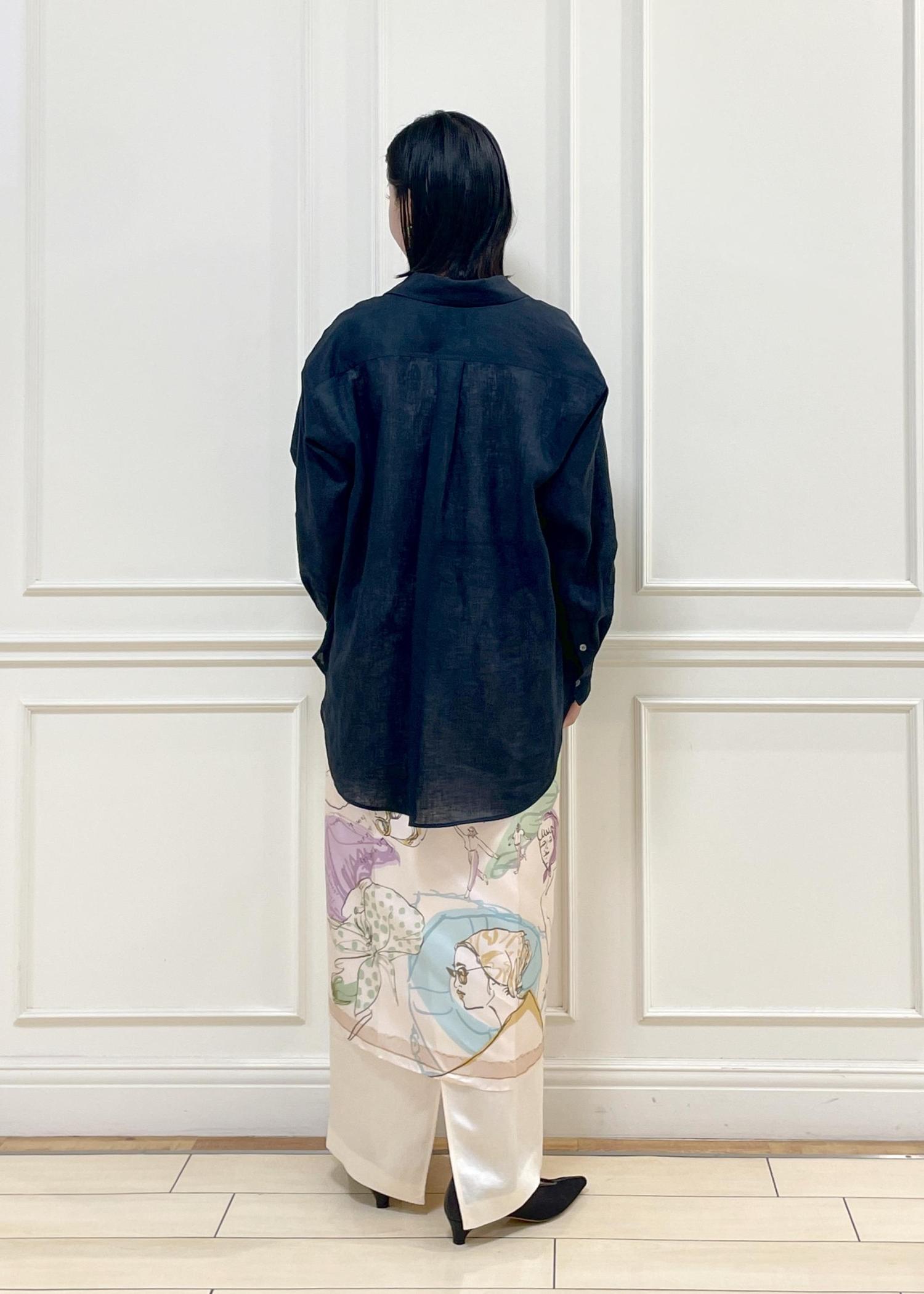 トップスには、ゆとりのあるリネンシャツを羽織り、抜け感をプラス。