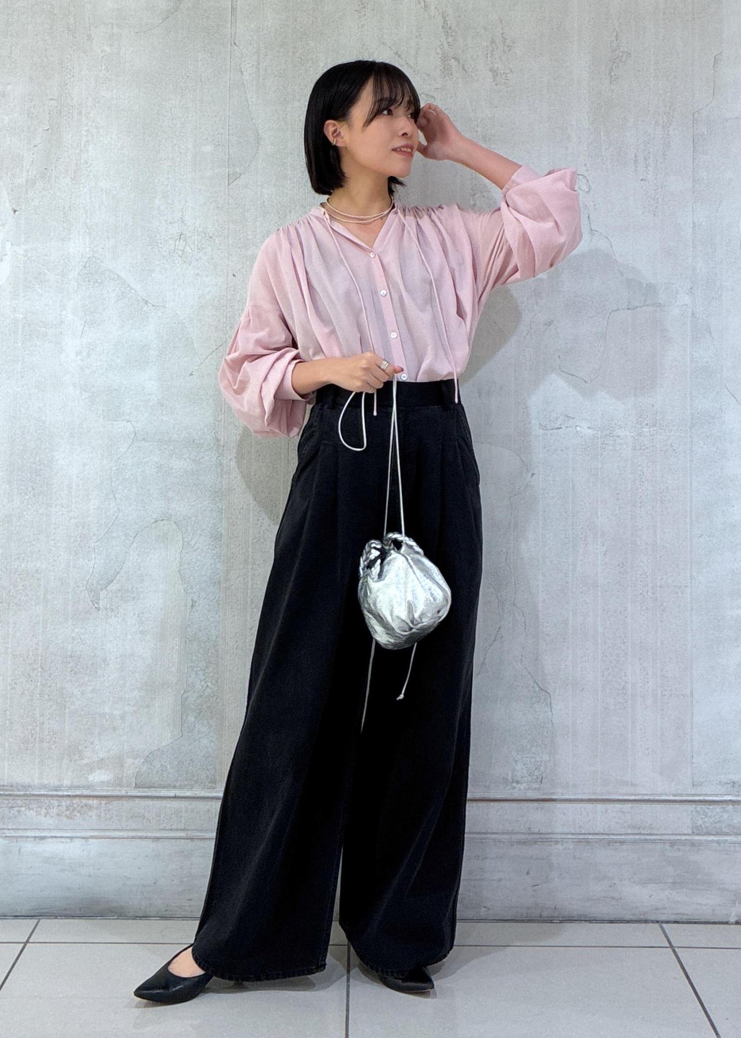 夏のスポーティから気分を変えて、少しフェミニンなピンクブラウスコーデを組んでみました♪