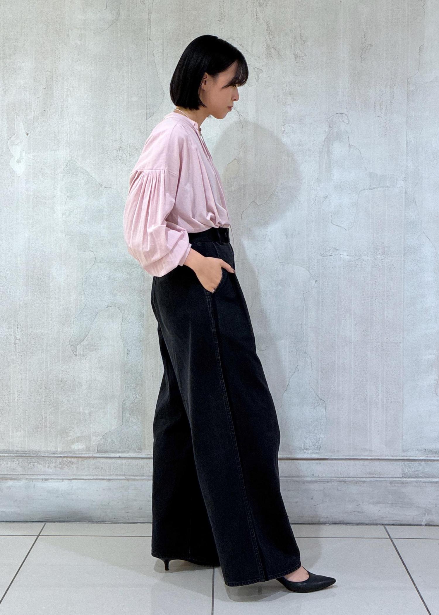 EMOELLE【EMOELLE】・【サステナブル】ドレスデニムパンツブラック系 / 38¥22,000レビュードレスパンツのラインがさり気ない、ワイドディテールのデニムパンツです。