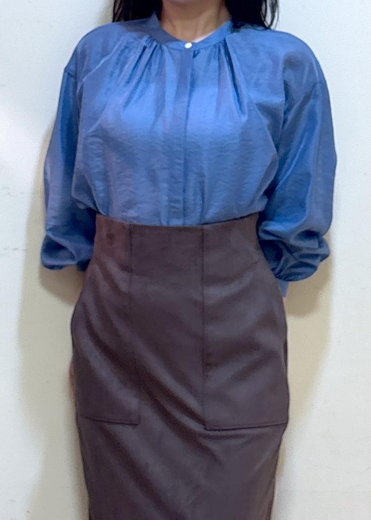 ROPÉキュプラシルクボリュームスリーブブラウス/イージーケアブルー系 / F¥19,800レビュー身長152cm Fサイズ着用