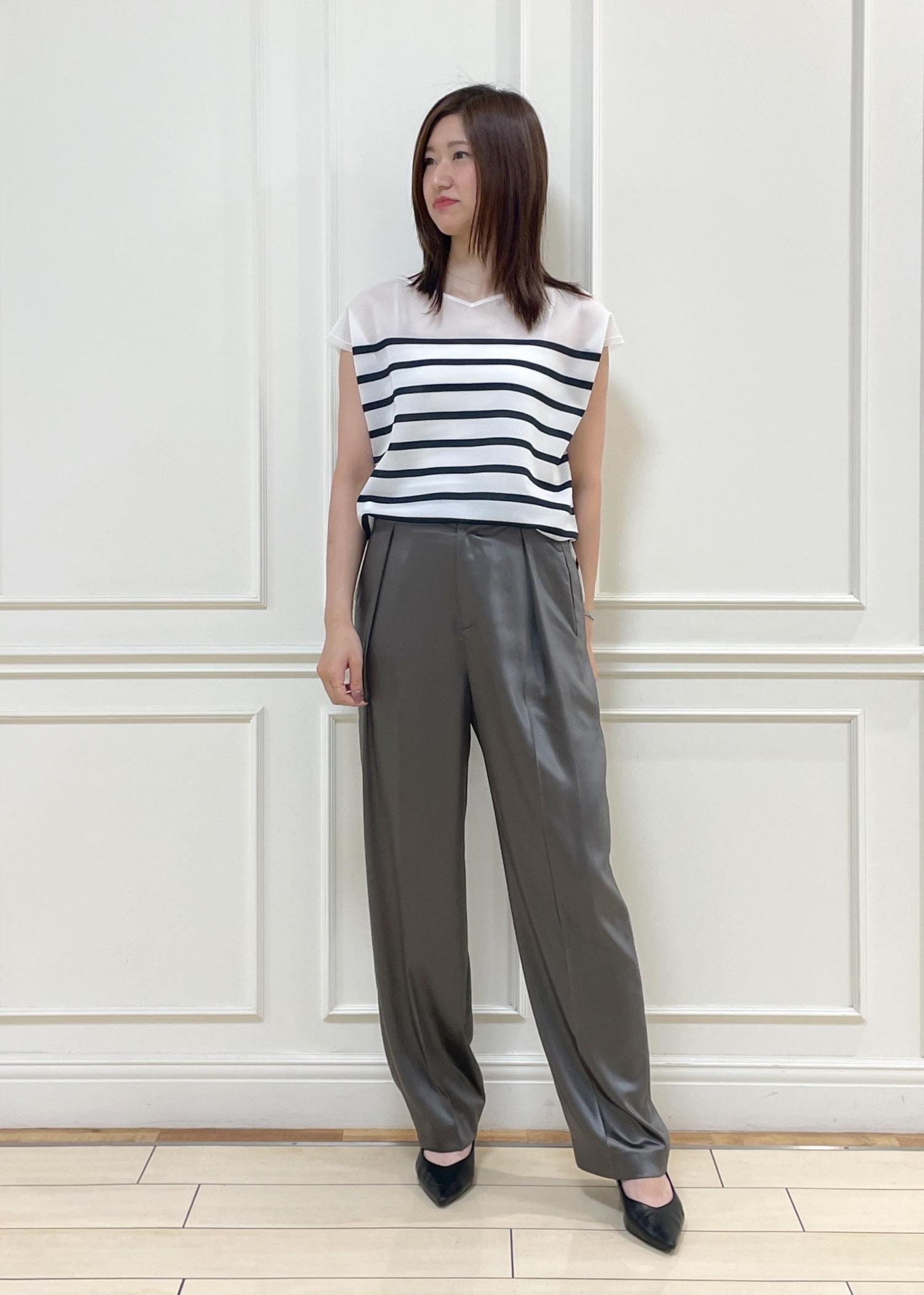 アウトレットROPÉ【WEB・一部店舗限定】ブライトハンマーサテンテーパードパンツ/洗えるカーキ / 38¥9,900レビュー身長166cm、普段から38サイズを着用。