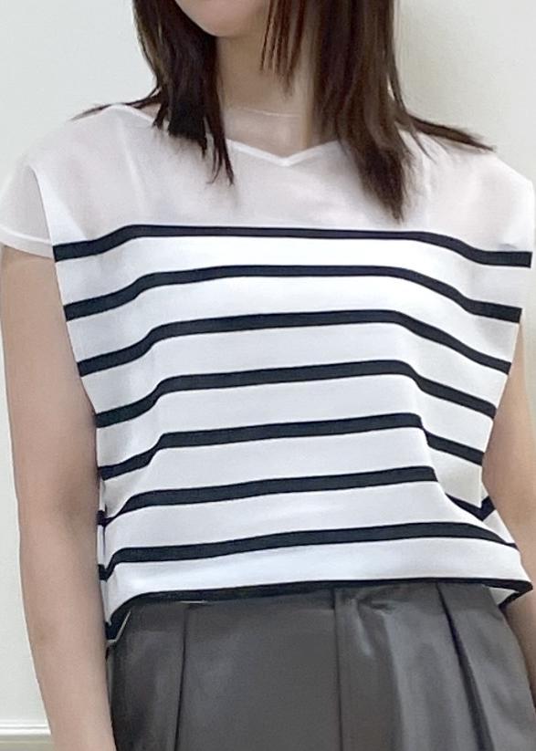 アウトレットROPÉ【洗える】シャイニーフレンチスリーブプルオーバーネイビー / F¥8,250レビュー身長166cm。