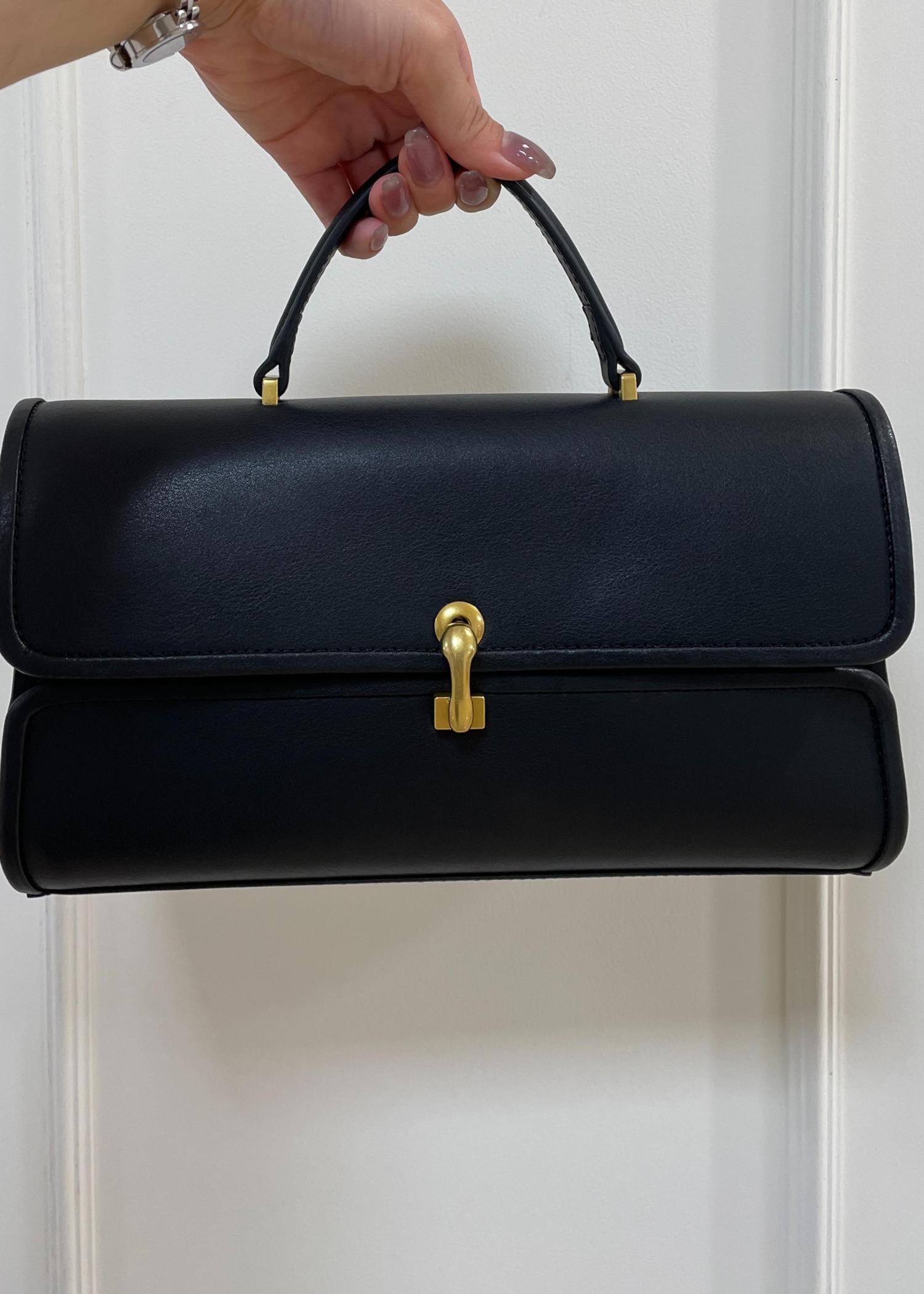 アウトレットROPÉフラップワイドレザーハンドバッグブラック / F¥16,500レビュー横長のデザインで、長財布も楽々入る十分なサイズ感。