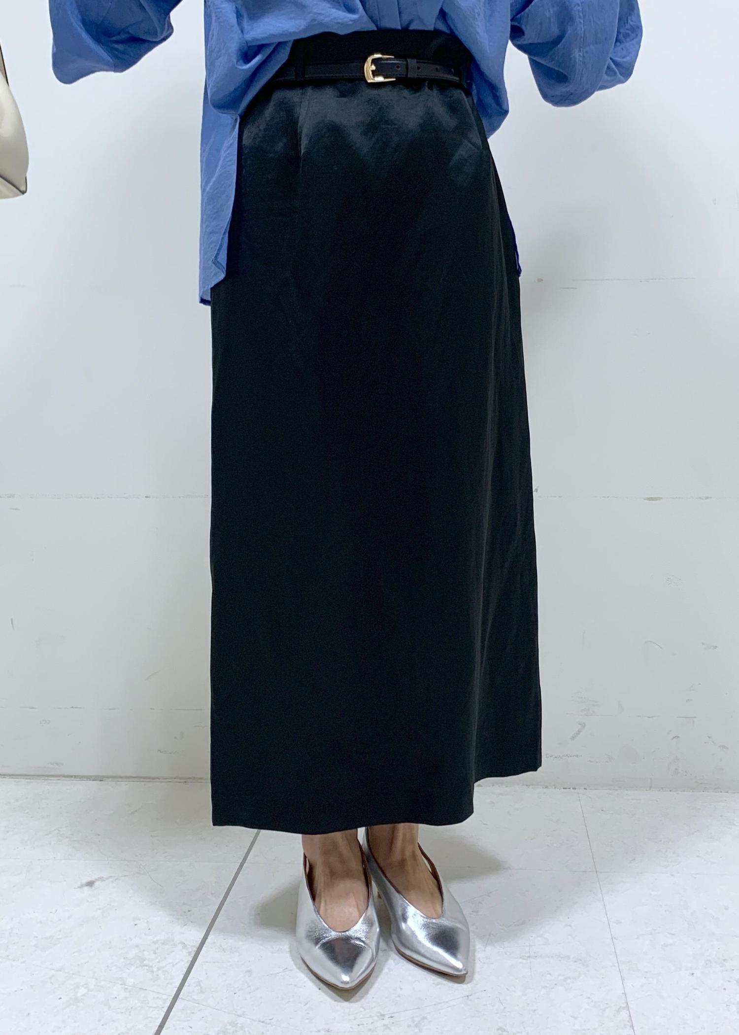 程よく艶の有る素材で上品な雰囲気で着て頂けるスカートです。
