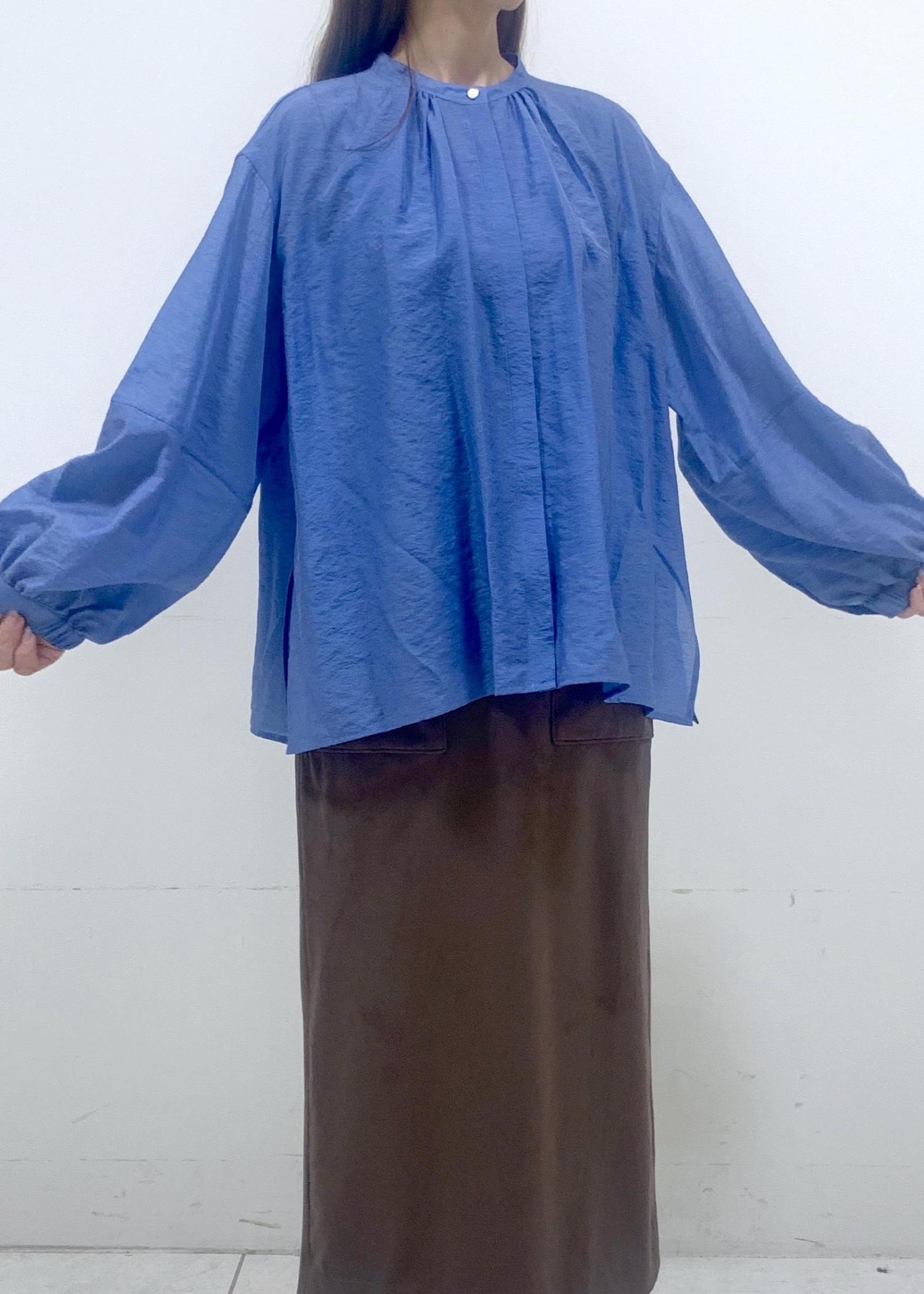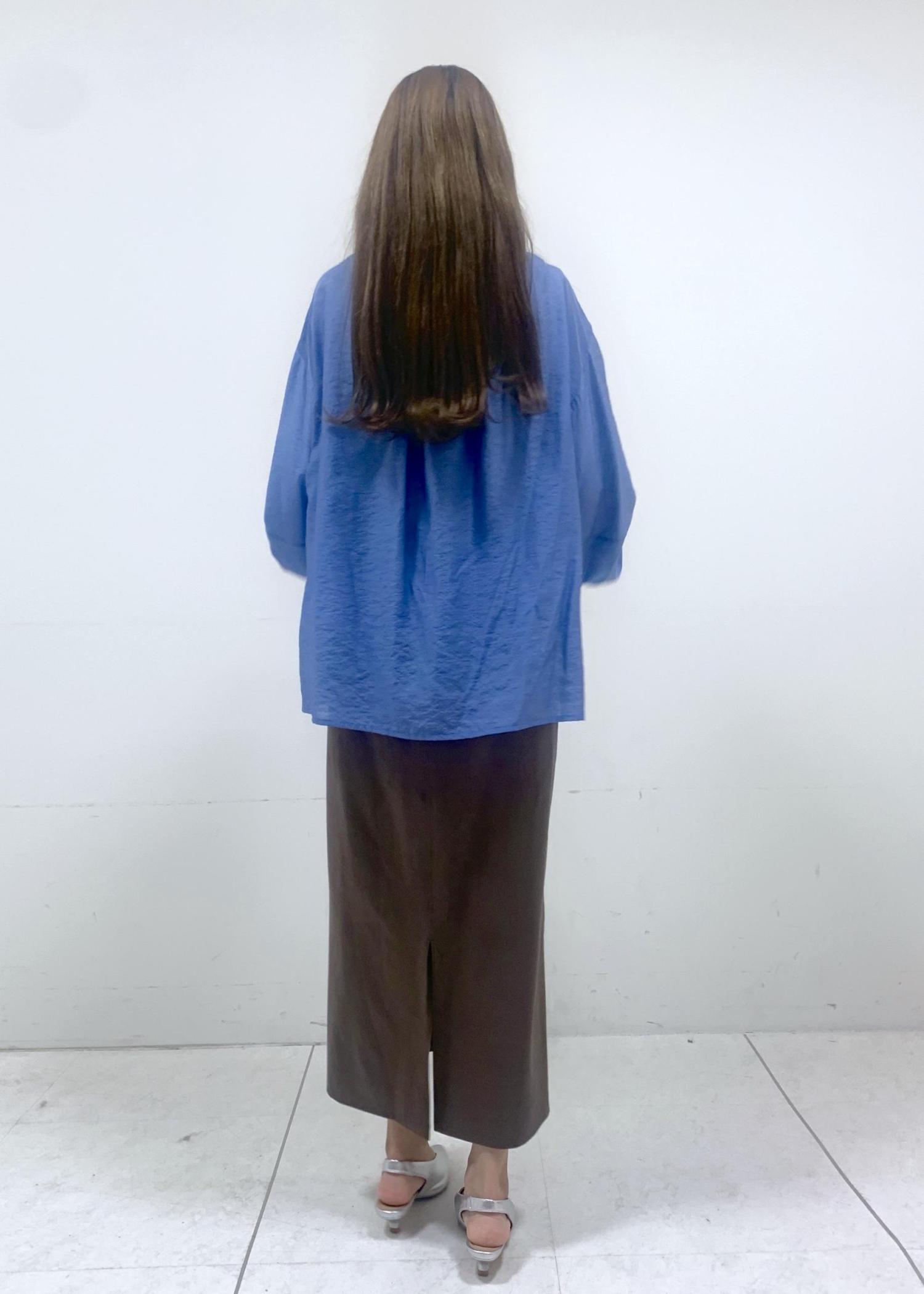ROPÉキュプラシルクボリュームスリーブブラウス/イージーケアブルー系 / F¥19,800レビュー袖のボリューム感がポイントの、ややシアー感のあるブララウスです。