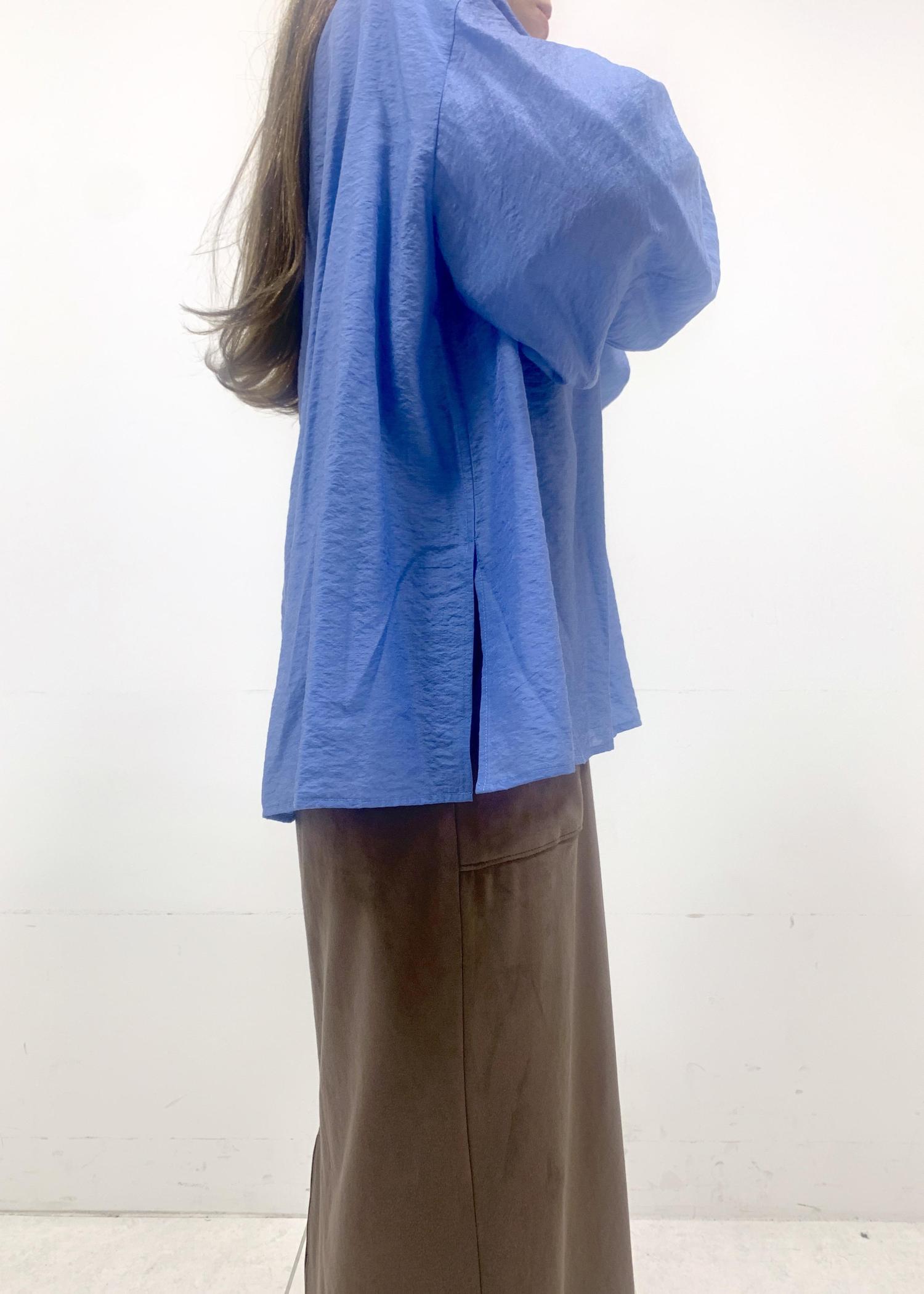 程よい透け感とハリの有る素材で、シワになりにくいです。手首にゴムが入っているので、袖をたくし上げた時に手首が細い方でもちょうど良い位置で止まります。