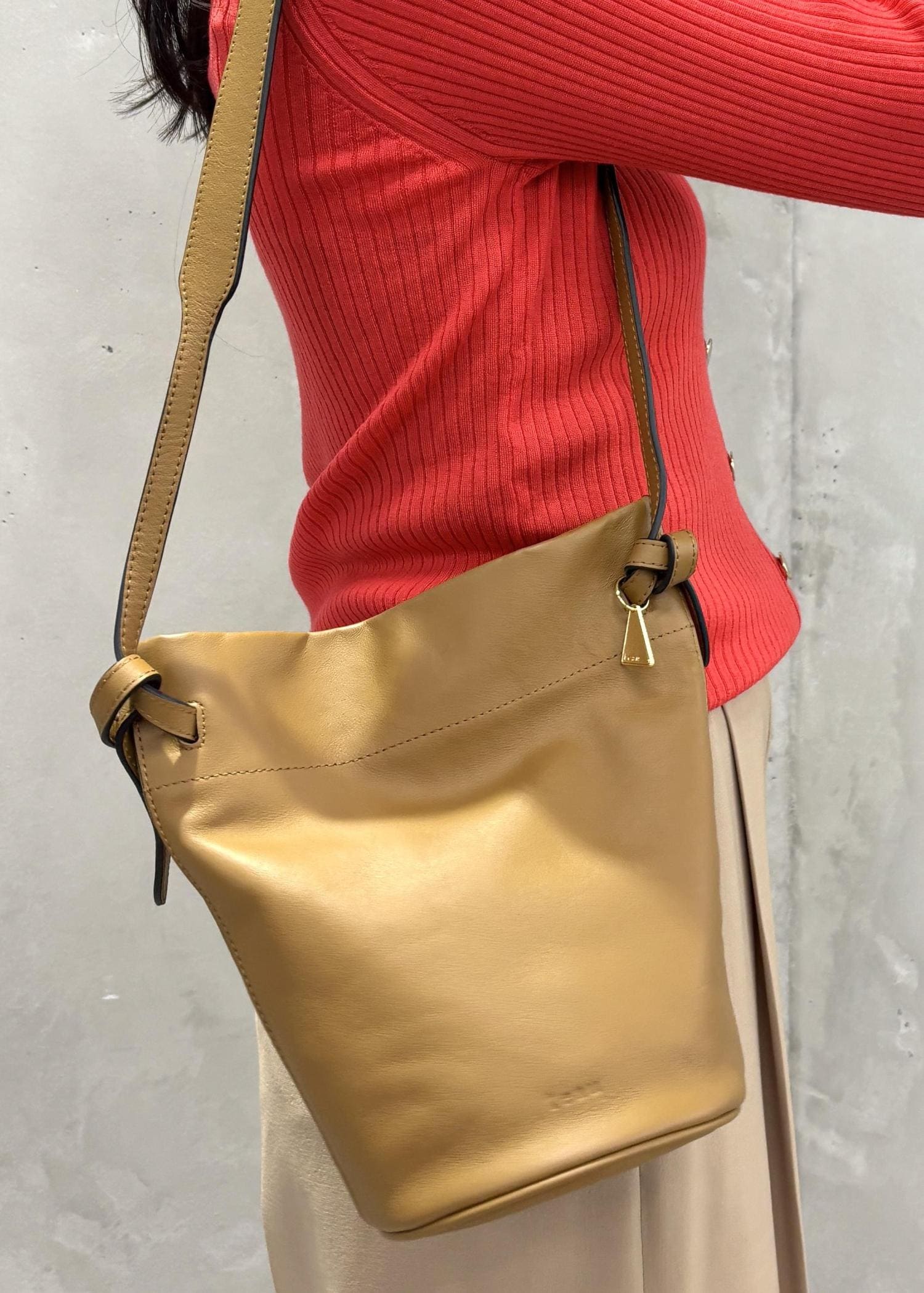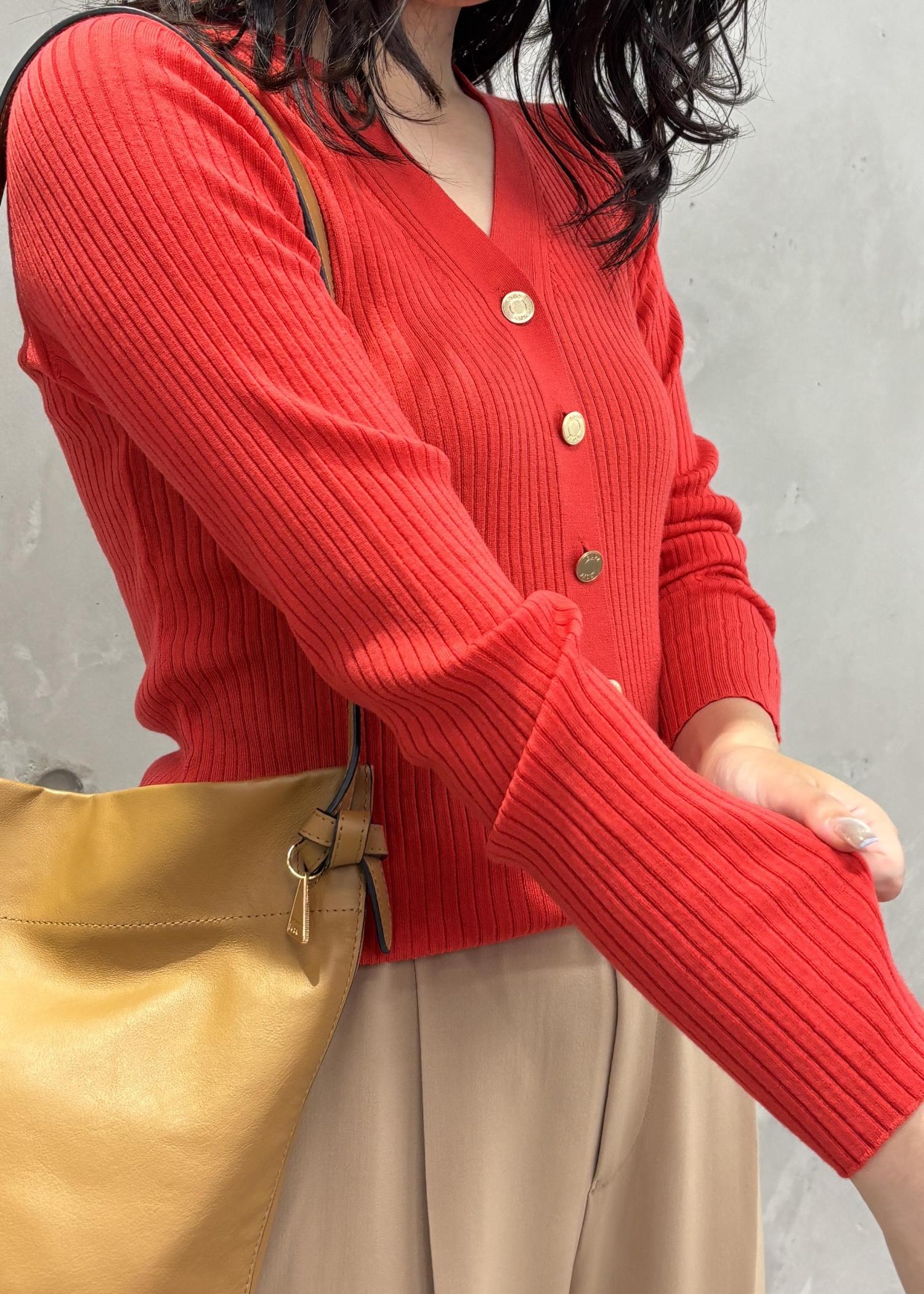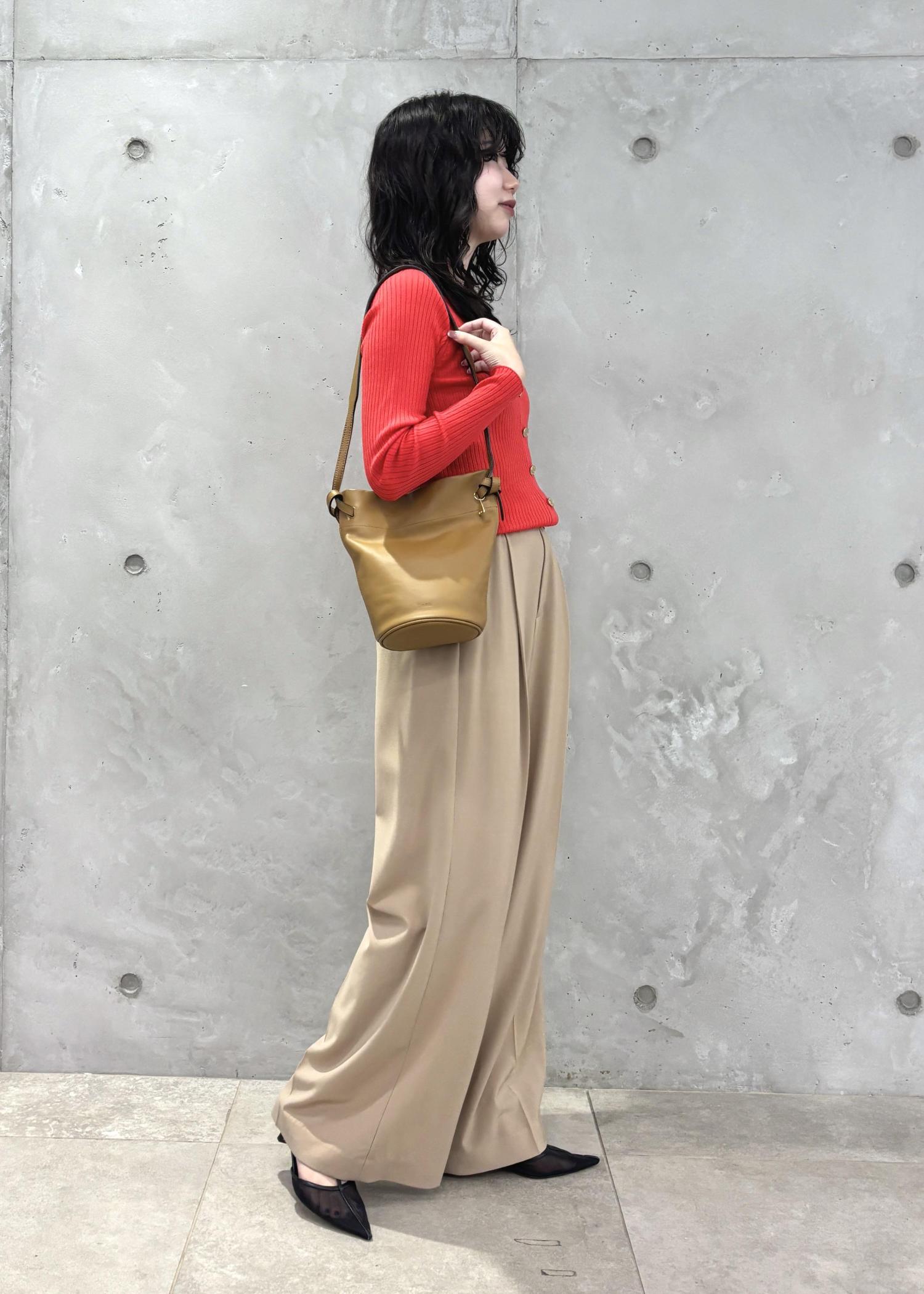 こちらのレッドのカラーは朱赤に近い明るめのカラーなので、暗くなりがちな秋冬のコーデに華やかさをプラスしてくれます♪