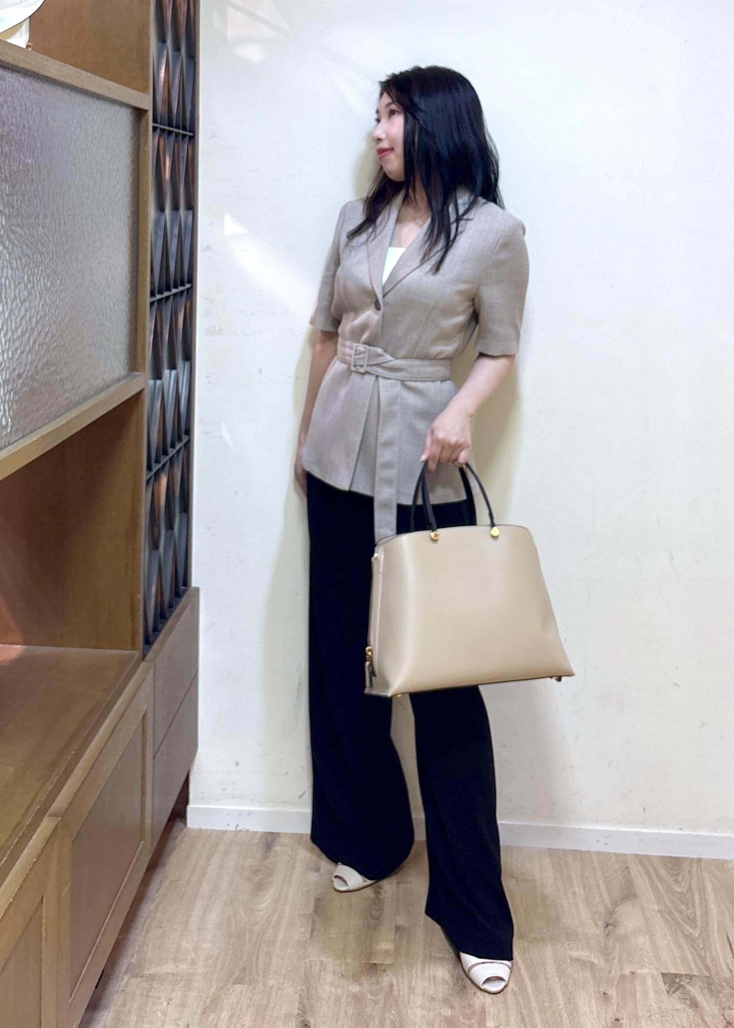 アウトレットROPÉリネンライク ベルテッドジャケット/セットアップ対応ベージュ / 36¥20,900レビュー身長152㎝ 36サイズ着用