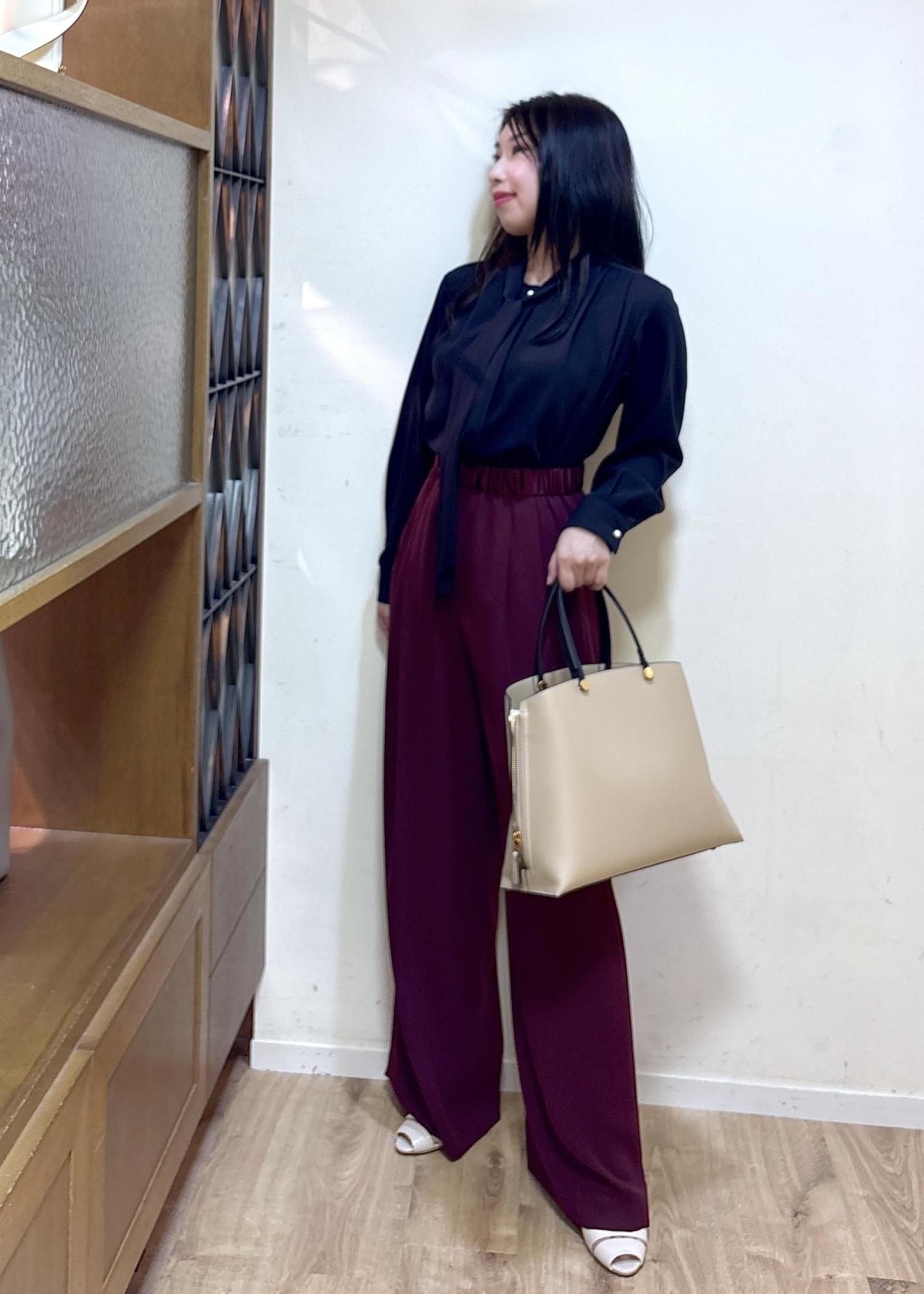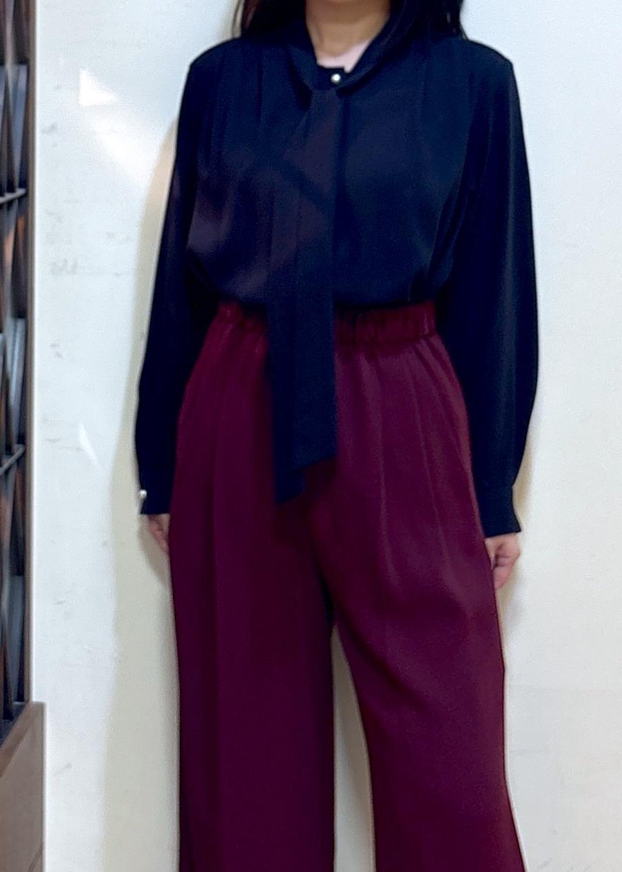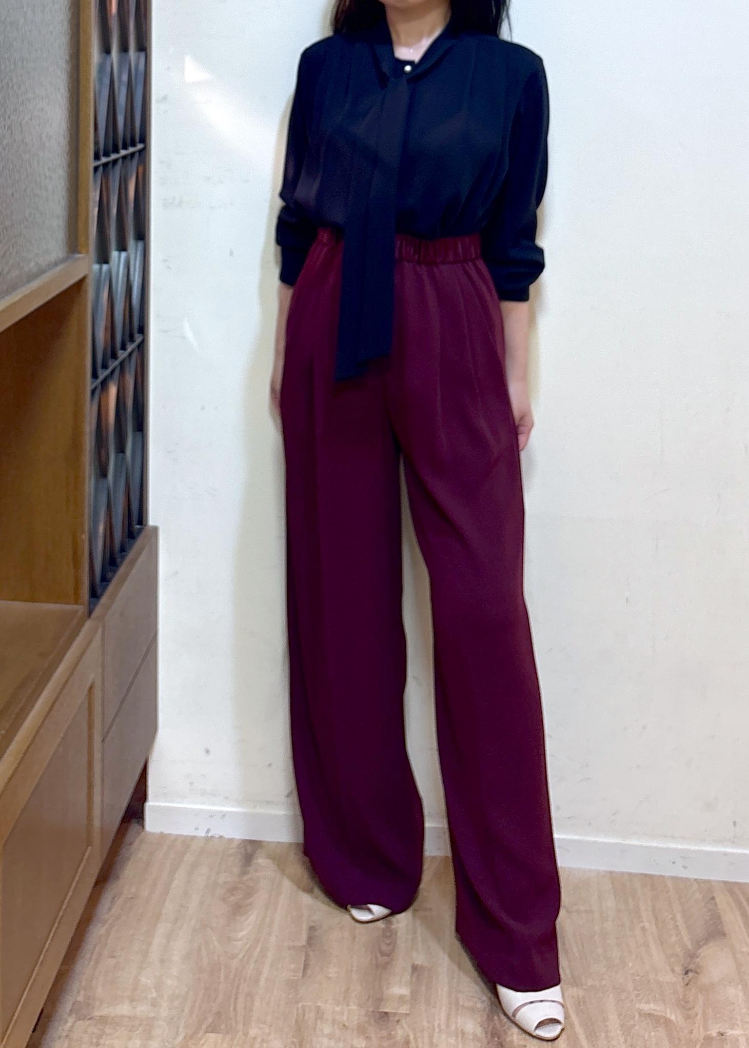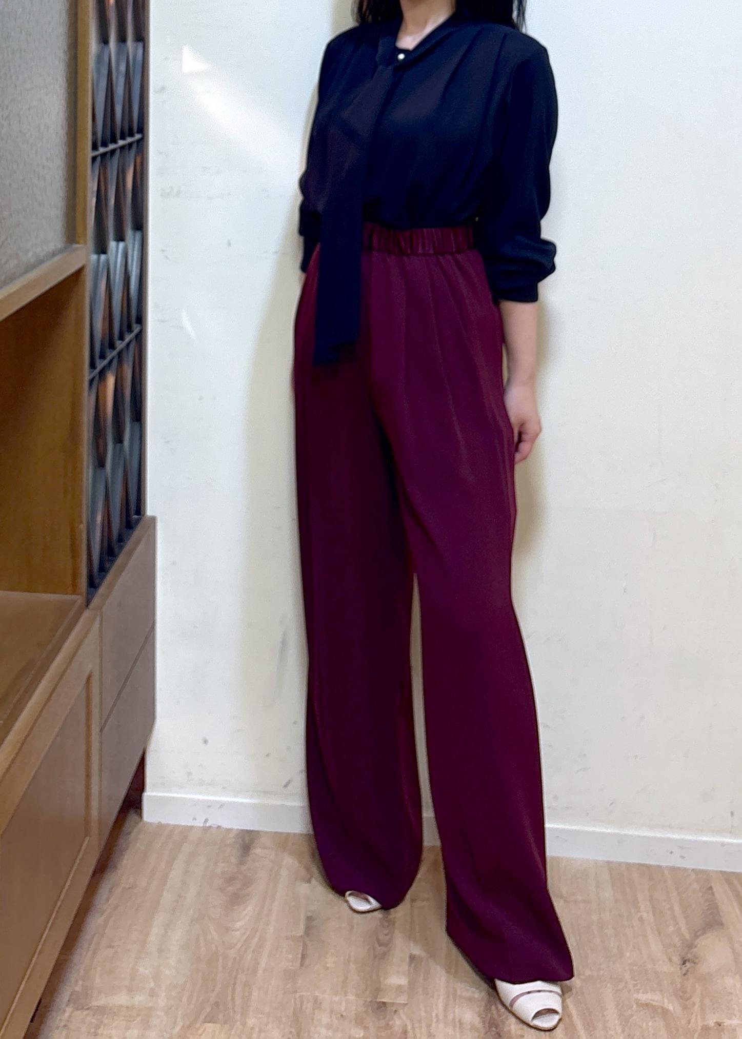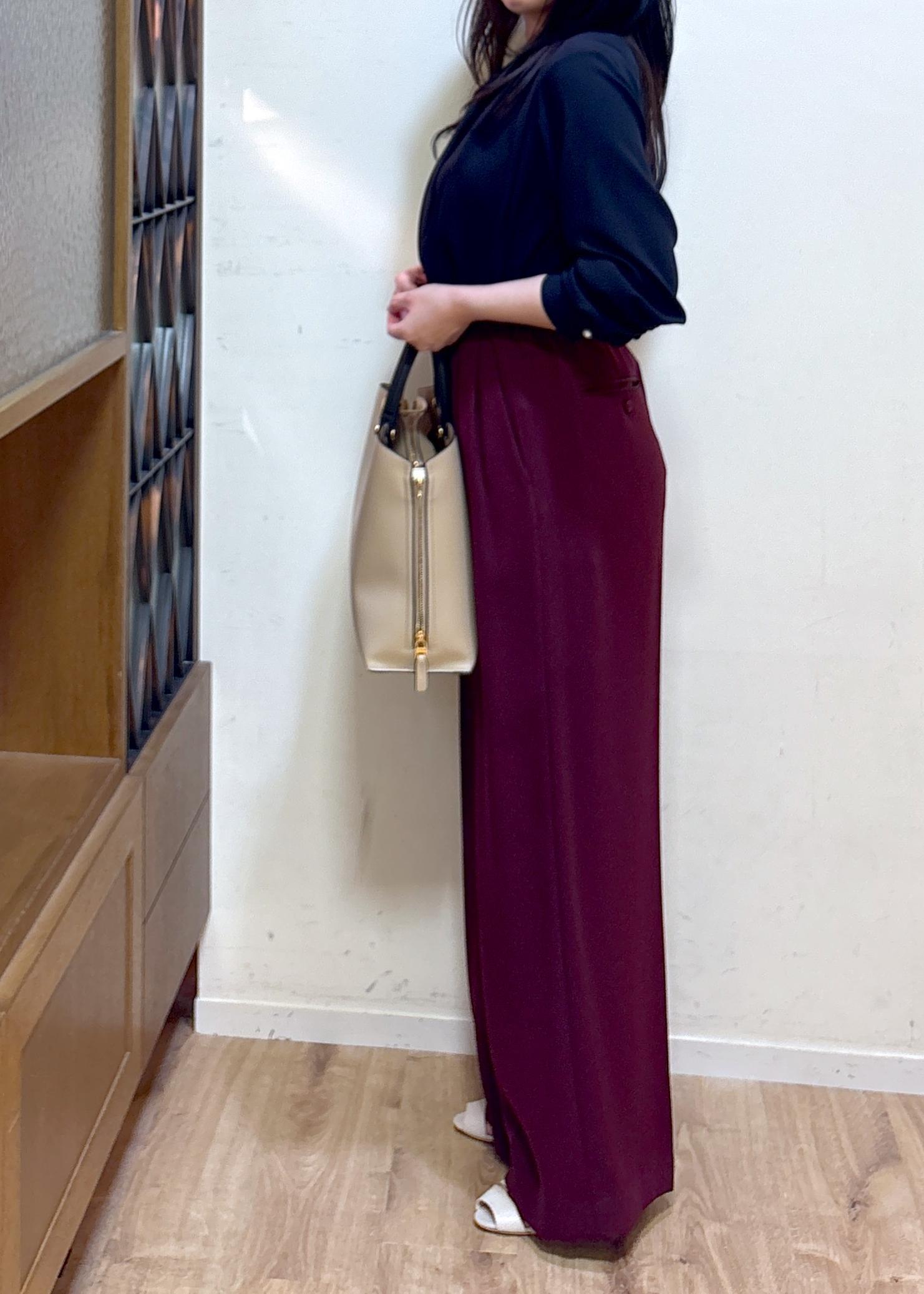 柔らかくとろみのあるワイドパンツですので、広がりすぎないスッキリとしたシルエットがキレイなパンツです。