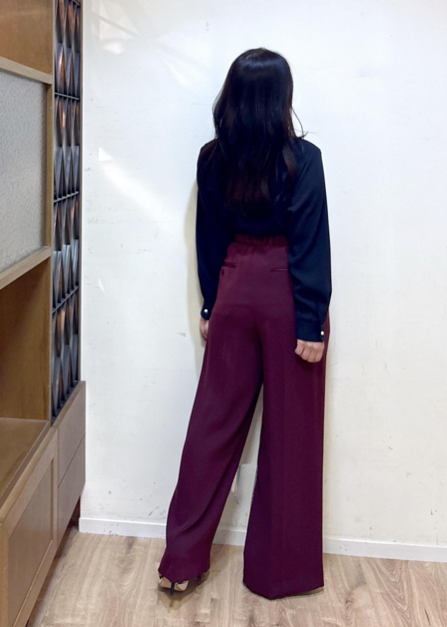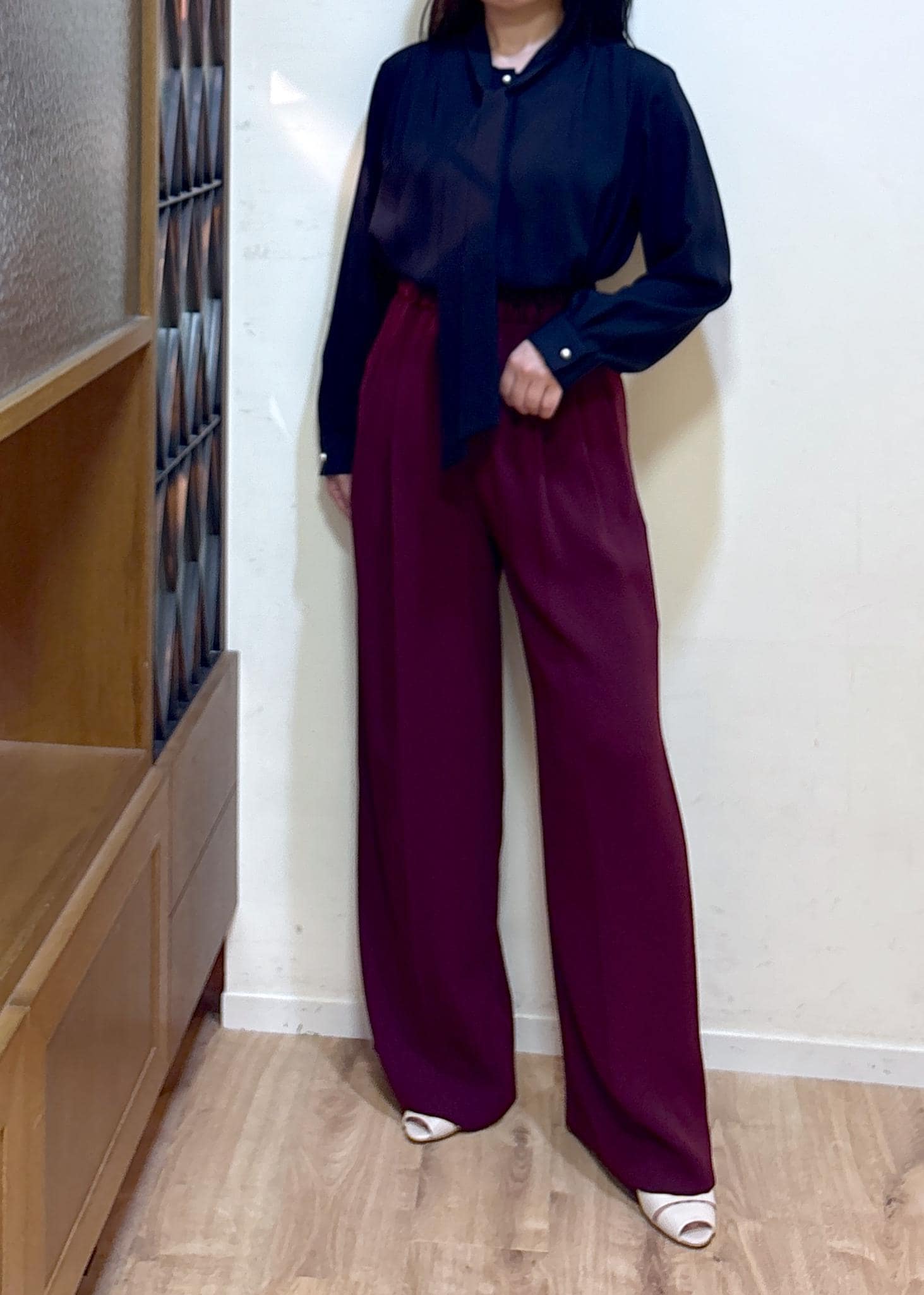 ROPÉ【洗える・カセット服】ライトトリアセイージーワイドパンツ/お仕事・通勤・セットアップ対応ワイン / 36¥25,300レビュー身長152cm 36サイズ着用