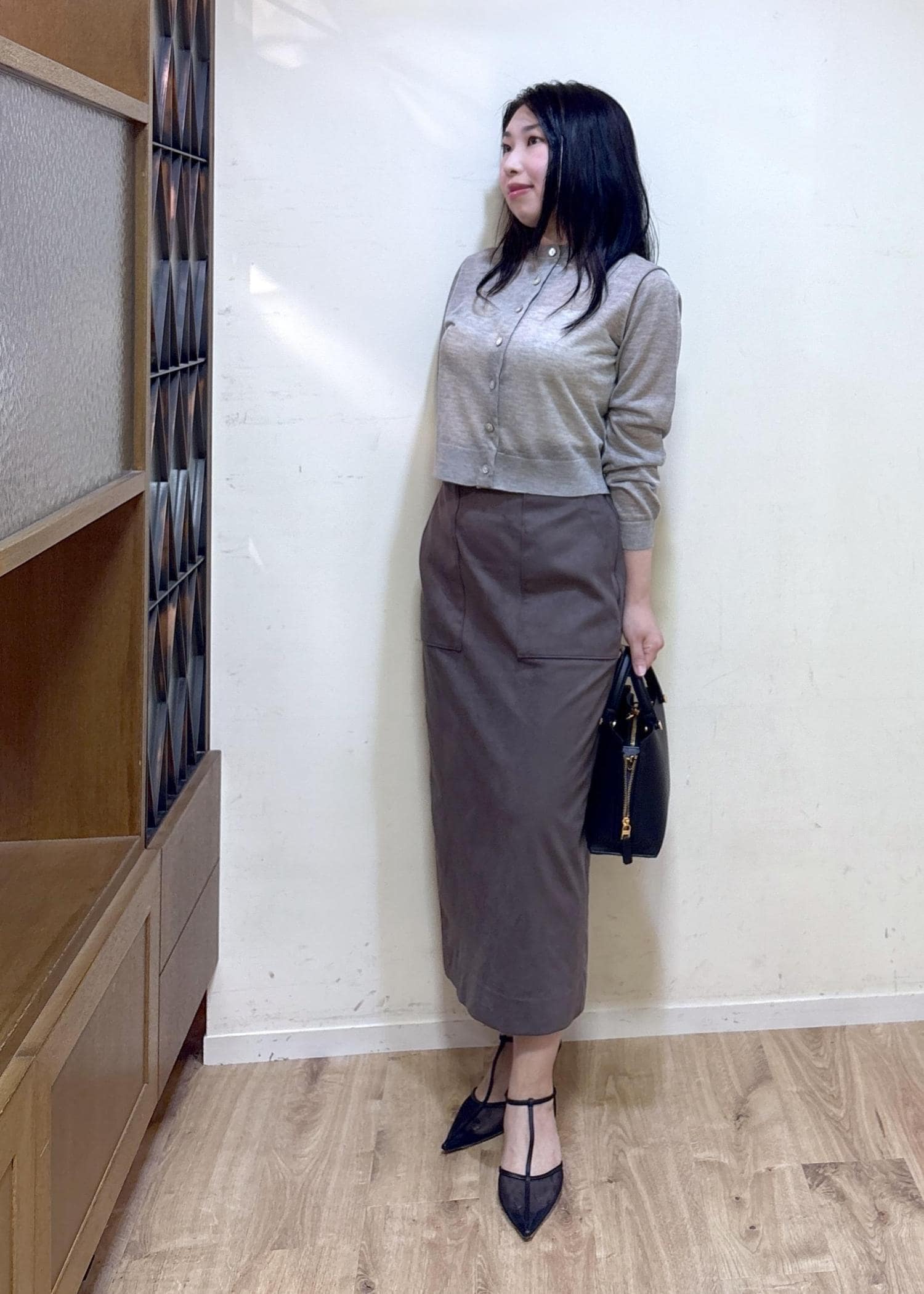 ROPÉ[美人スカート]スエードポケット付きタイトスカート/イージーケアダークブラウン / 36¥25,300レビュー身長152cm 36サイズ着用