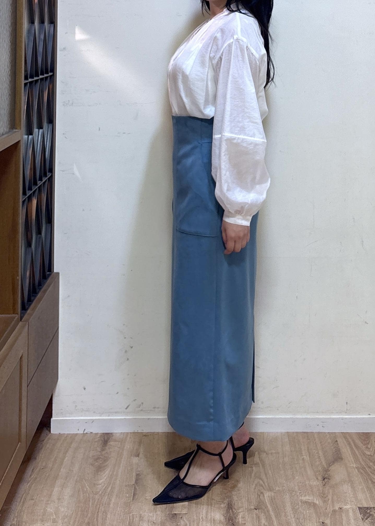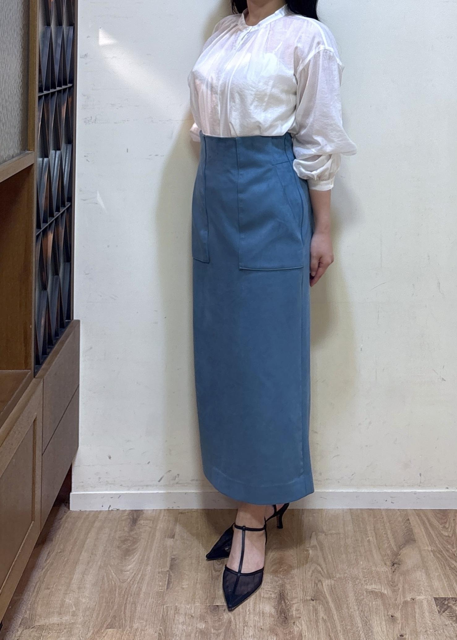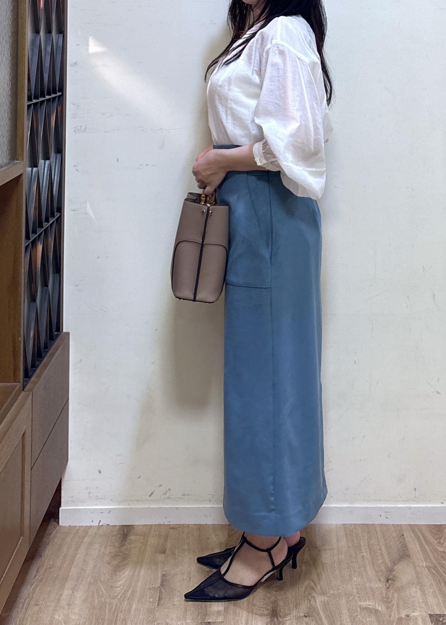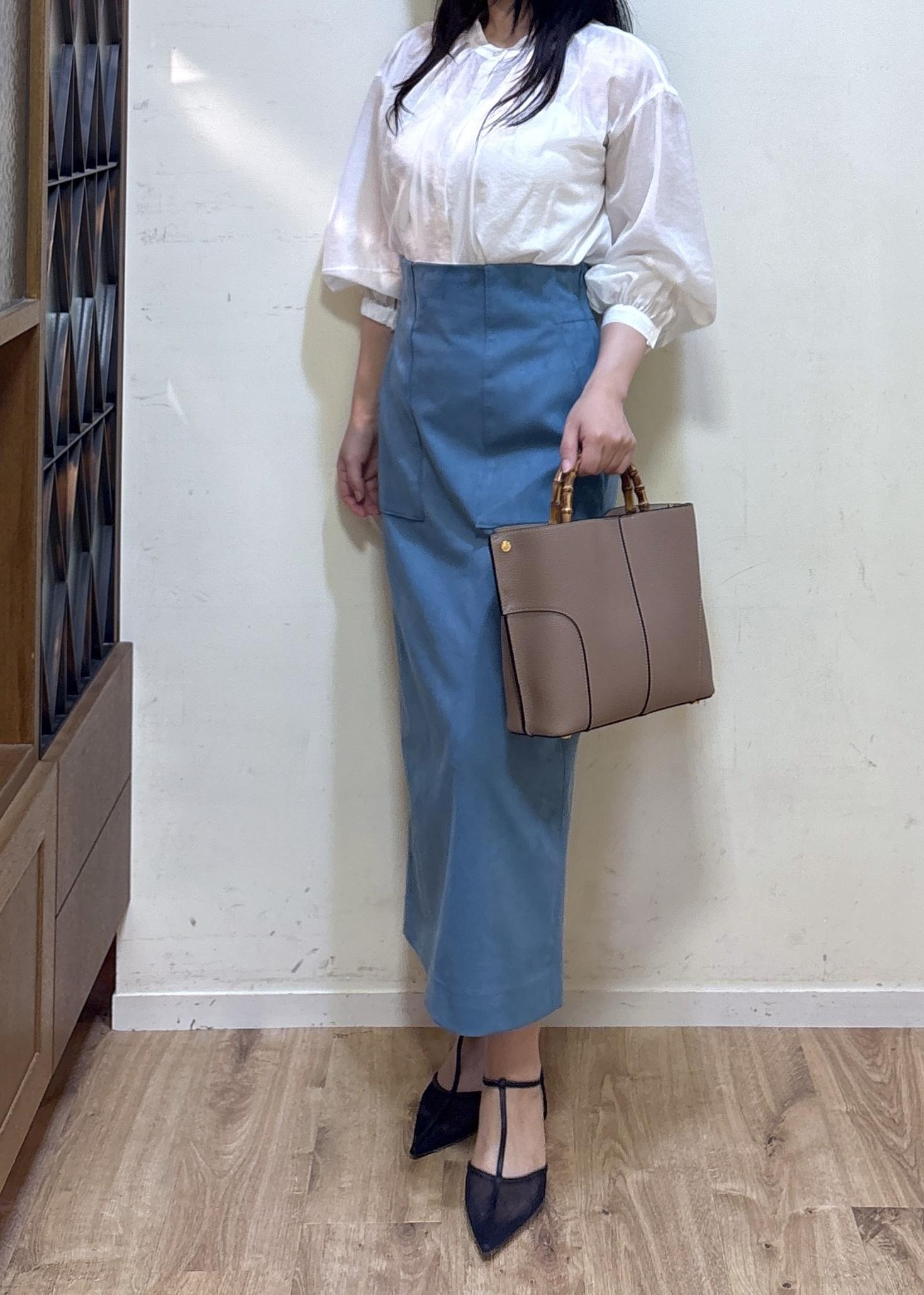 ROPÉ[美人スカート]スエードポケット付きタイトスカート/イージーケアブルー / 36¥25,300レビュー身長152cm 36サイズ着用