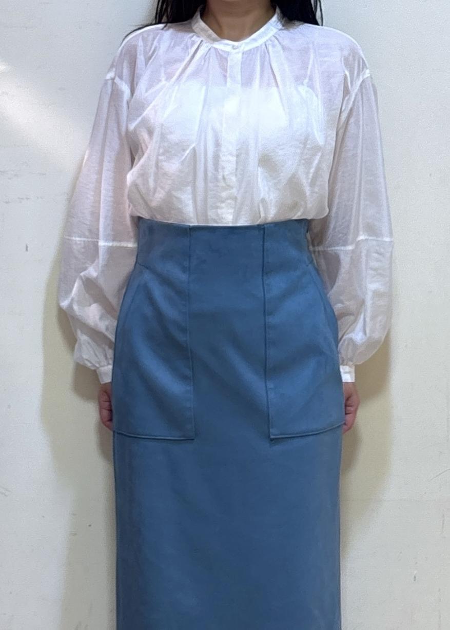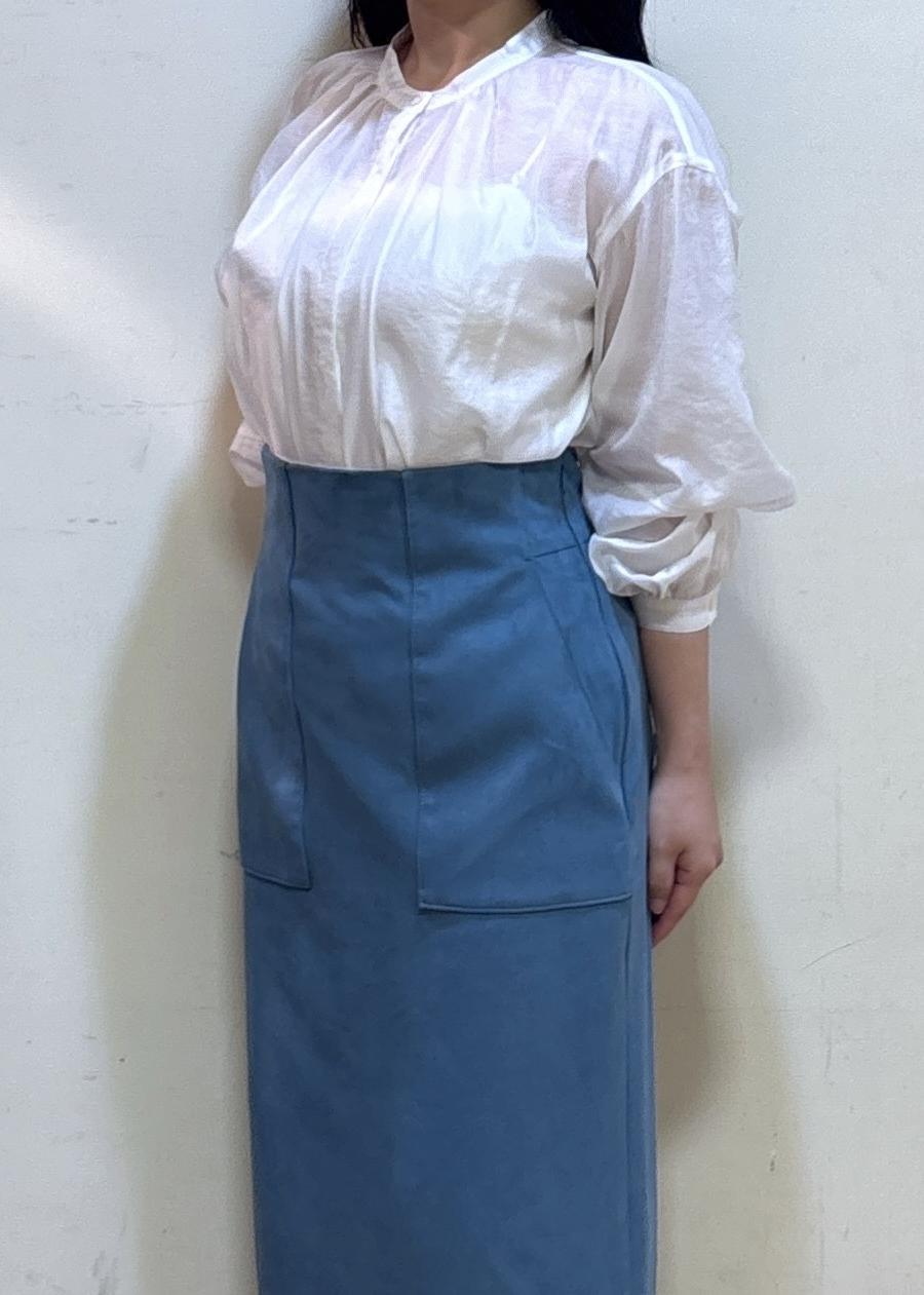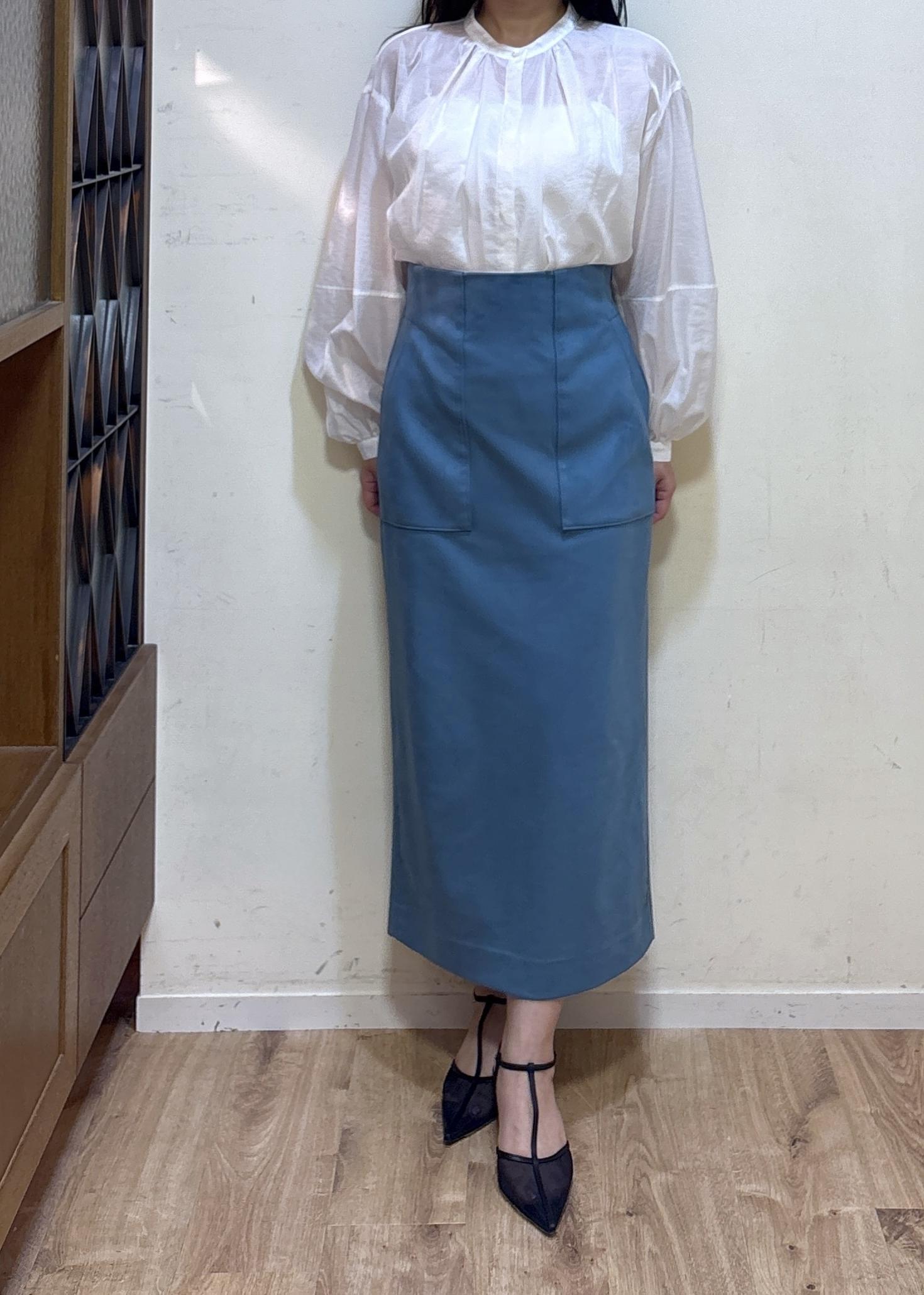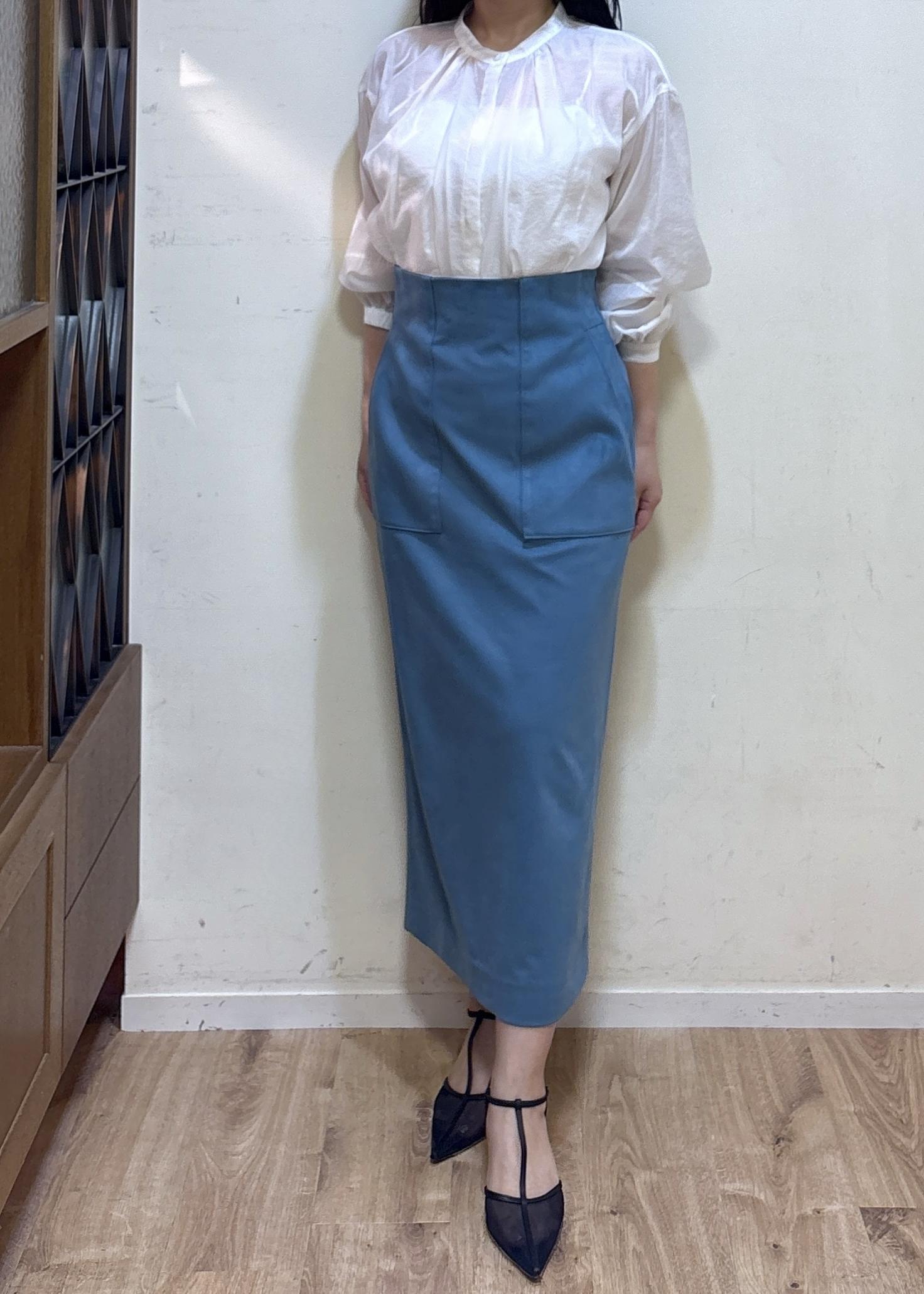 ROPÉ[美人スカート]スエードポケット付きタイトスカート/イージーケアブルー / 36¥25,300レビュー身長152cm 36サイズ着用