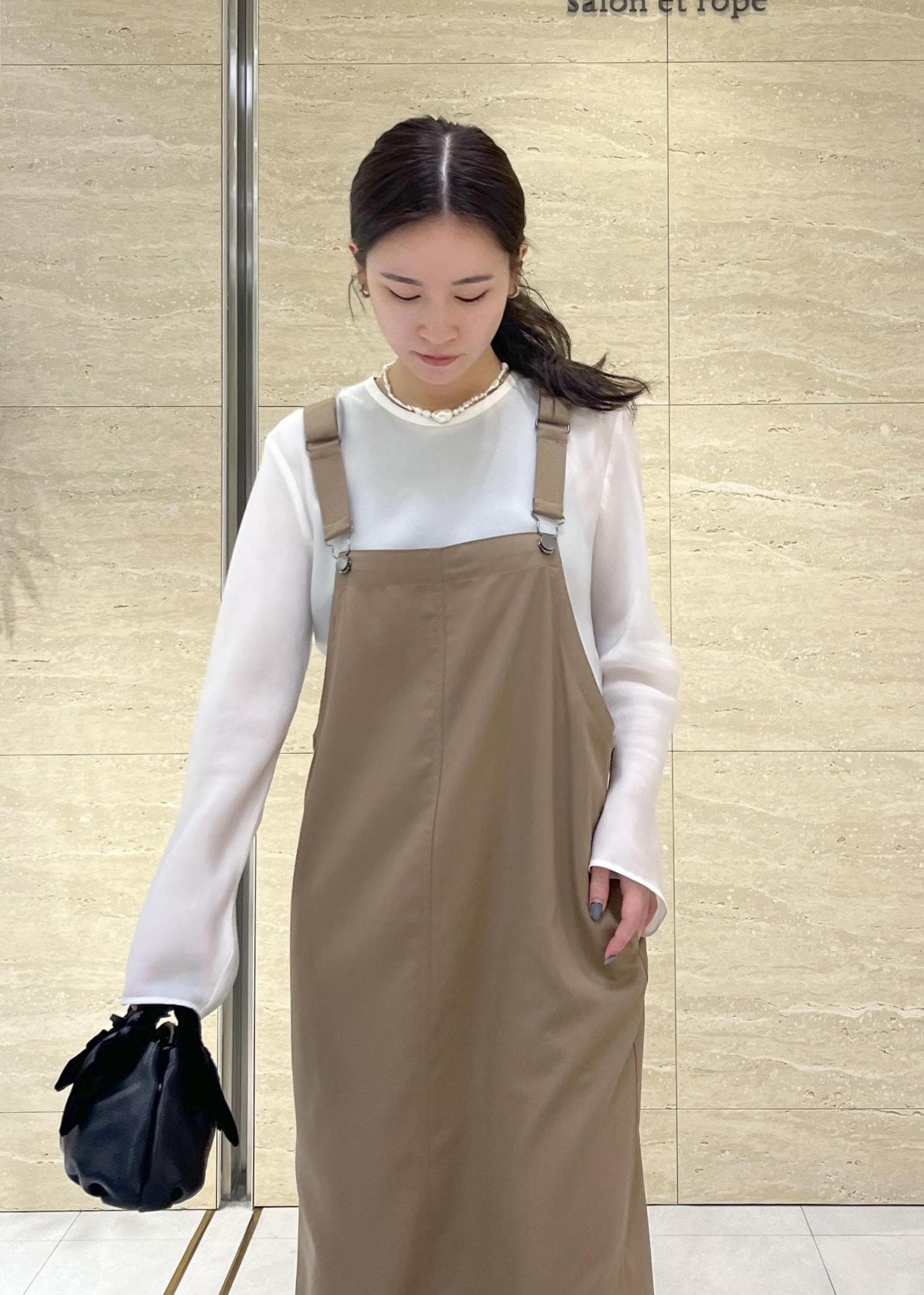 肩紐で着丈を調節できるので、身体問わず着用していただけます。