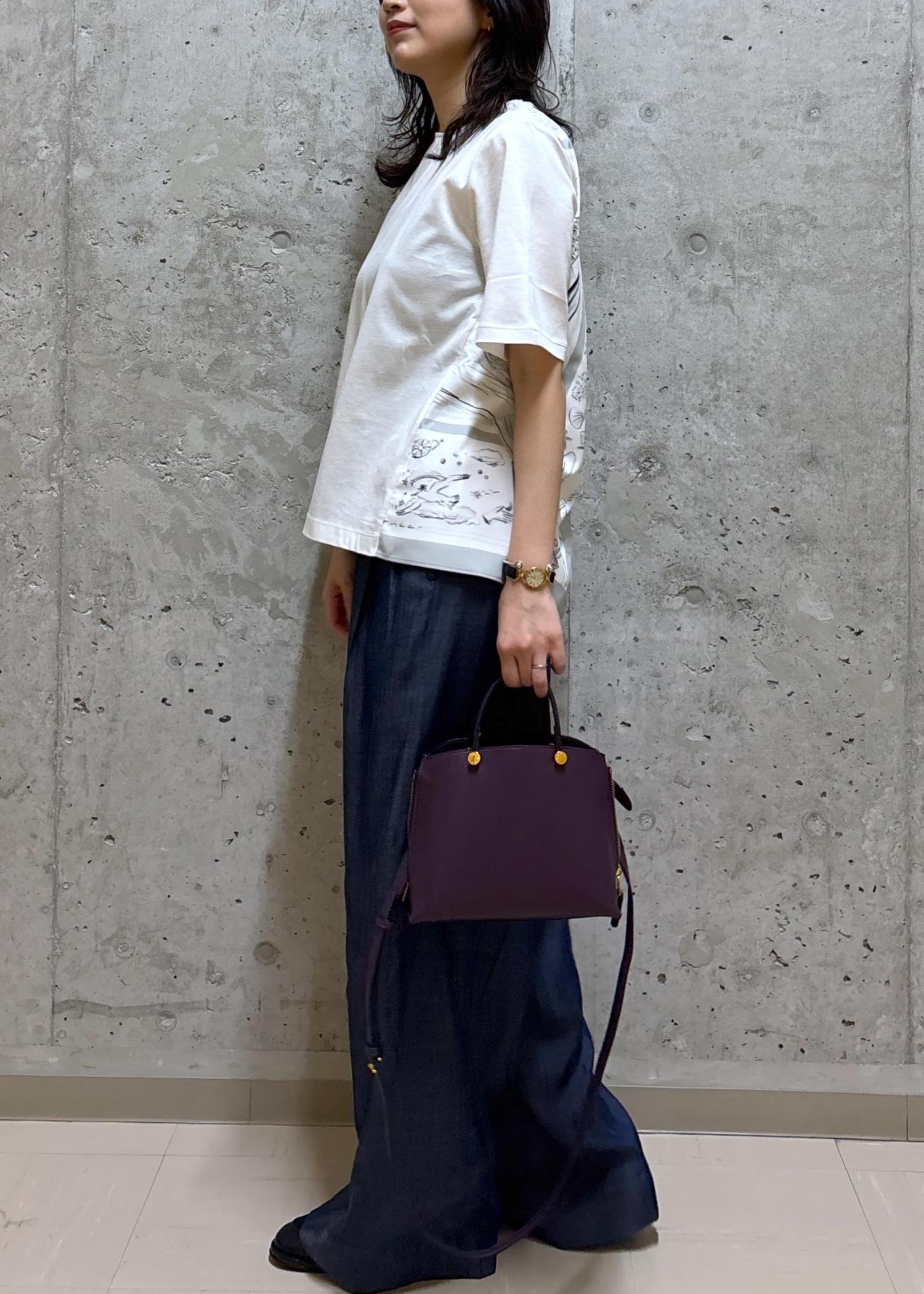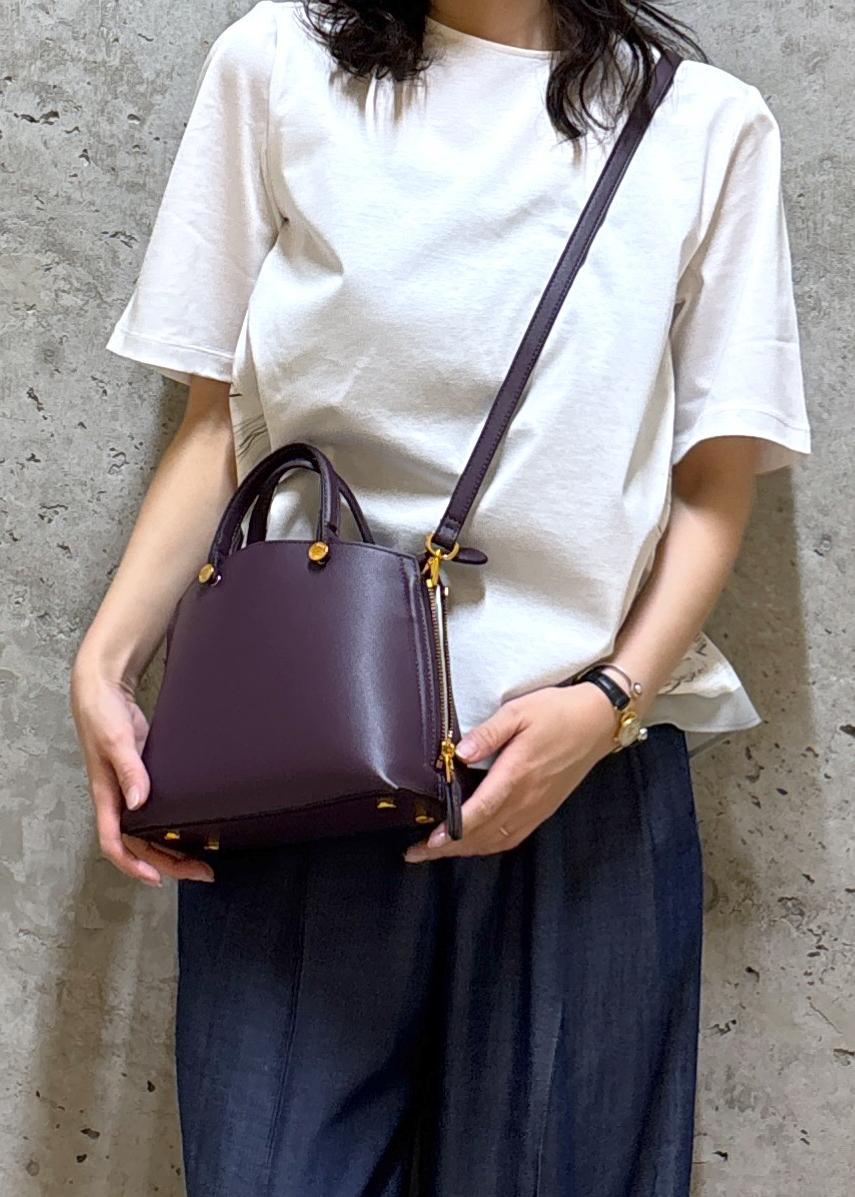財布(長財布はサイズによります)、携帯、ハンカチ、リップなど小さめ化粧品、エコバッグ。必要最低限の物が入ります。荷物が少なめな方の普段使い、ちょっとそこまでの外出、旅行の移動用…一つは持っておきたいサイズ感です!