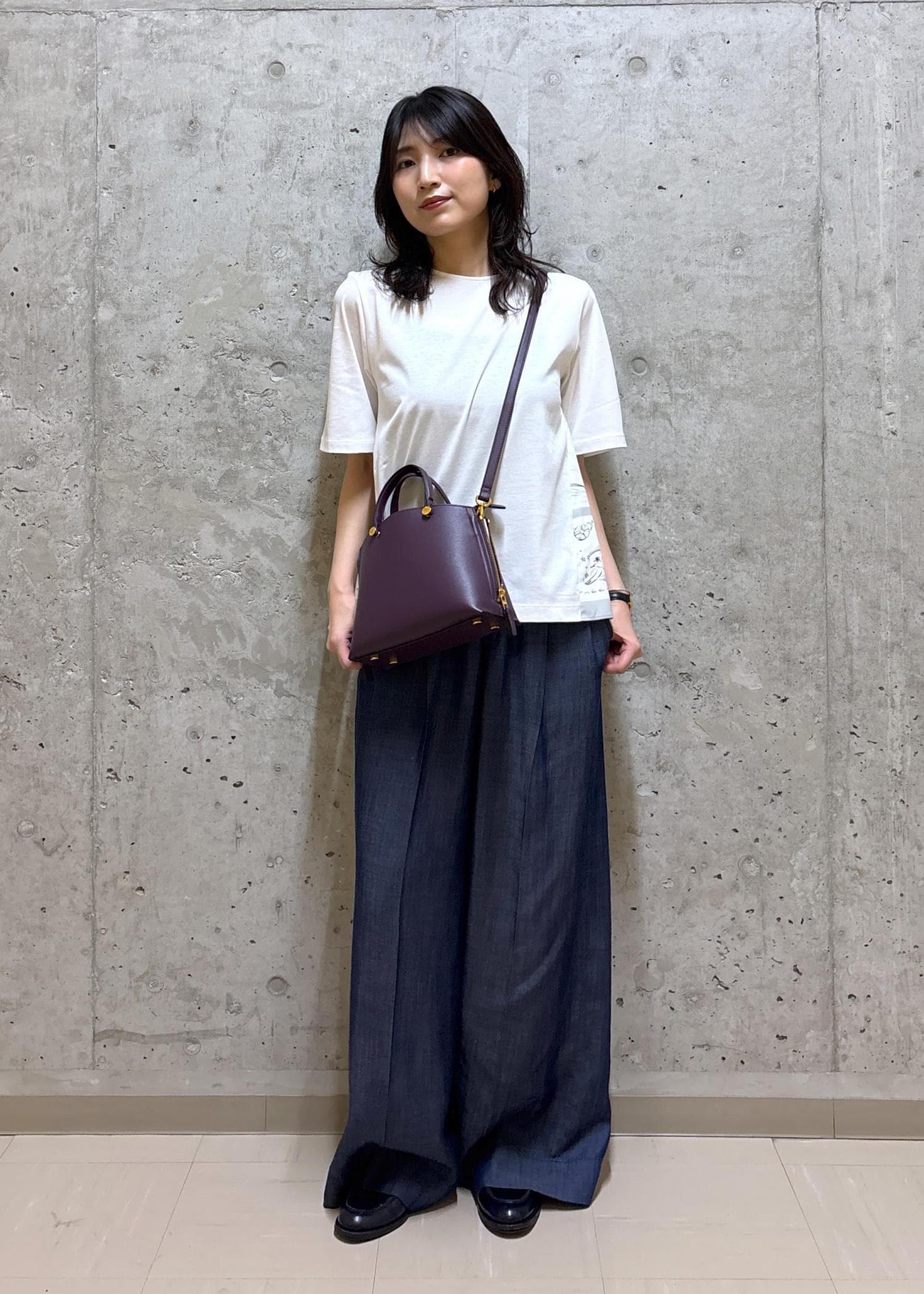 パンツ丈はフラットシューズを履いて床につかないくらいのやや長め丈。
