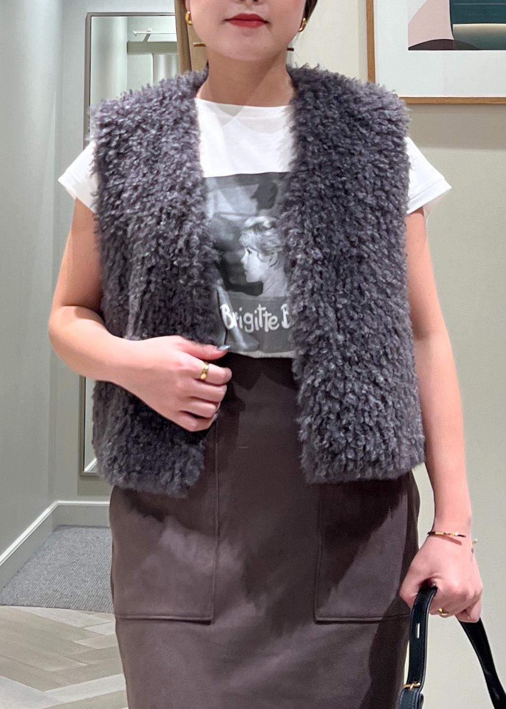 ROPÉフェイクファー ジレ ベストグレー / F¥38,500レビューショート丈というのが新鮮で