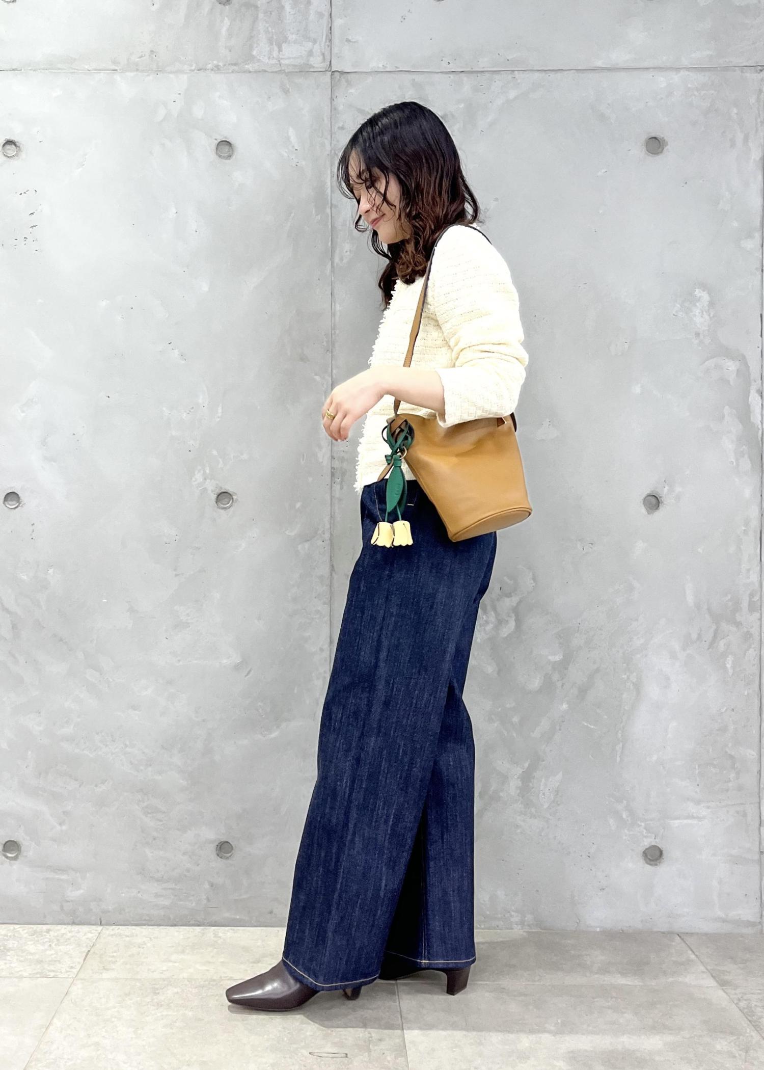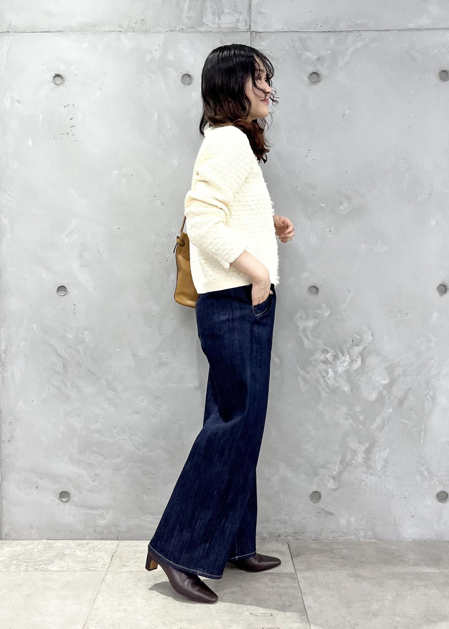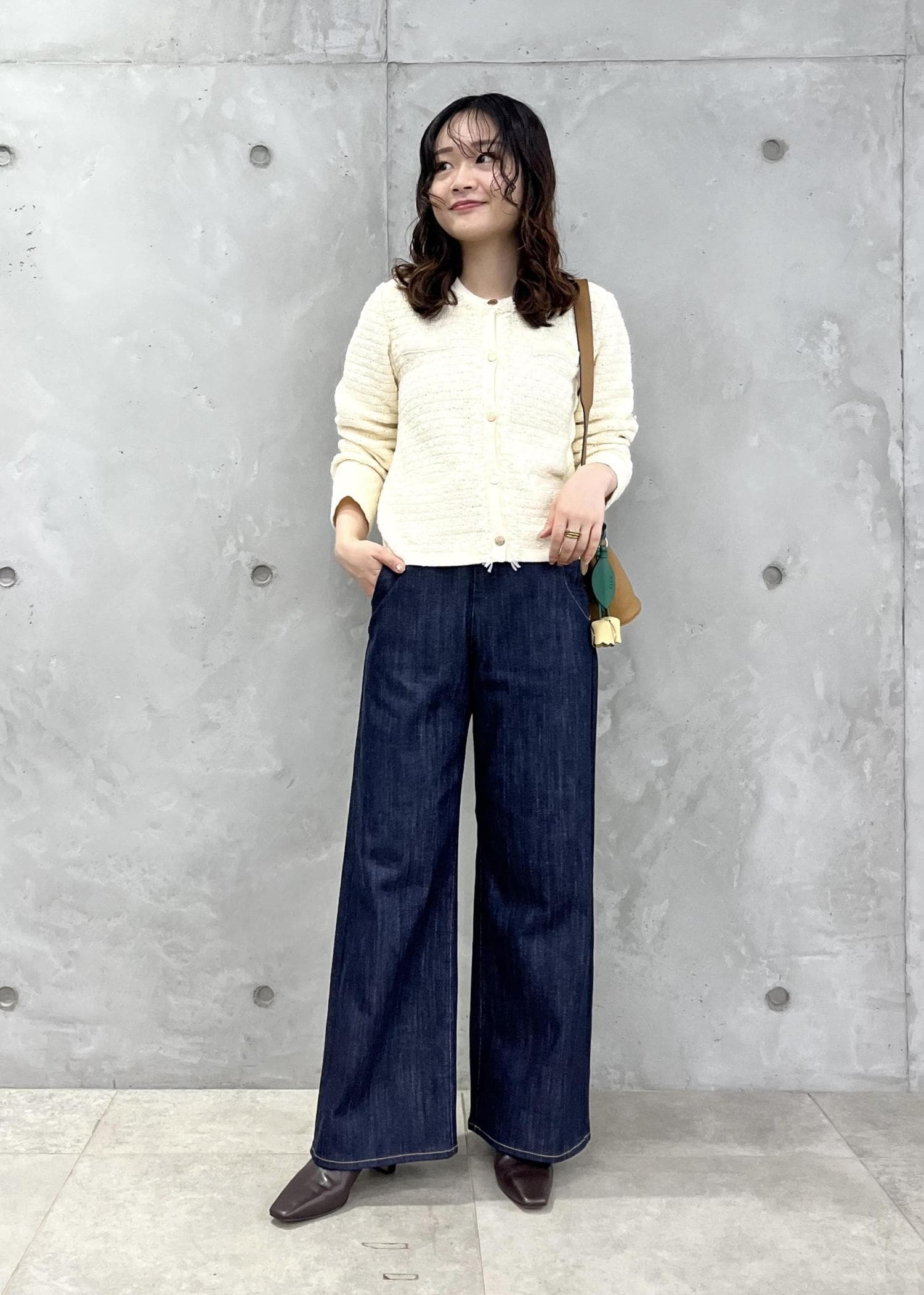 脚のラインを拾わない、太すぎないワイドシルエットで、ストレッチも効いており履きやすいです◎ -