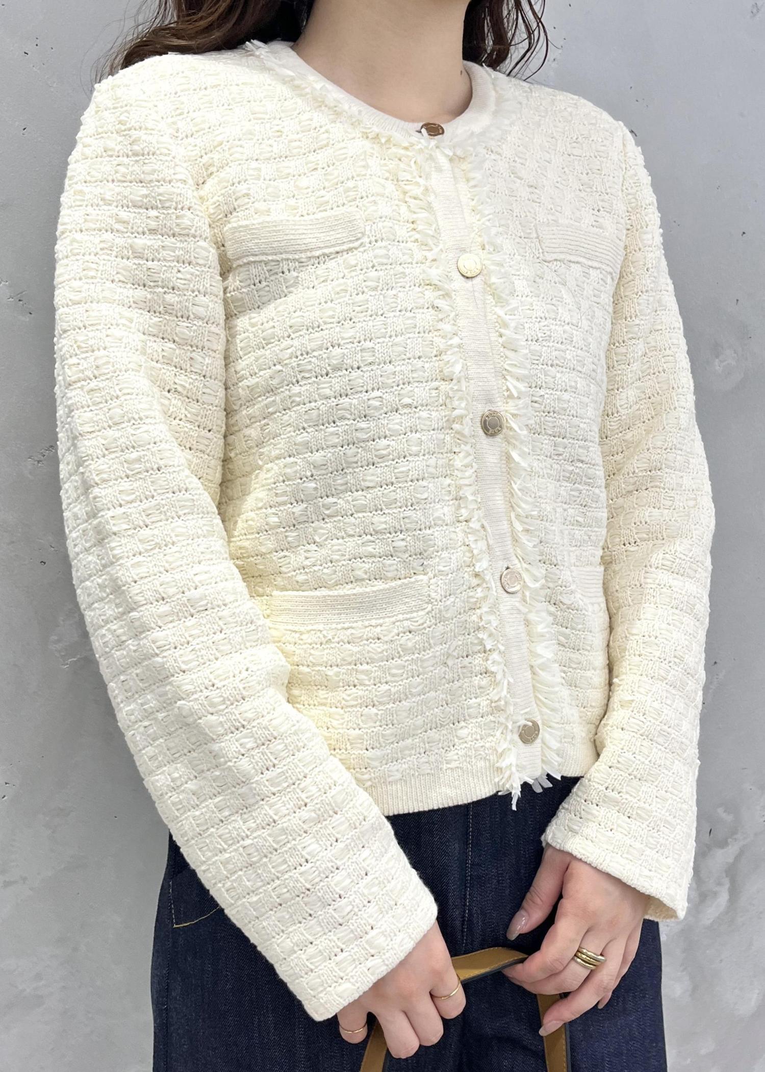 ROPÉニットフリンジジャケットキナリ / 38¥29,260レビューサンプルの38サイズを着用しています。