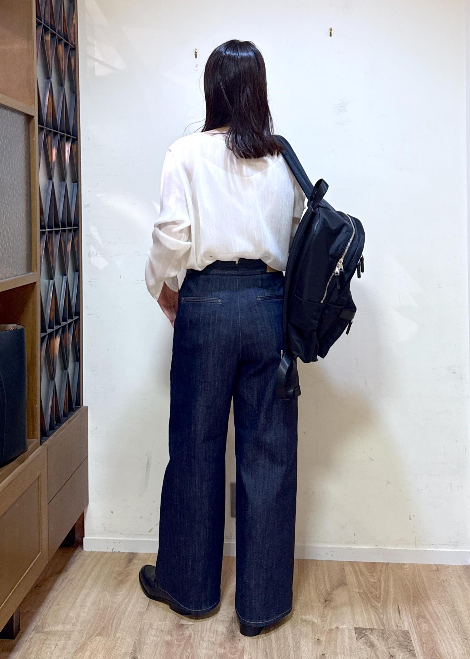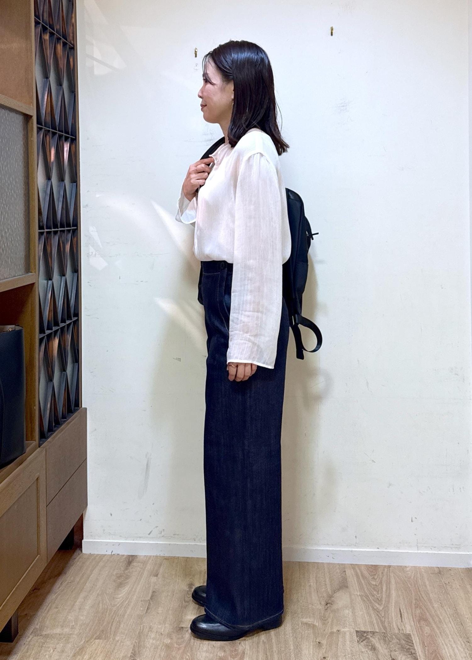 ややストレッチもありデニムでも柔らかいので履き心地も良く美脚見えするパンツとなっております。