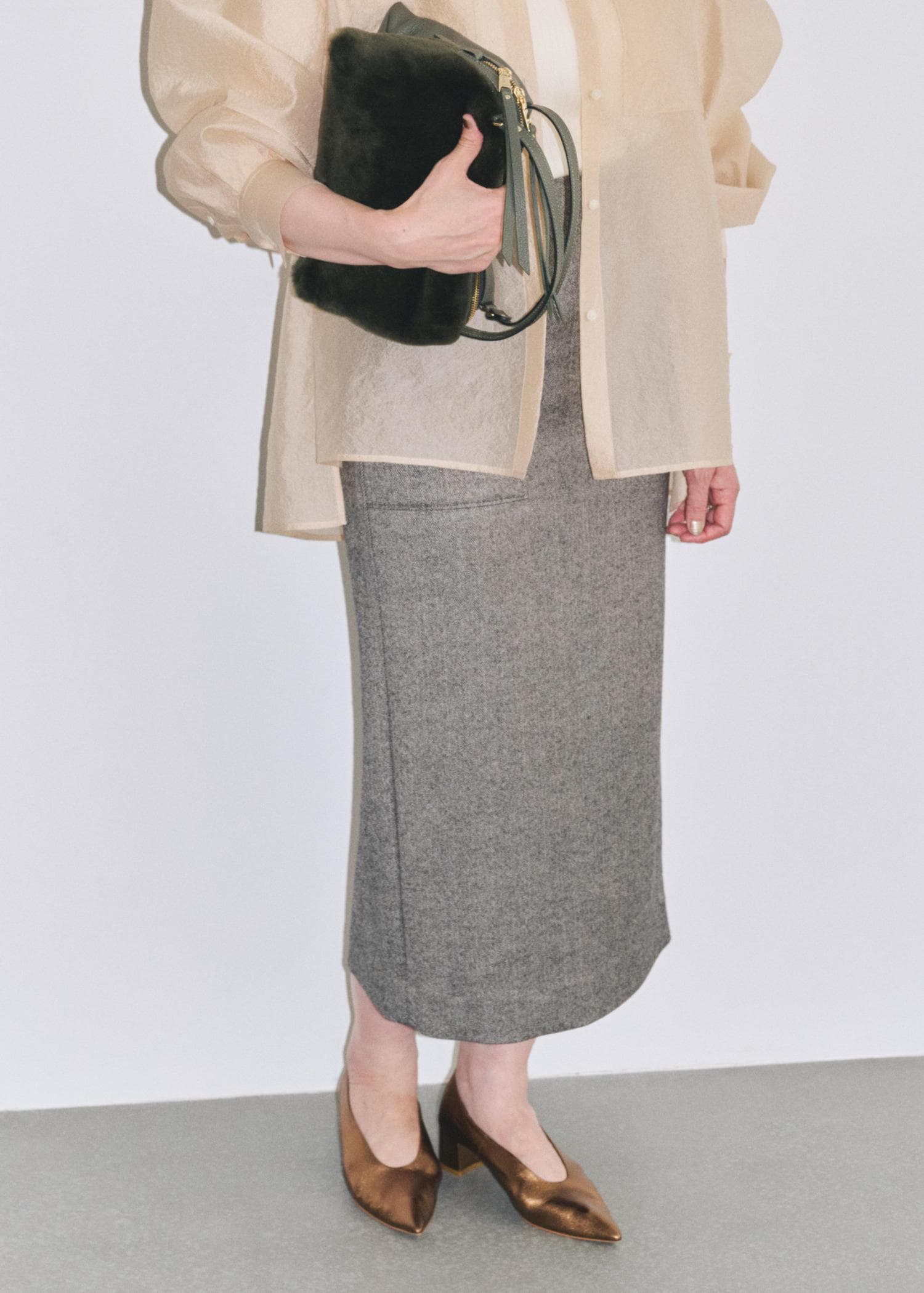 後ろ中心側にゴムが入っており、ヒップラインが自然とカバーされるので、普段タイトスカートが苦手な方にもおすすめです。 -