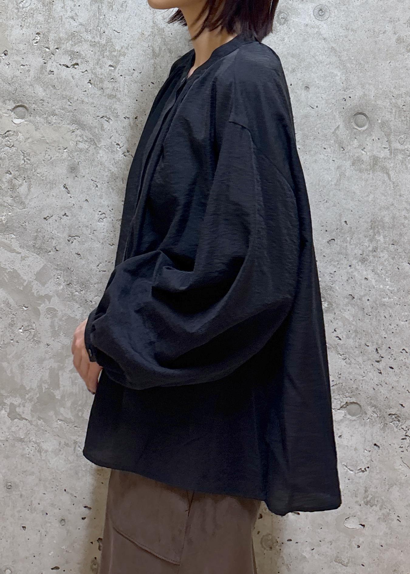 スタンドカラーで、袖にボリューム感があるので、1枚で決まるデザインです。
