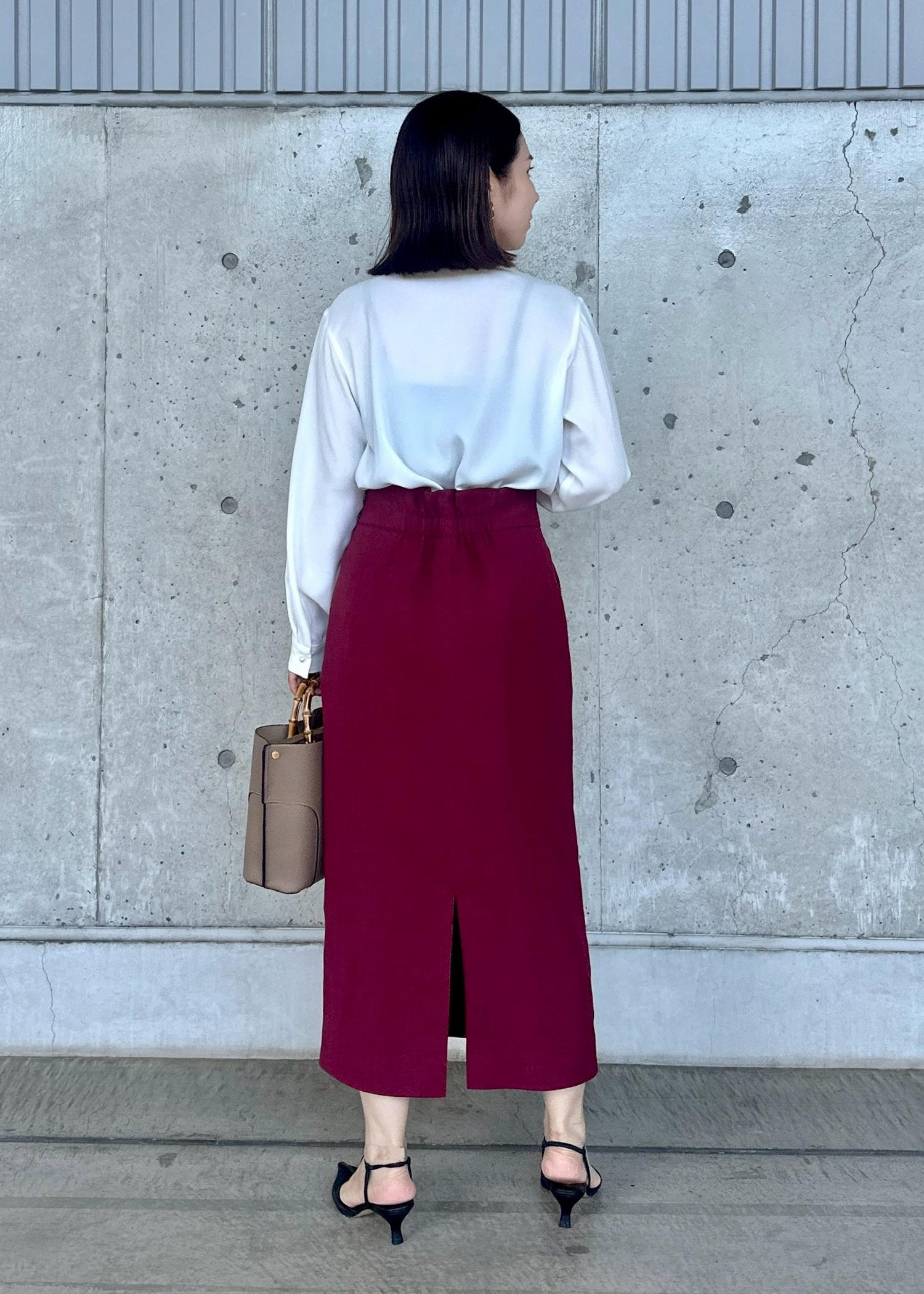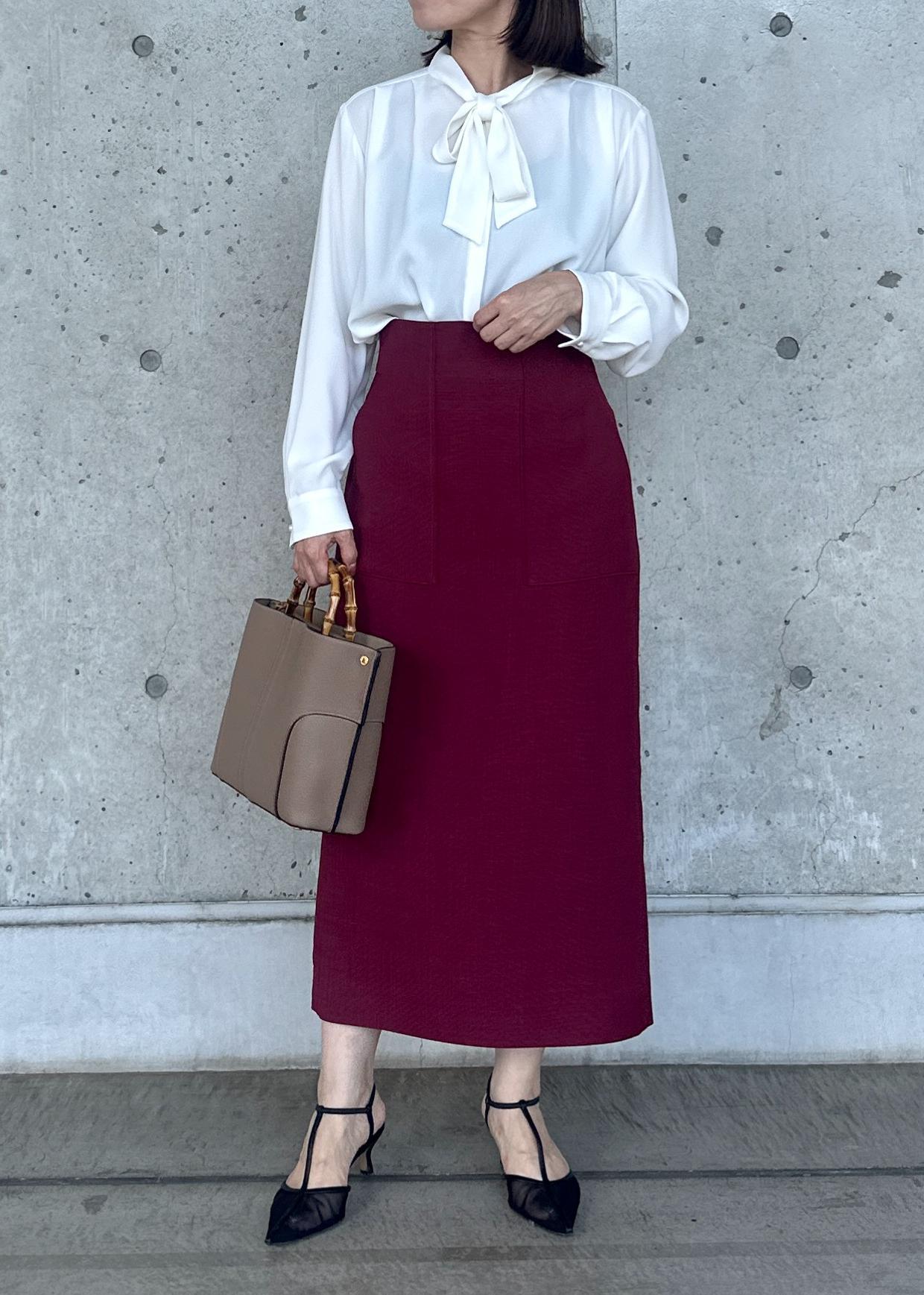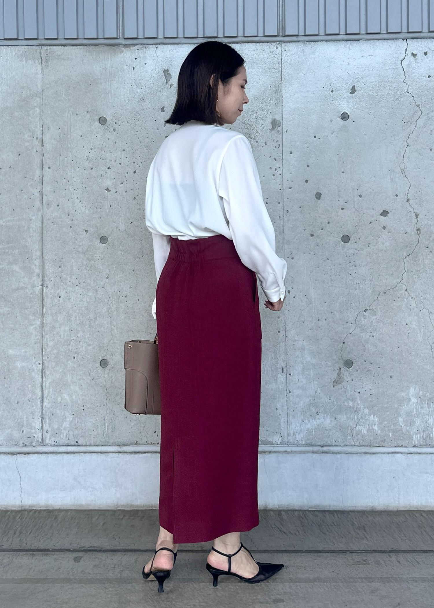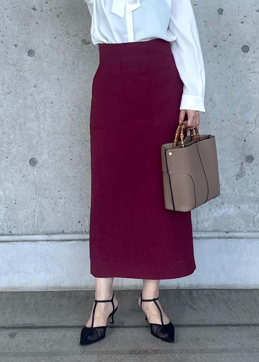 ROPÉリネンライク ポケット付きタイトスカート/イージーケアワイン / 38¥20,900レビュー身長156cm、38サイズ着用。