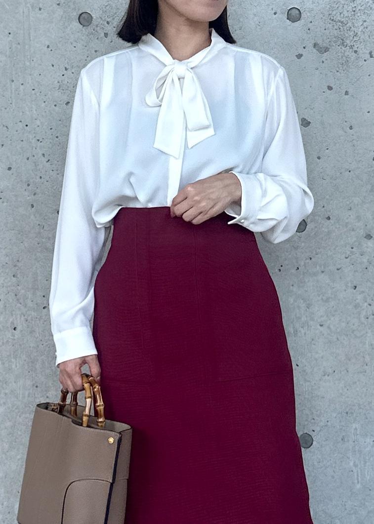 ROPÉボウタイブラウス/イージーケア・25AWホワイト / F¥22,000レビュー身長156cm、Fサイズ着用。