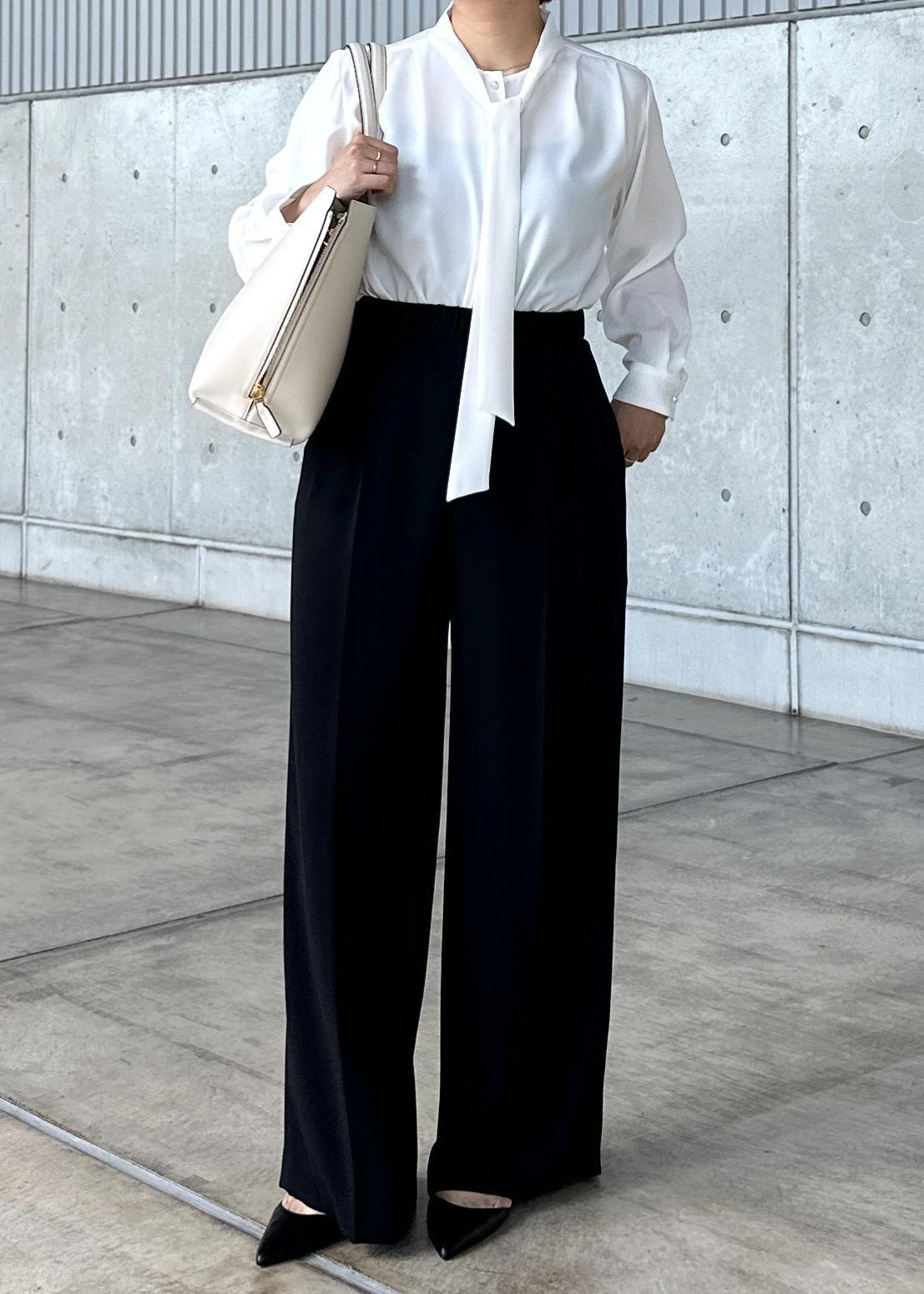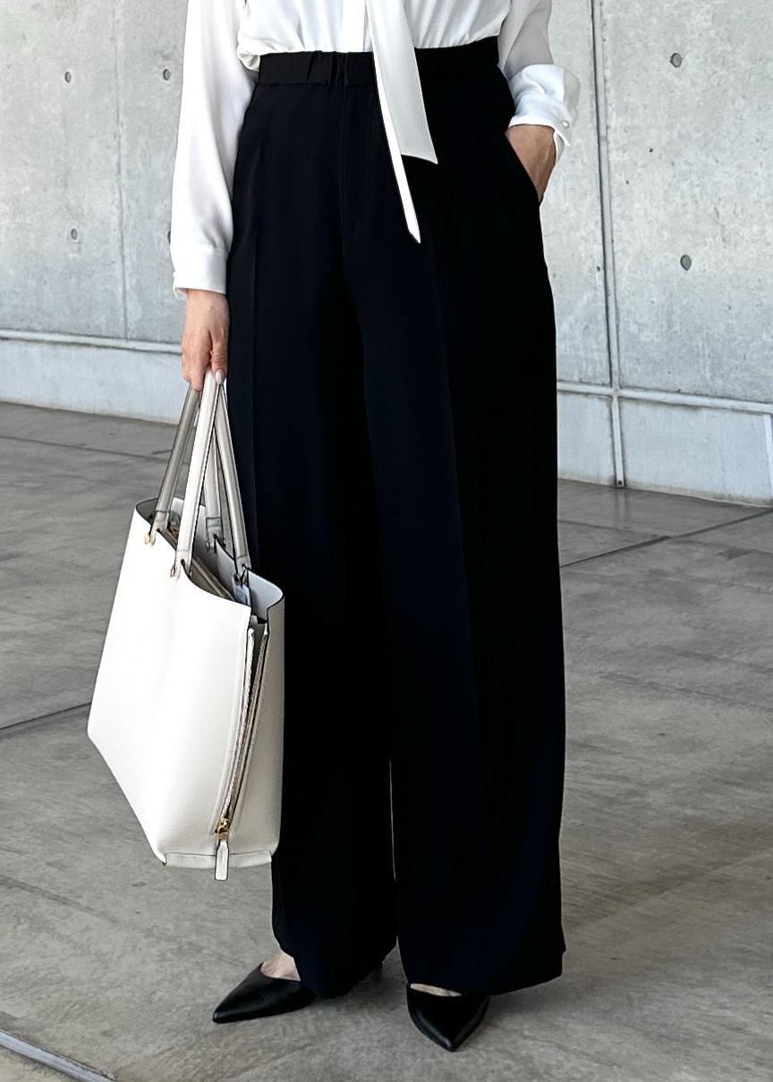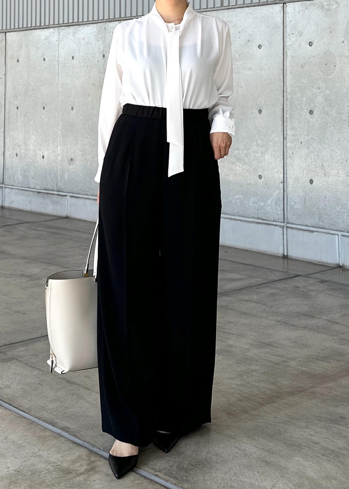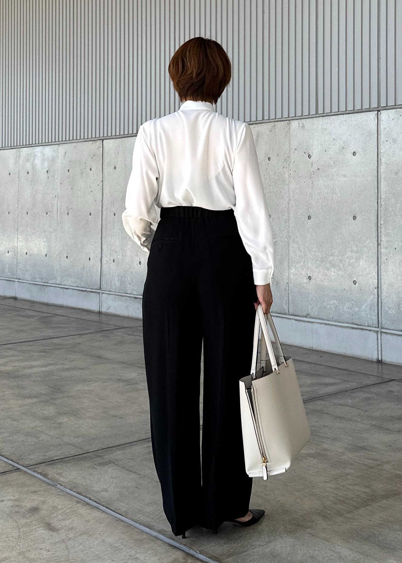 【洗える・カセット服・新色追加】バックサテンイージーワイドパンツ/お仕事・通勤・セットアップ対応