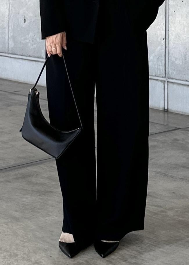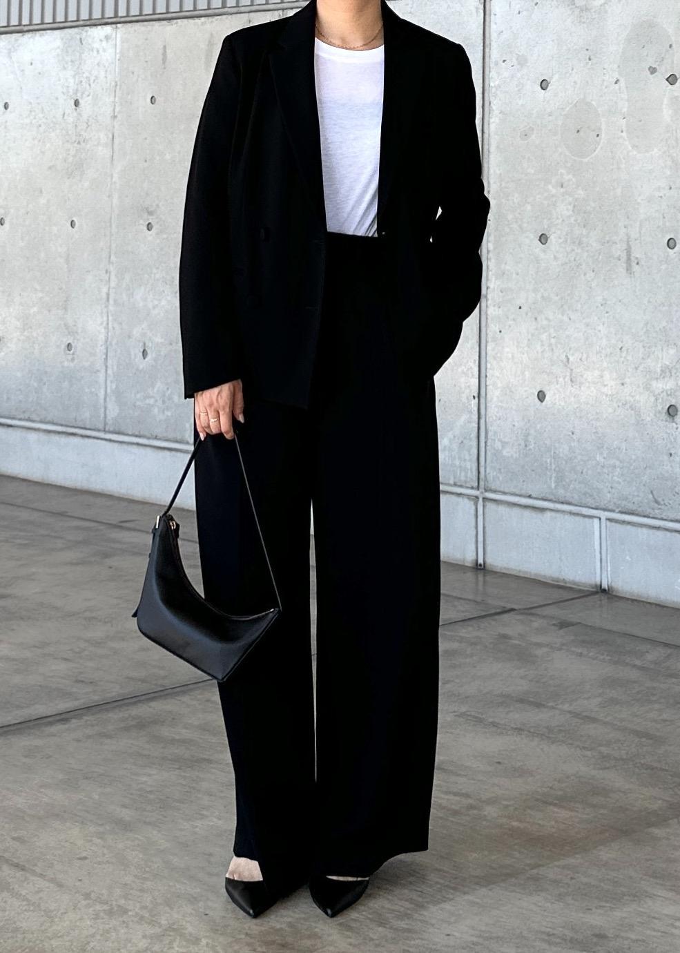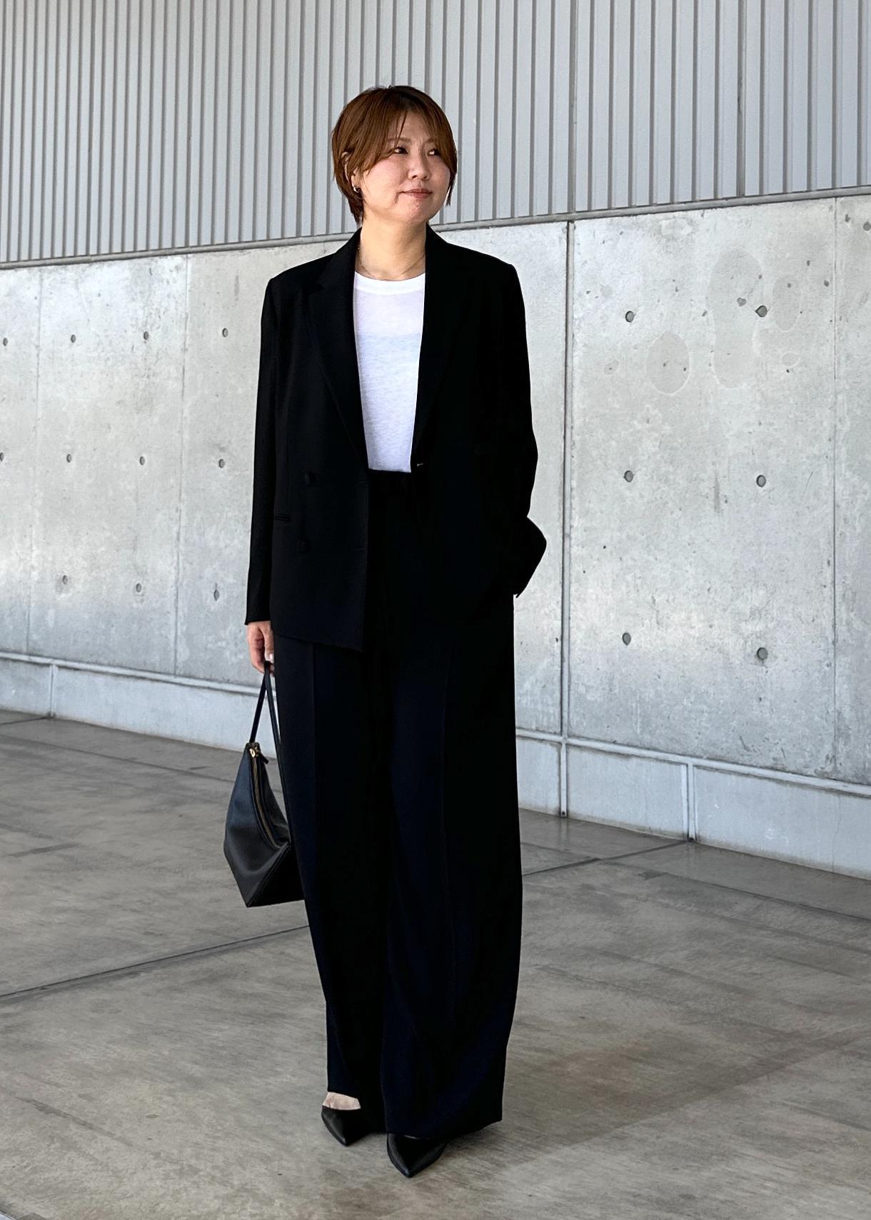 ROPÉ【洗える・カセット服・新色追加】バックサテンイージーワイドパンツ/お仕事・通勤・セットアップ対応ブラック / 38¥27,500レビュー162センチ 普段ボトム38、40サイズ