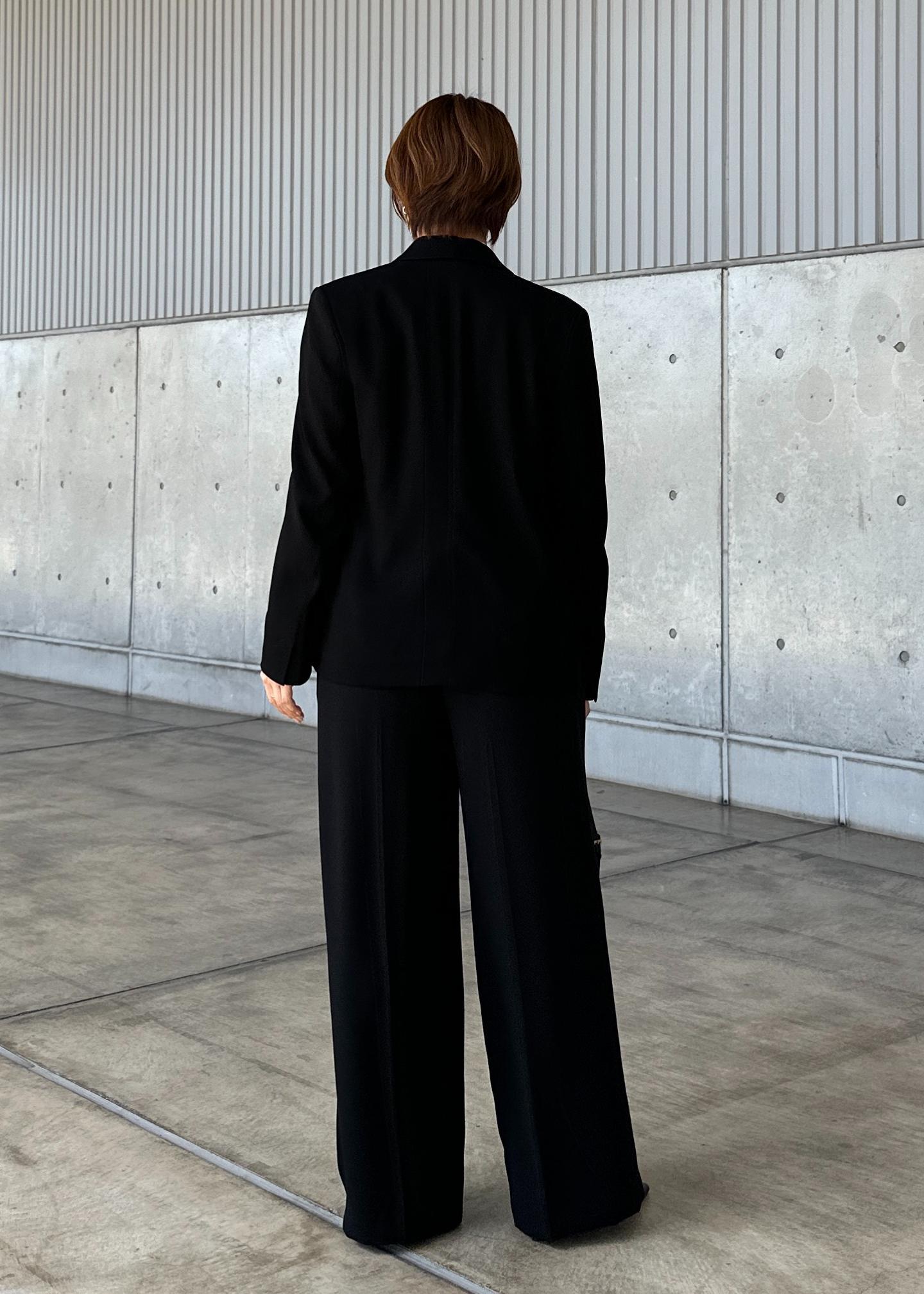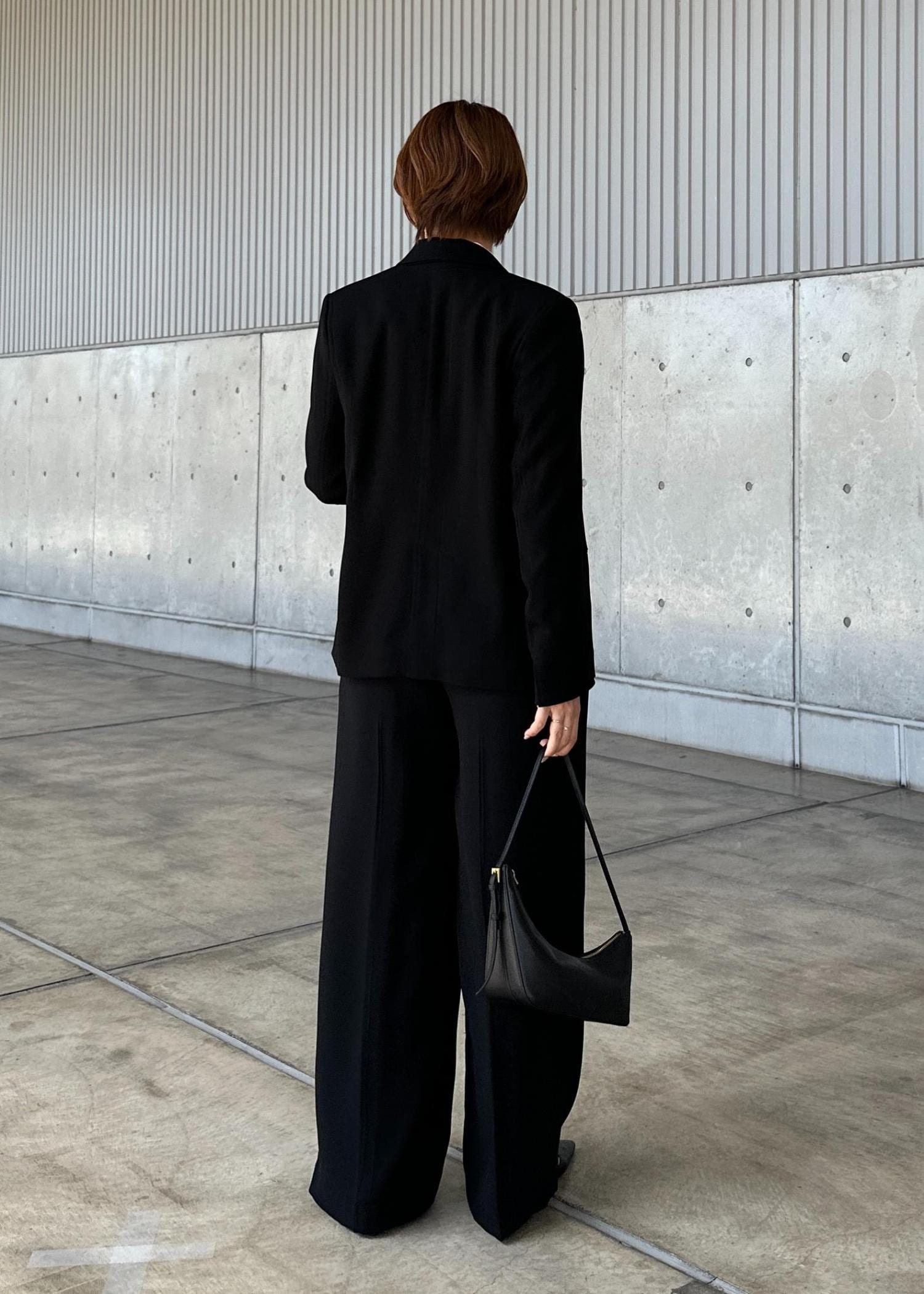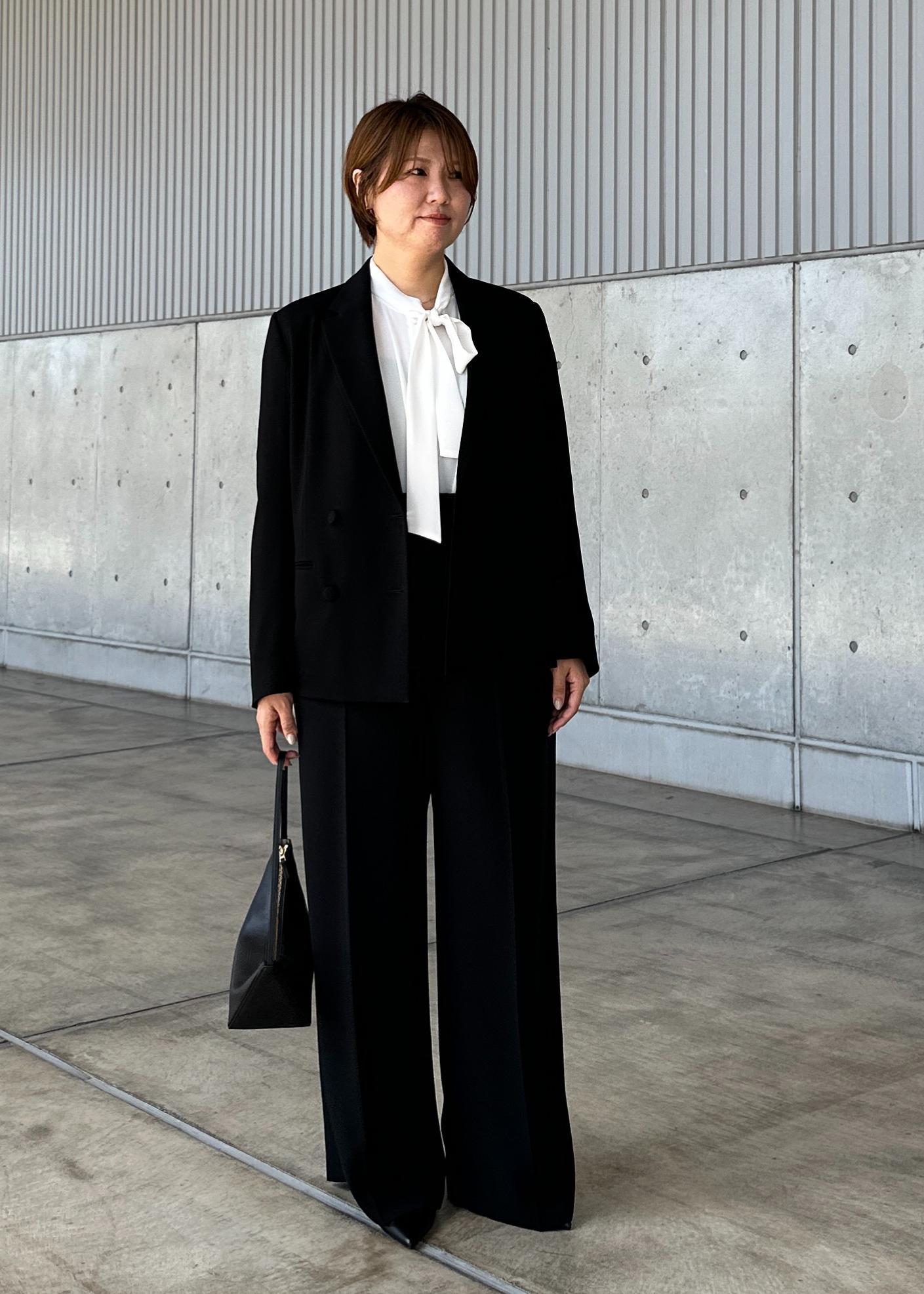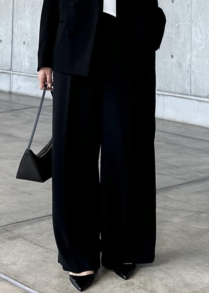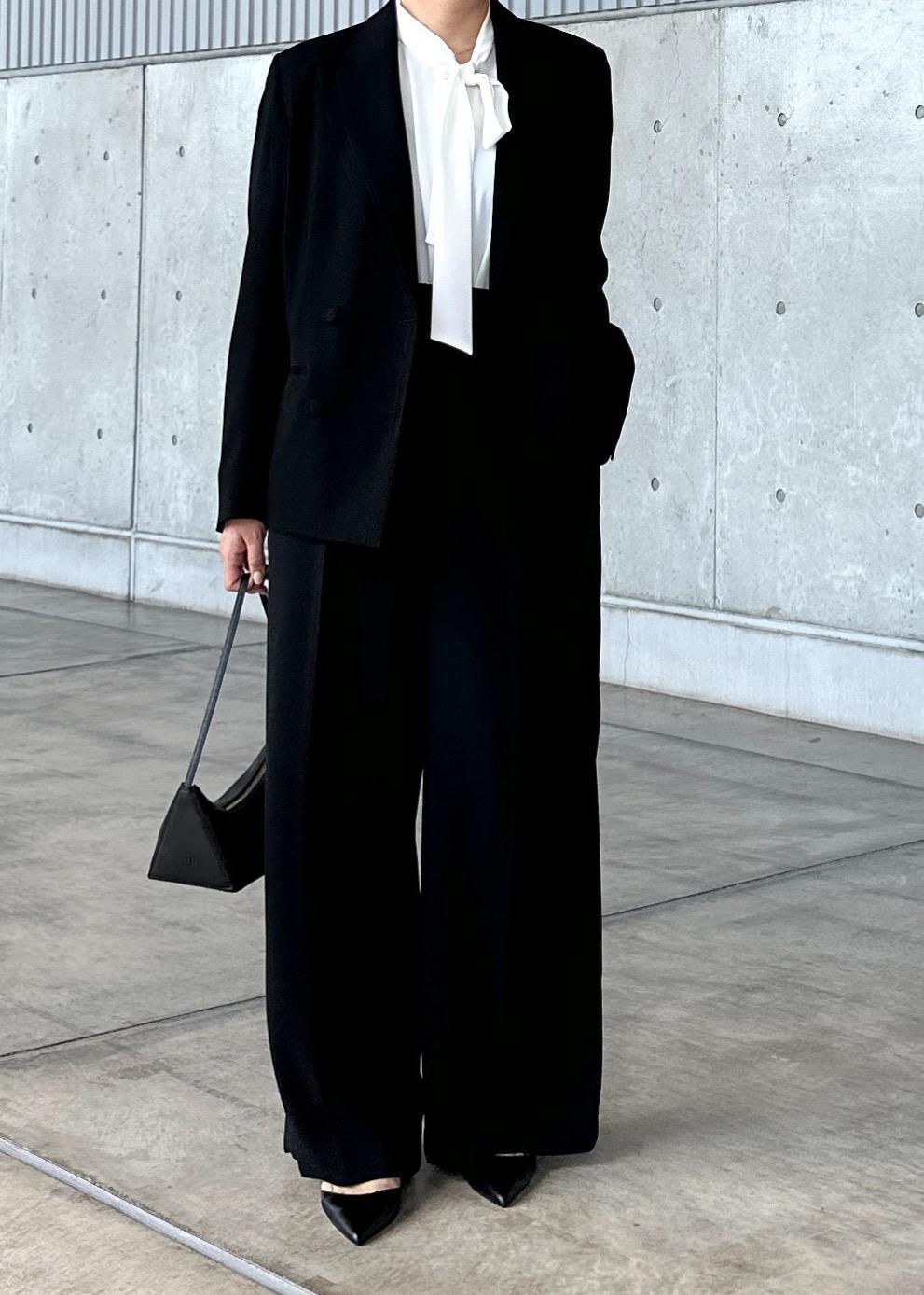 ROPÉ【洗える・カセット服・新色追加】バックサテンイージーワイドパンツ/お仕事・通勤・セットアップ対応ブラック / 38¥27,500レビュー162センチ 普段ボトム38、40サイズ