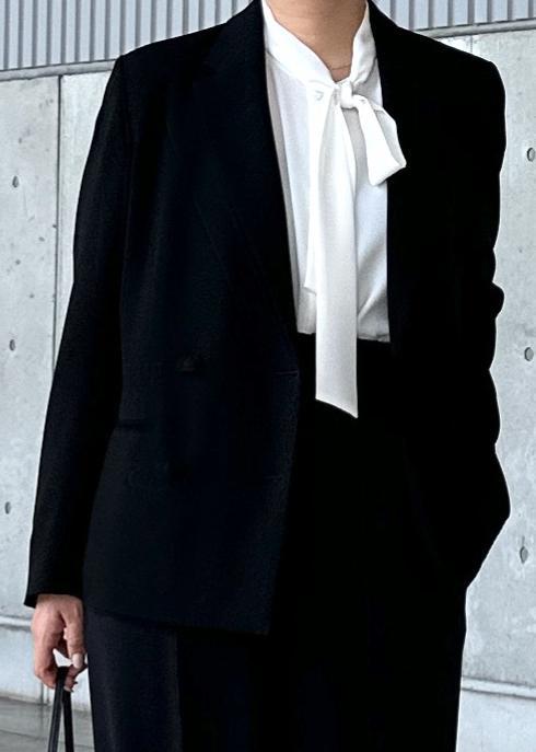 ROPÉバックサテンダブルブレストジャケットブラック / 38¥41,800レビュー162センチ 普段ジャケット38、40サイズ