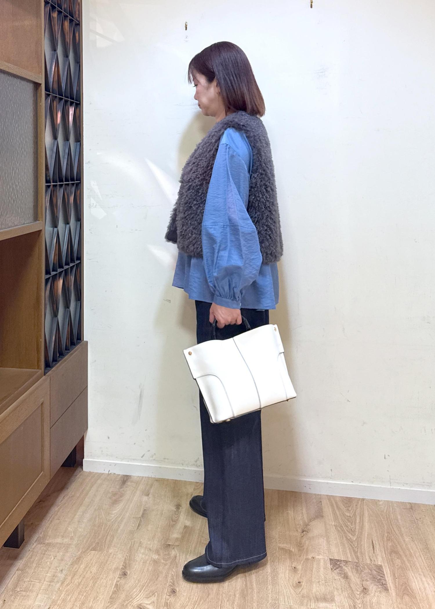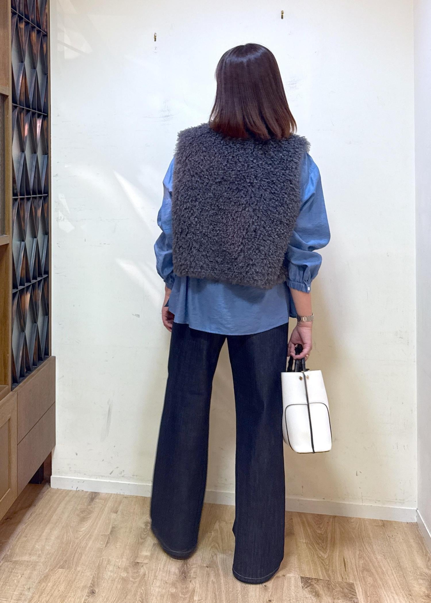 秋冬になると毎年ファーベストが欲しくなります。ブルーのカラーを基調にシンプルにセーラーデニムでキレイめに!!