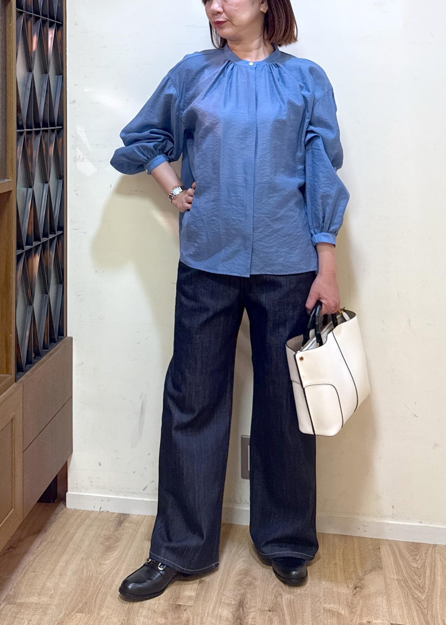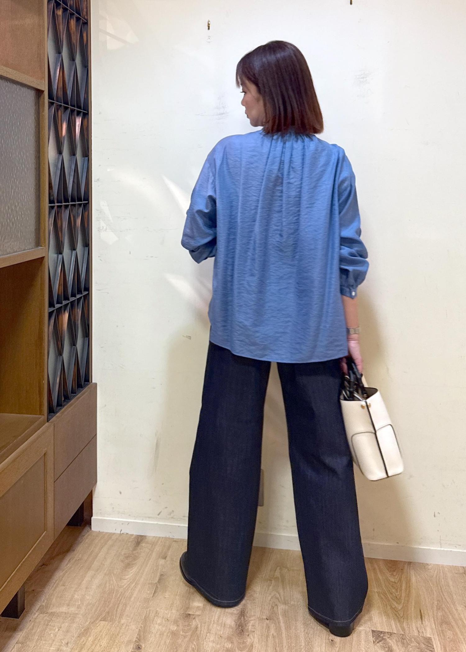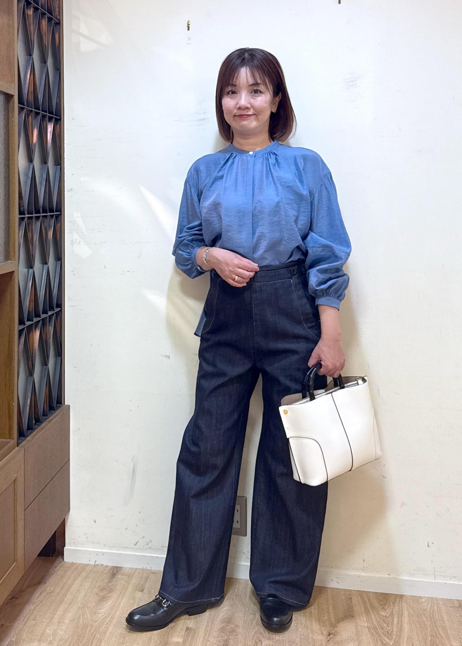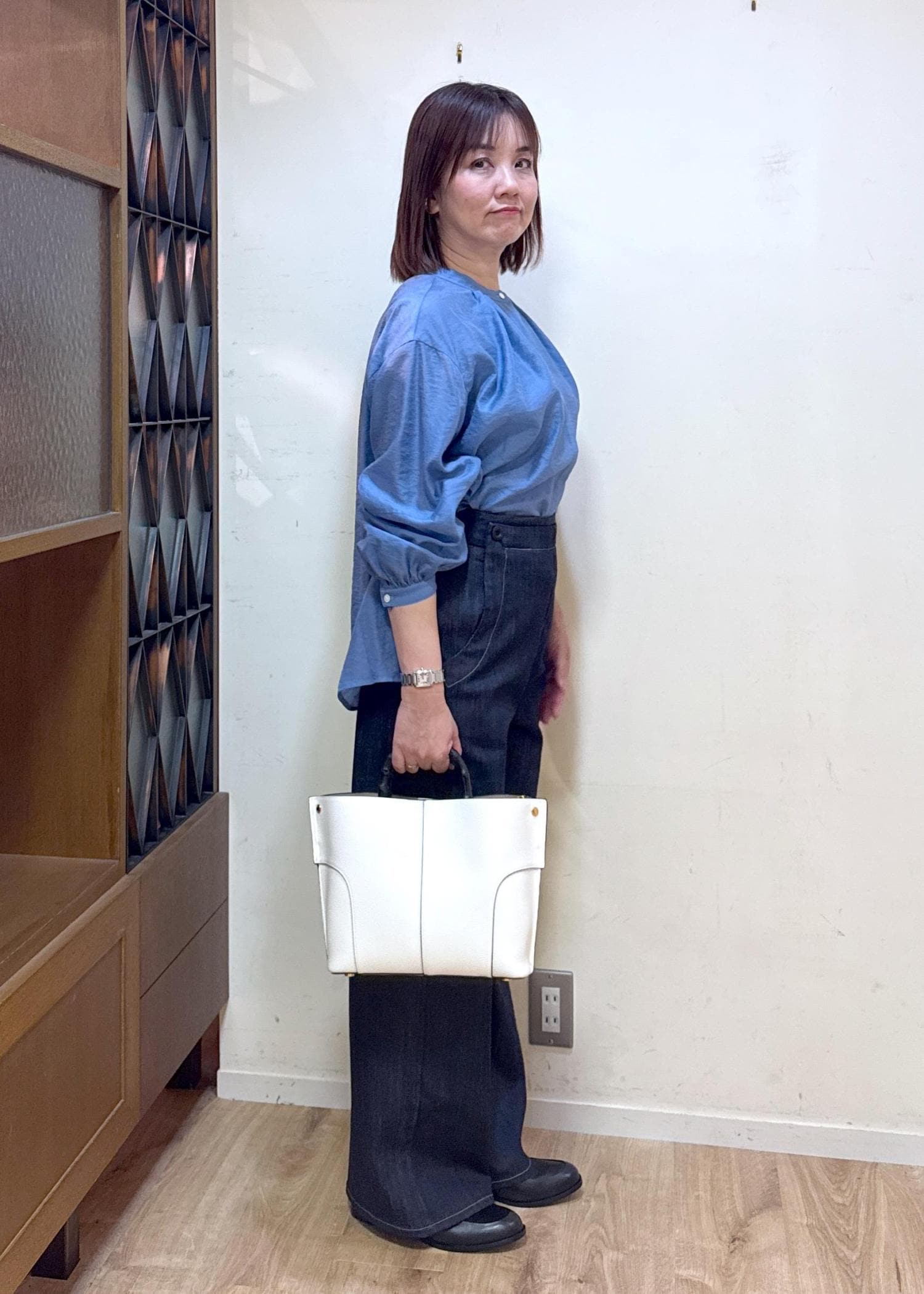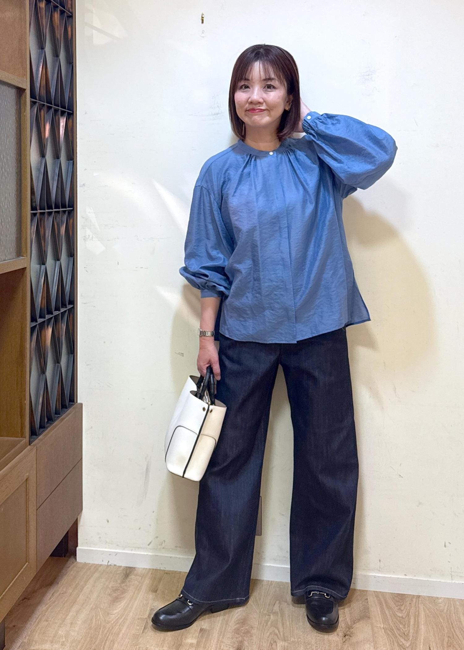 ROPÉキュプラシルクボリュームスリーブブラウス/イージーケアブルー系 / F¥19,800レビュー程よい透け感で今から季節の変わり目に大活躍できるブラウスです。袖口の内側にゴムがあるデザインなのでたくし上げるとキレイにお袖にボリュームが出るので可愛いです。きたけは腰にかからぐらいなのでボトムによってインでもアウトでも気にせず着用していただけます。