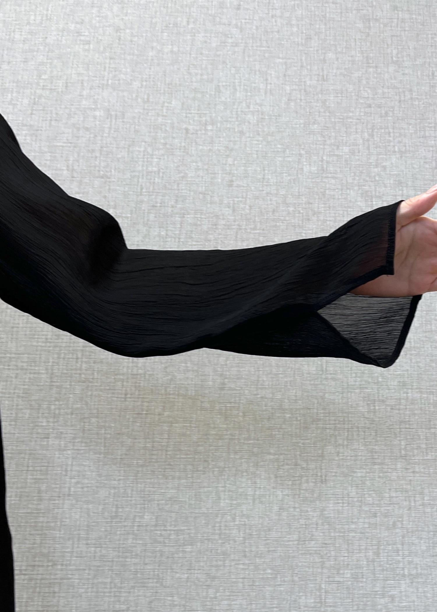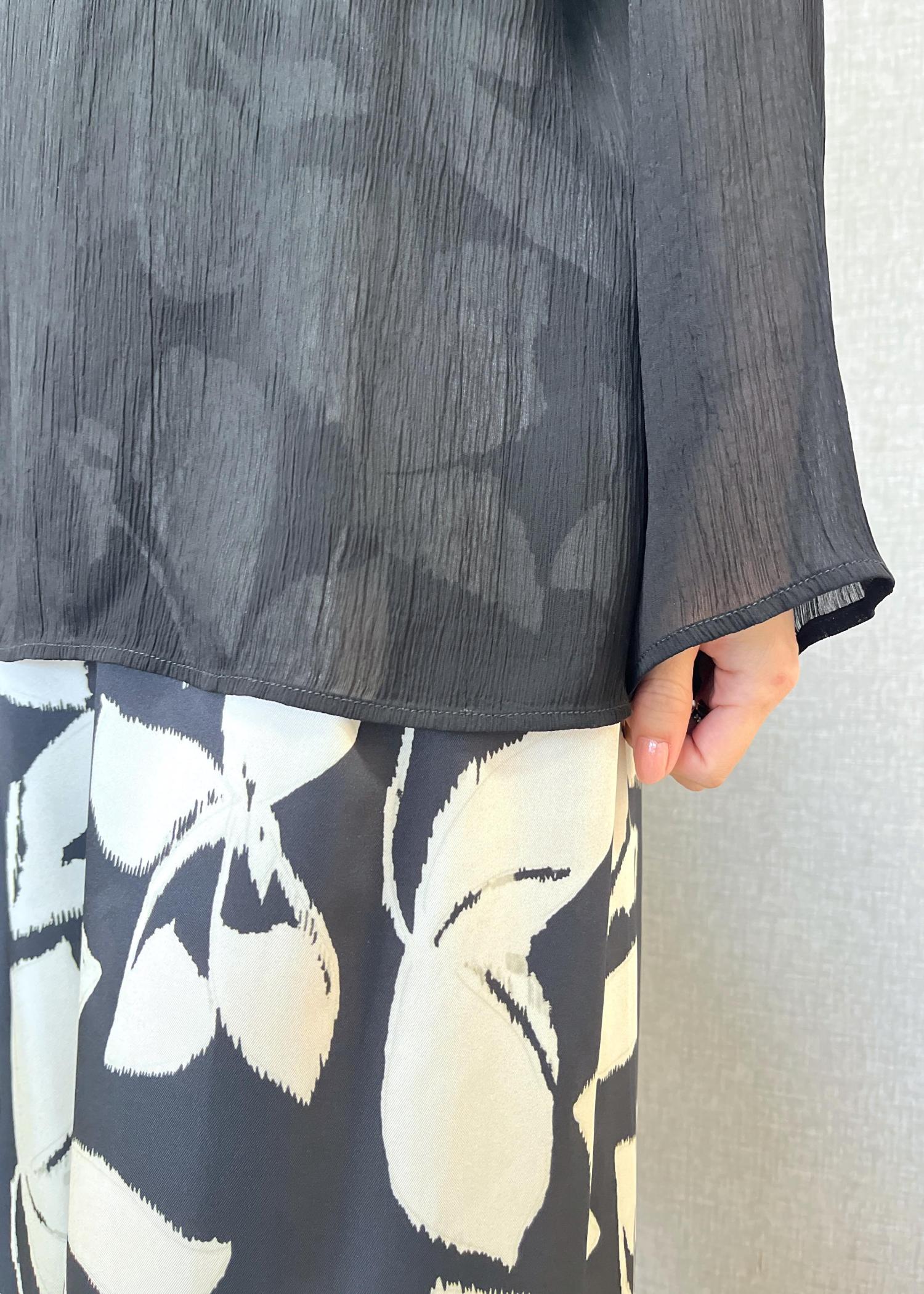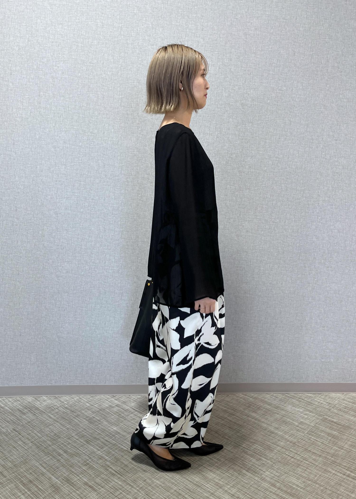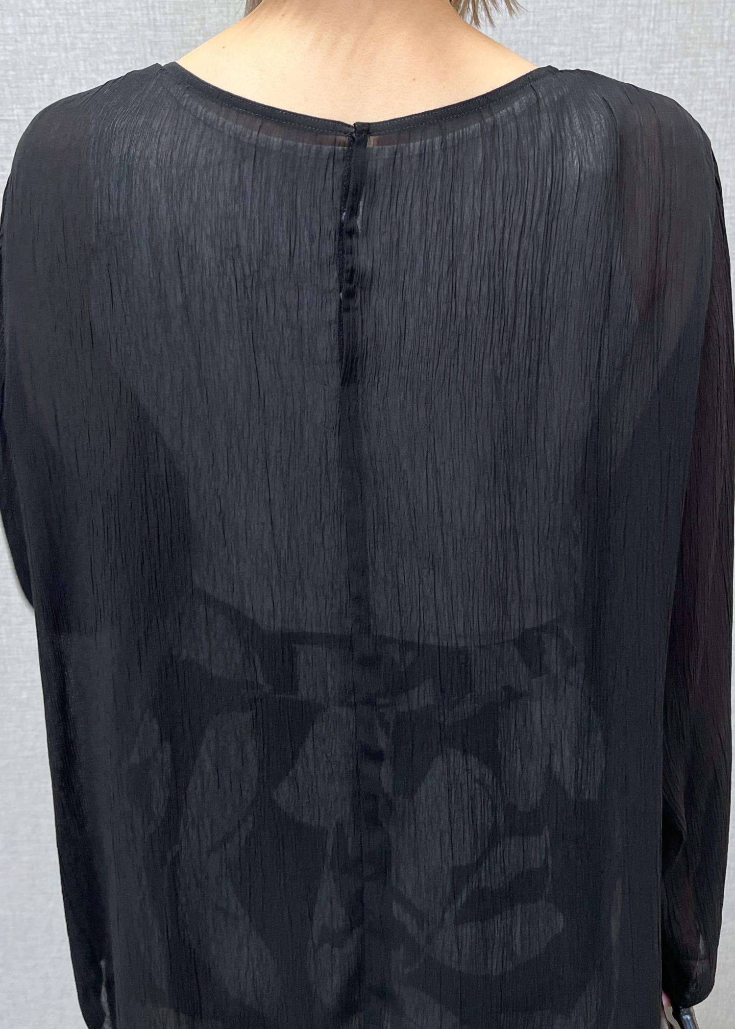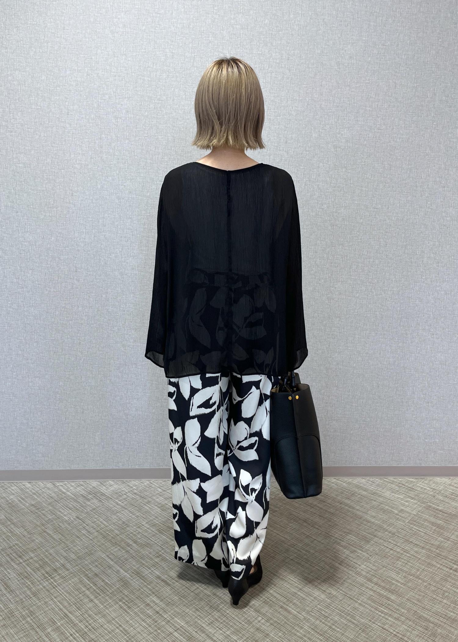 ROPÉ【洗える・前後2WAY】楊柳プルオーバー シアーブラウス【WEB・一部店舗限定】ブラック / F¥17,600レビュー肩はジャストですが、袖と裾が少し長めになったデザインですので上下でゆるっと着こなすのが私のおすすめです。