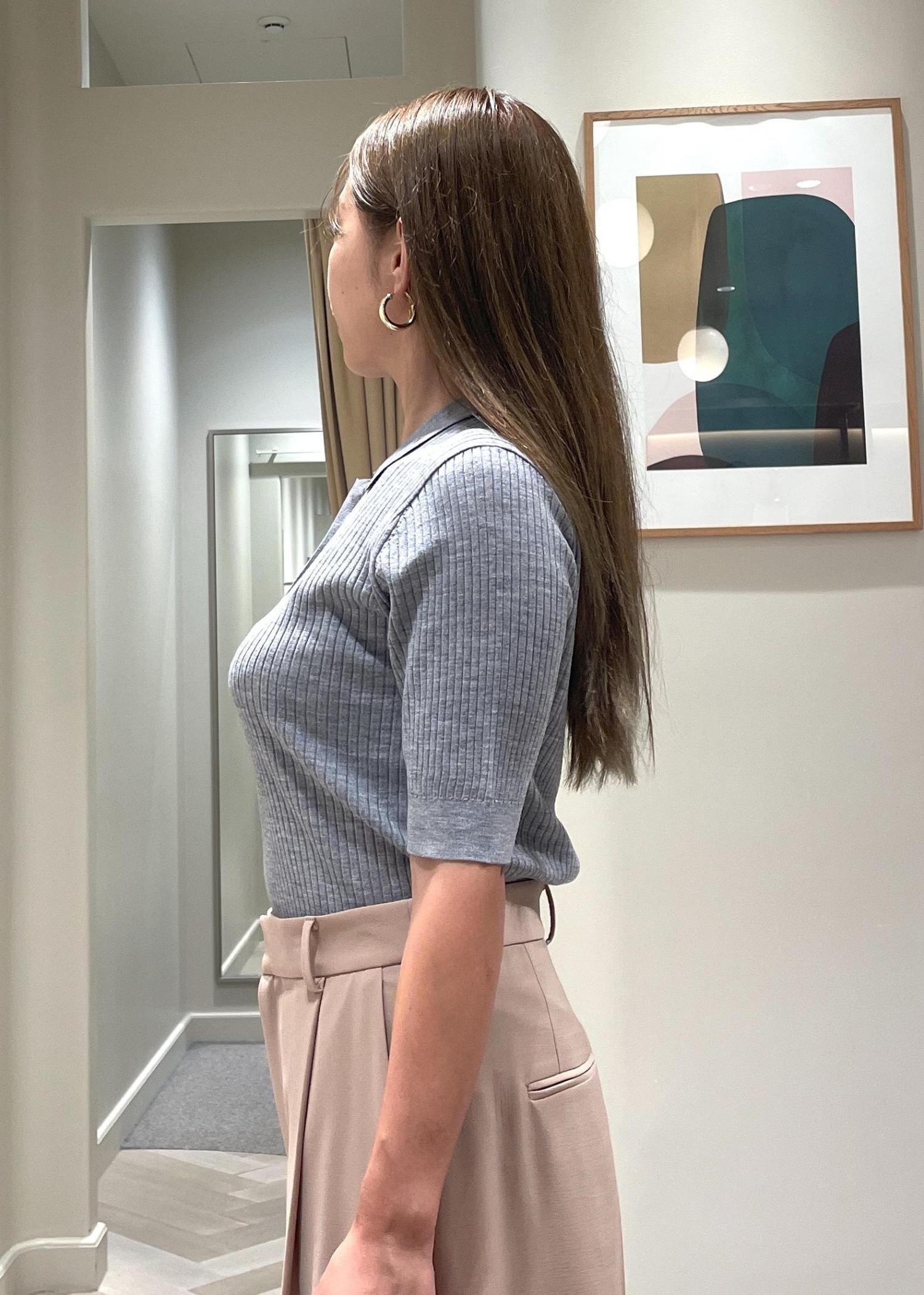 ROPÉパール釦ポロニット/イージーケアグレー / F¥19,800レビューウールの柔らかくて軽い生地感が着心地よく、