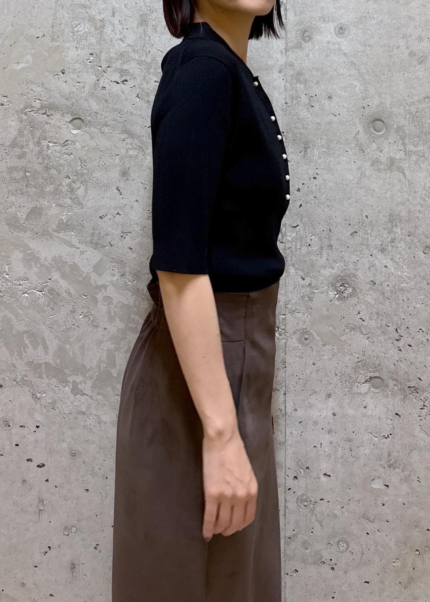 ROPÉパール釦ポロニット/イージーケアブラック / F¥19,800レビューパールボタンが華やかなポロ襟ニット。