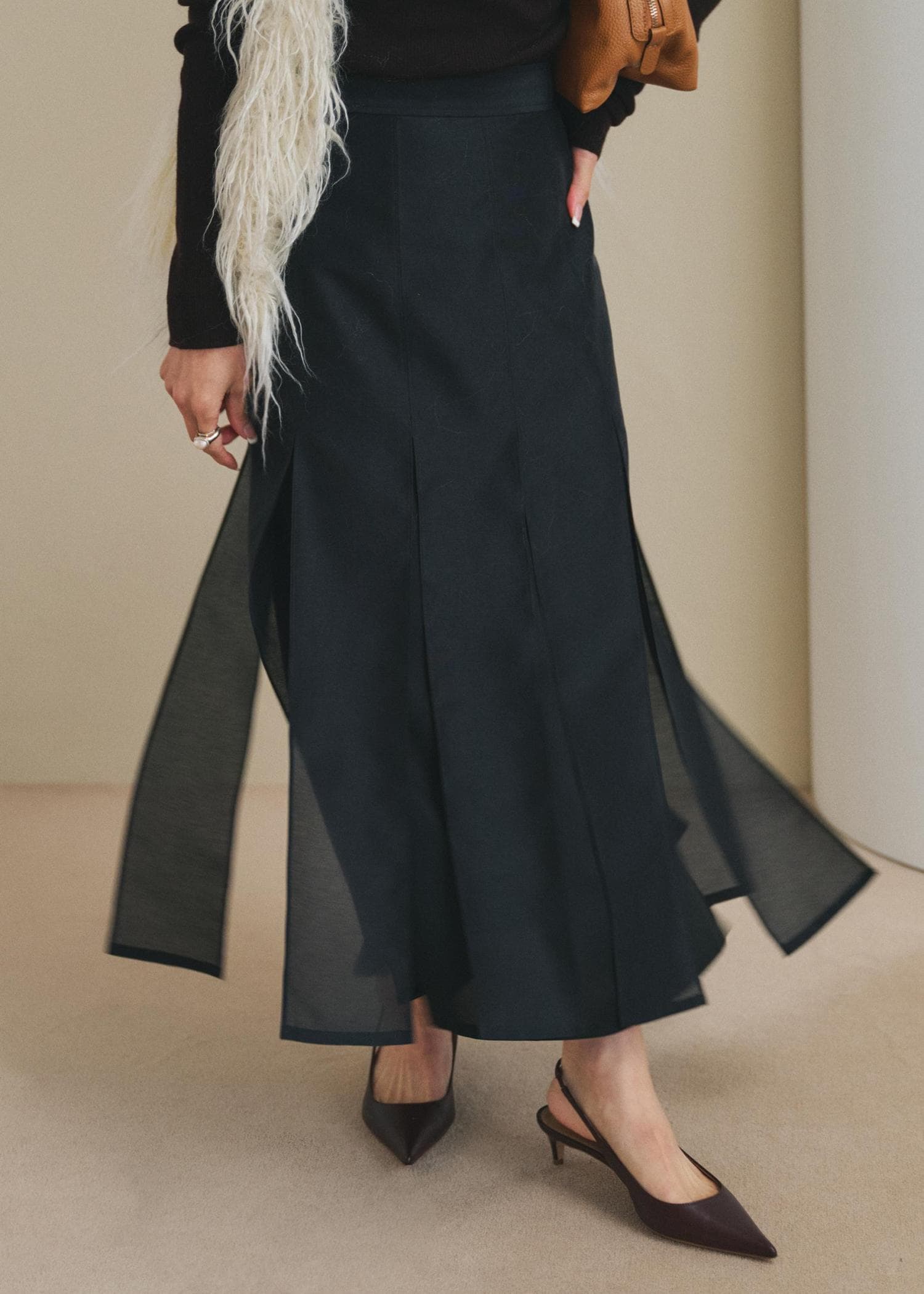 ROPÉ SELECT【一部店舗限定】【REALM(レルム)】PANEL SKIRT|スカートブラック / 36¥39,600レビュー程よいシアー感と上品な光沢感が魅力の軽やかなスカート。ウエストからヒップ部分まではスッキリとしたラインで、動くたびに揺れるラインが美しいです。季節が進んだ時にはロングブーツを合わせても◎
