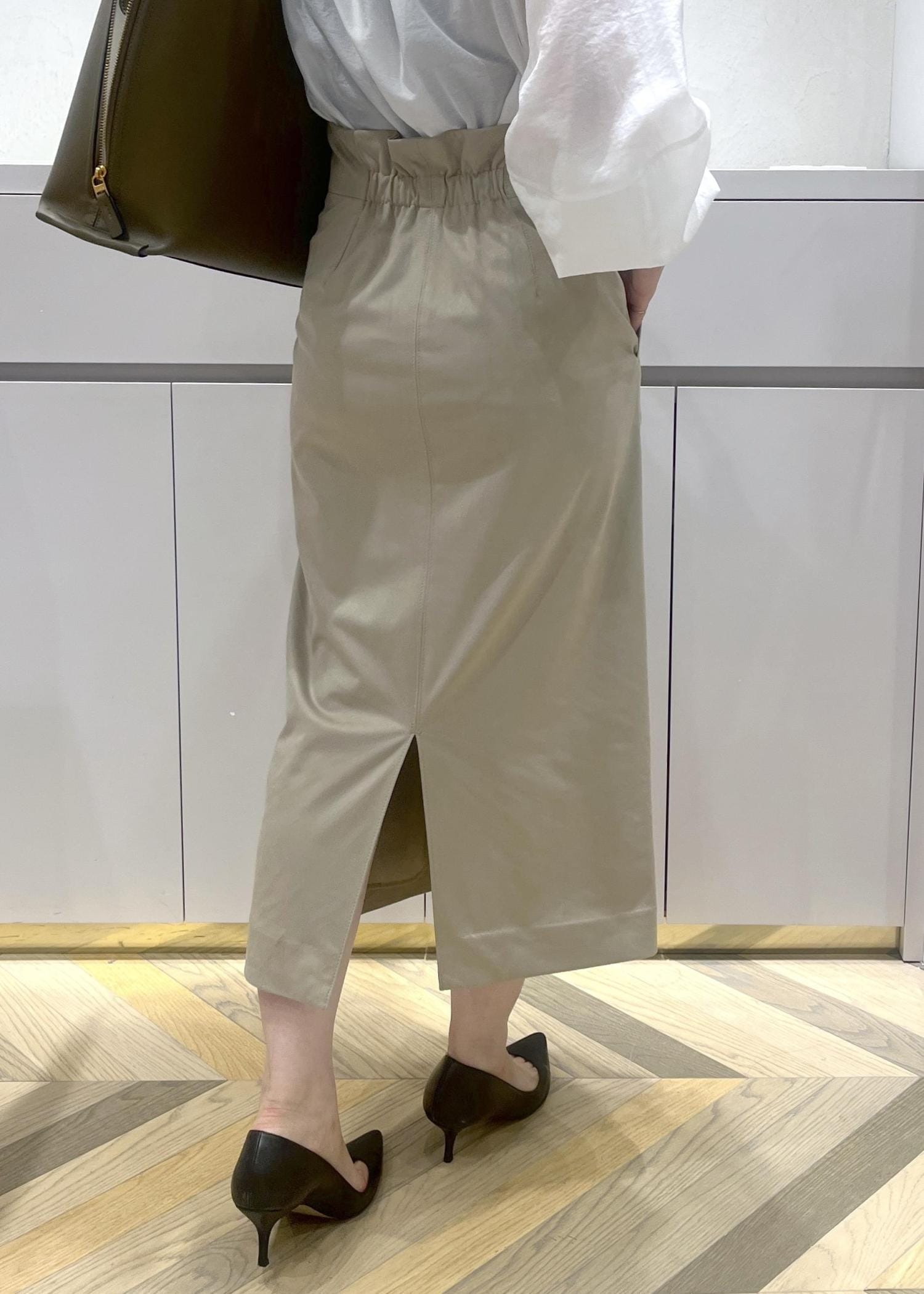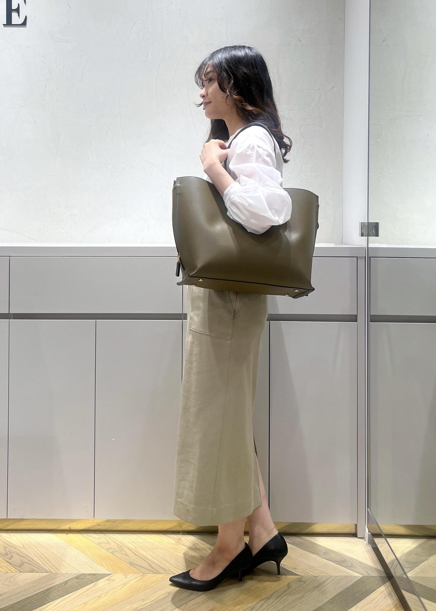バッグはカーキを合わせ少し秋要素を取り入れました。