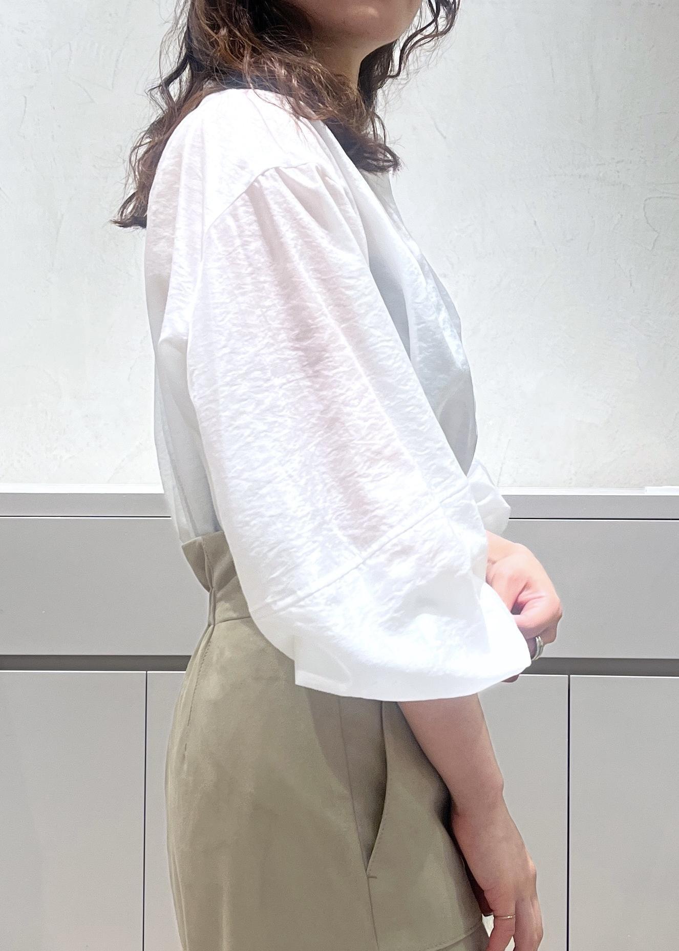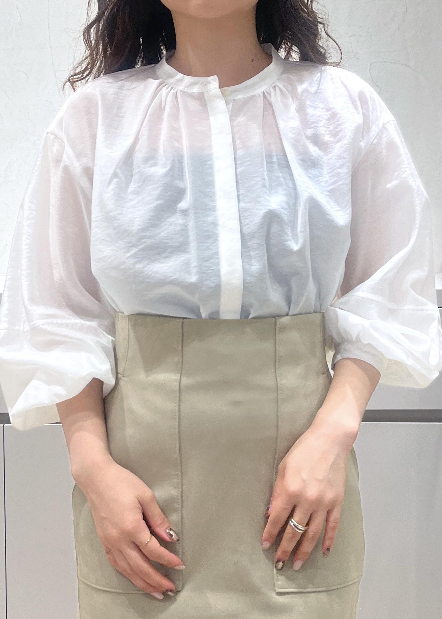 キュプラシルク素材で、シアー感と光沢があります。ホワイトは1番透け感があるので、白やベージュのインナーですと綺麗に着用いただけます◎ -