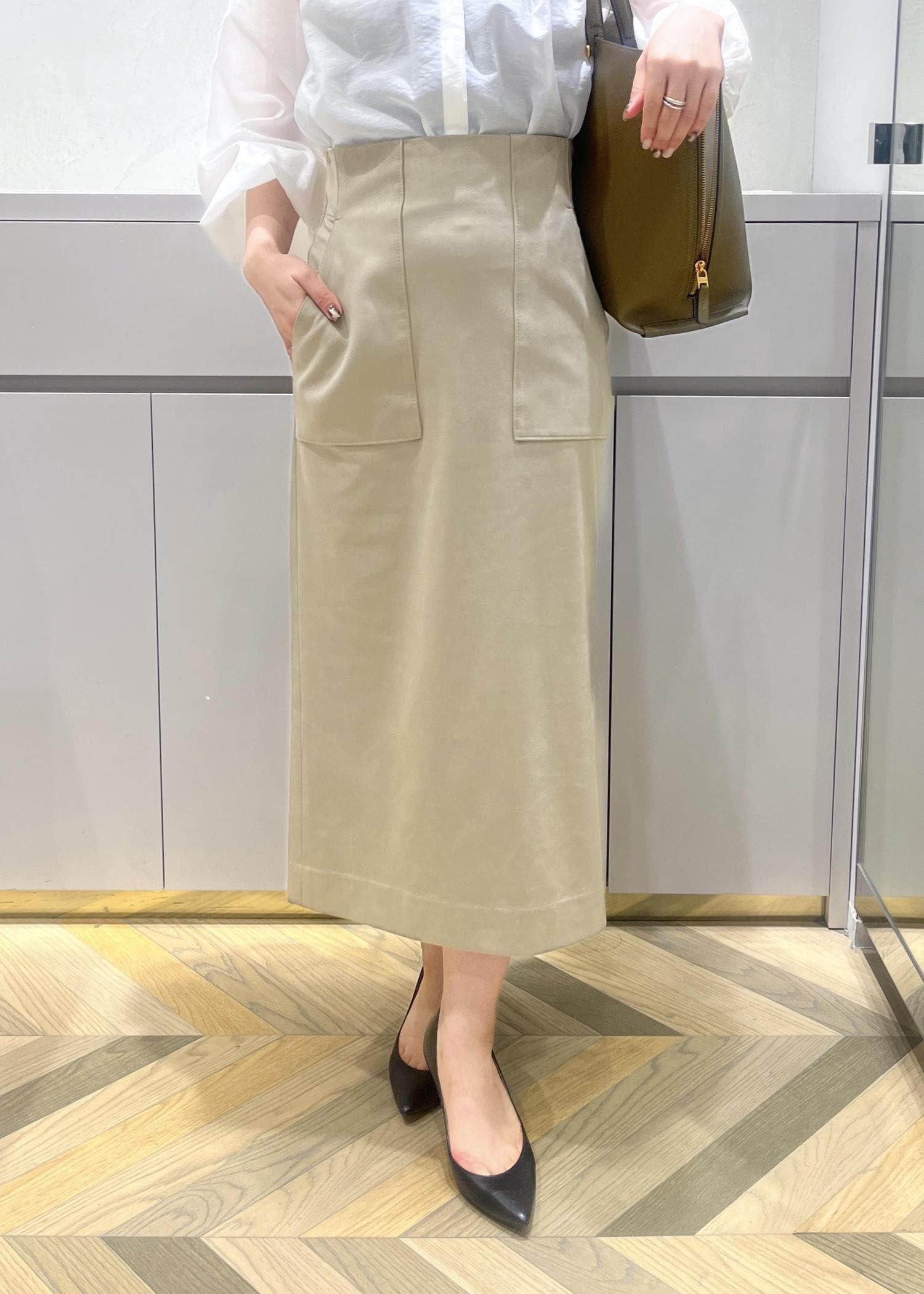 ROPÉ[美人スカート]スエードポケット付きタイトスカート/イージーケアベージュ / 36¥25,300レビュー36サイズを着用しています。