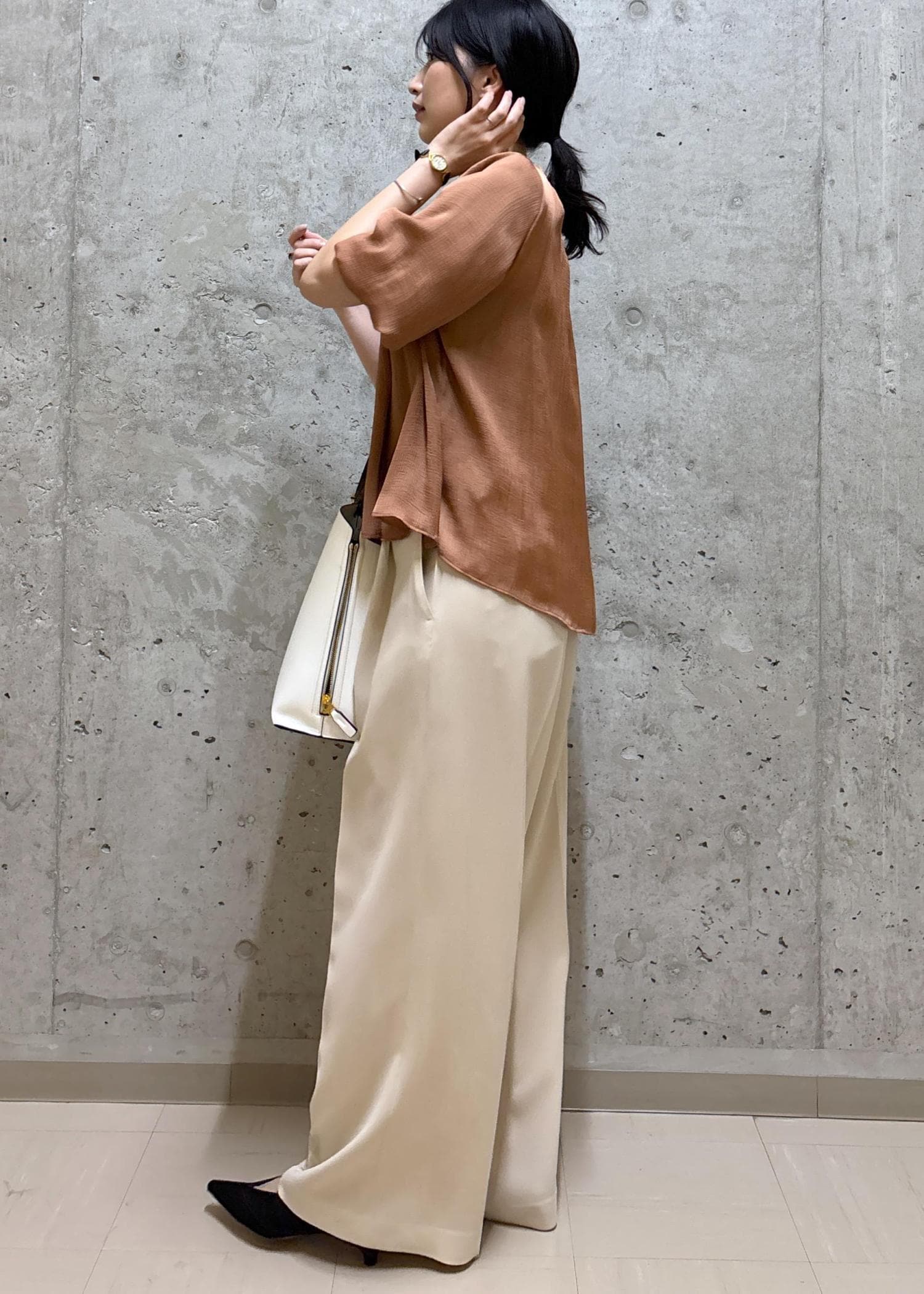 薄すぎないサラッとした手触りでほぼシワが付かず、シーズン問わず履けます。
