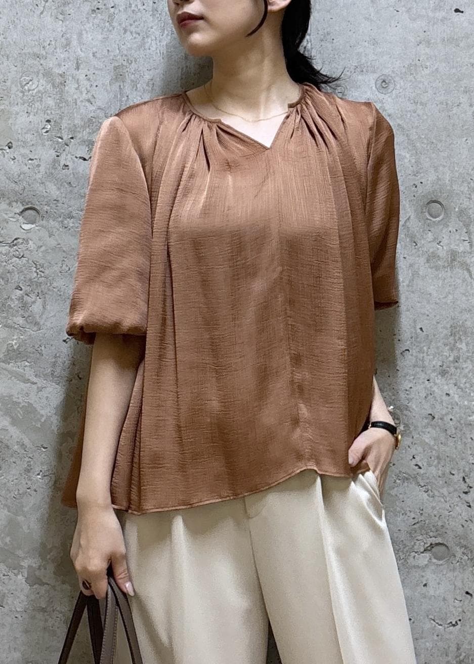 肘が隠れる5分袖で袖口にゆとりがあり、少しふんわりしています。