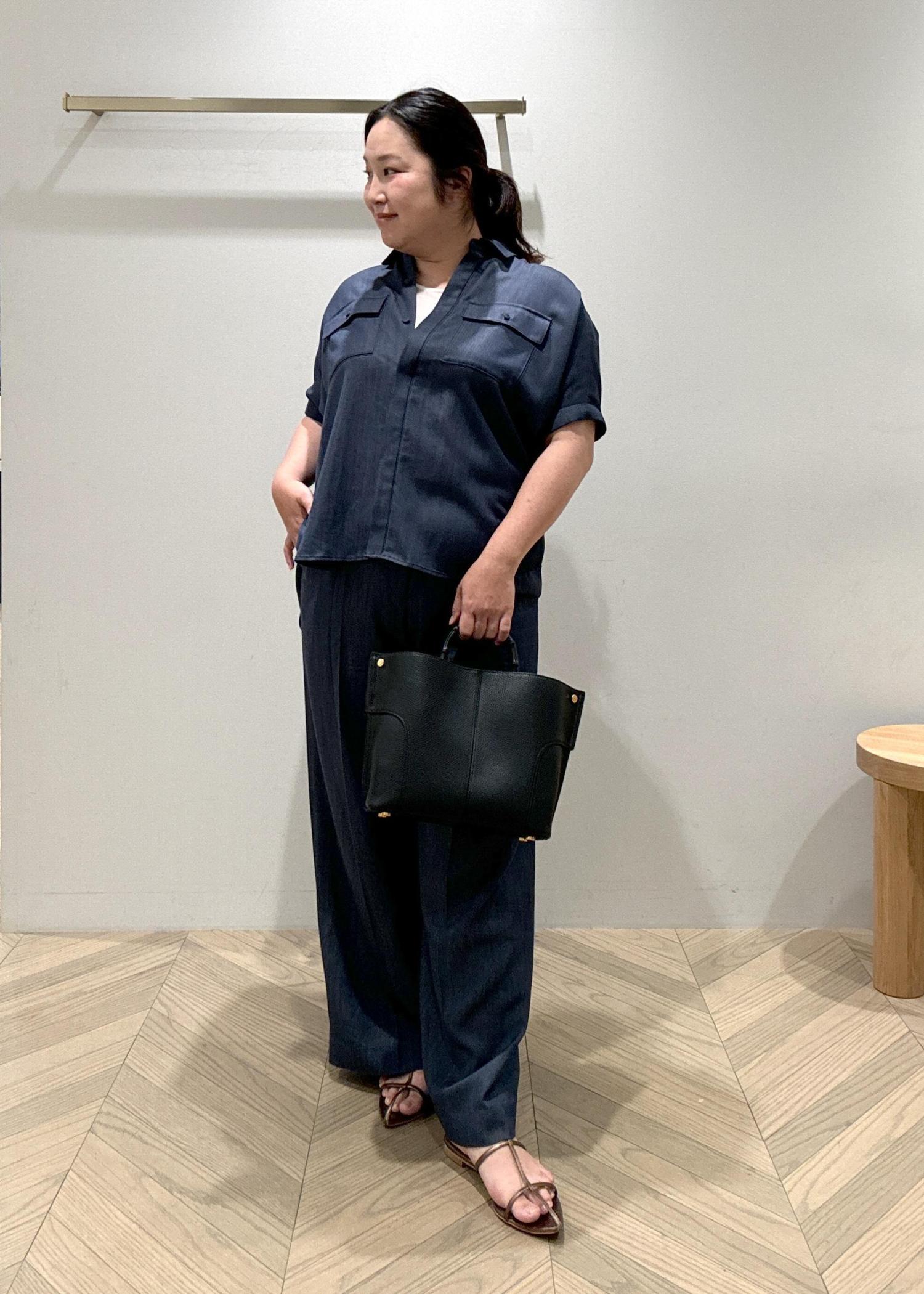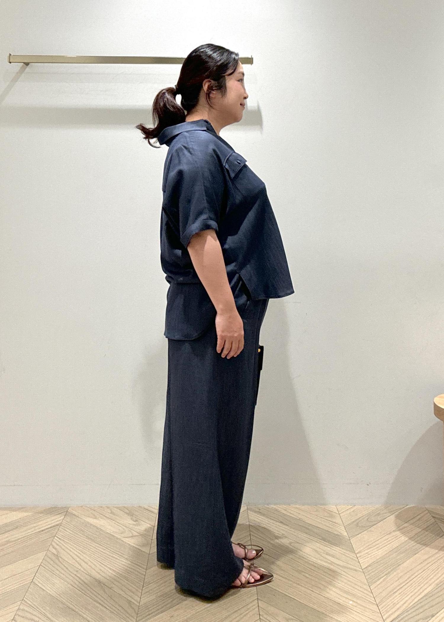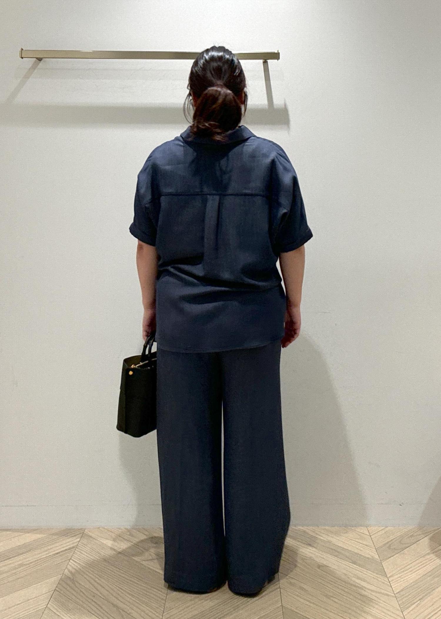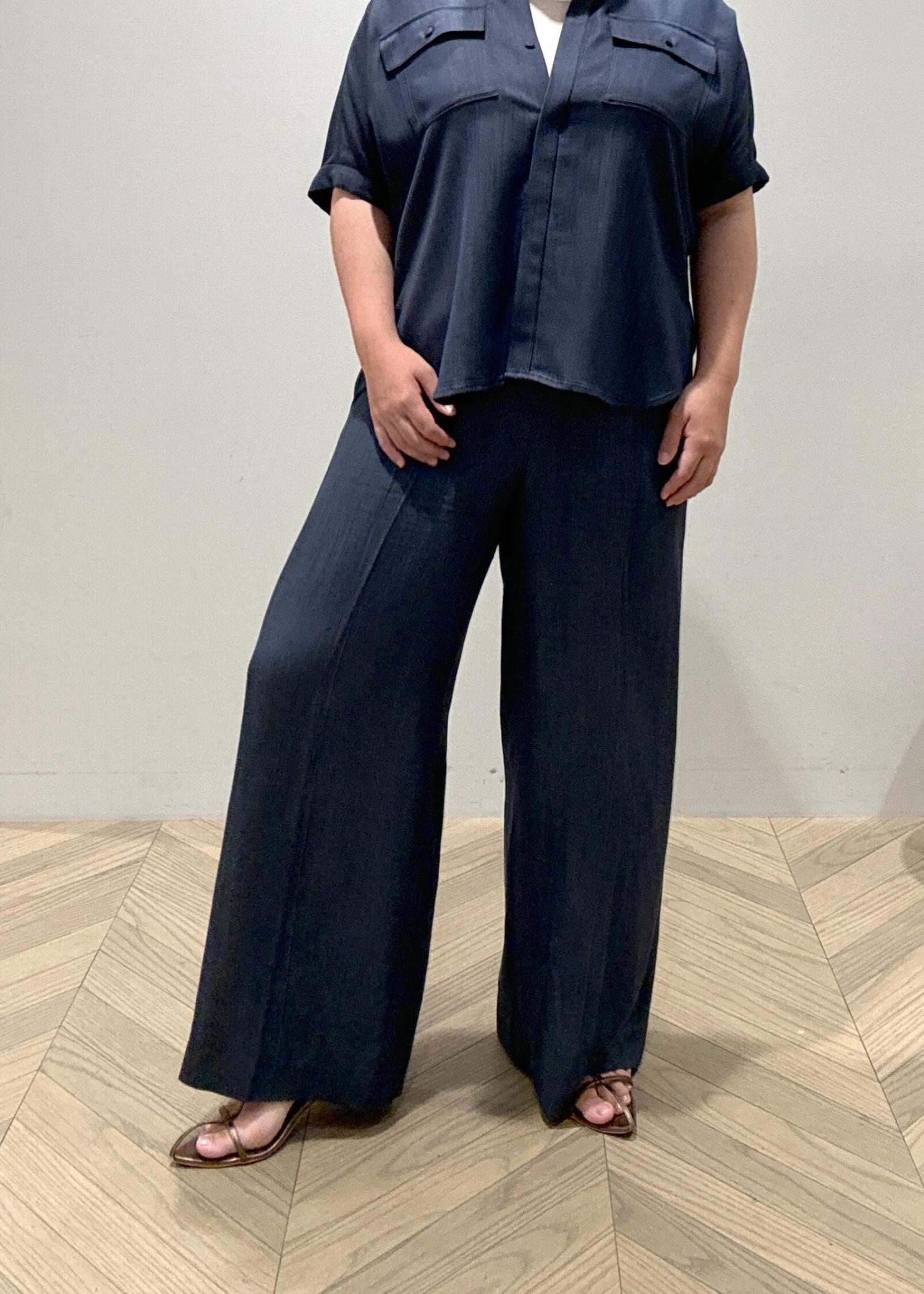 ROPÉ【洗える・カセット服・新色追加】バックサテンイージーワイドパンツ/お仕事・通勤・セットアップ対応ネイビー系 / 38¥27,500レビューウエストゴム、タックで履きやすいパンツです。