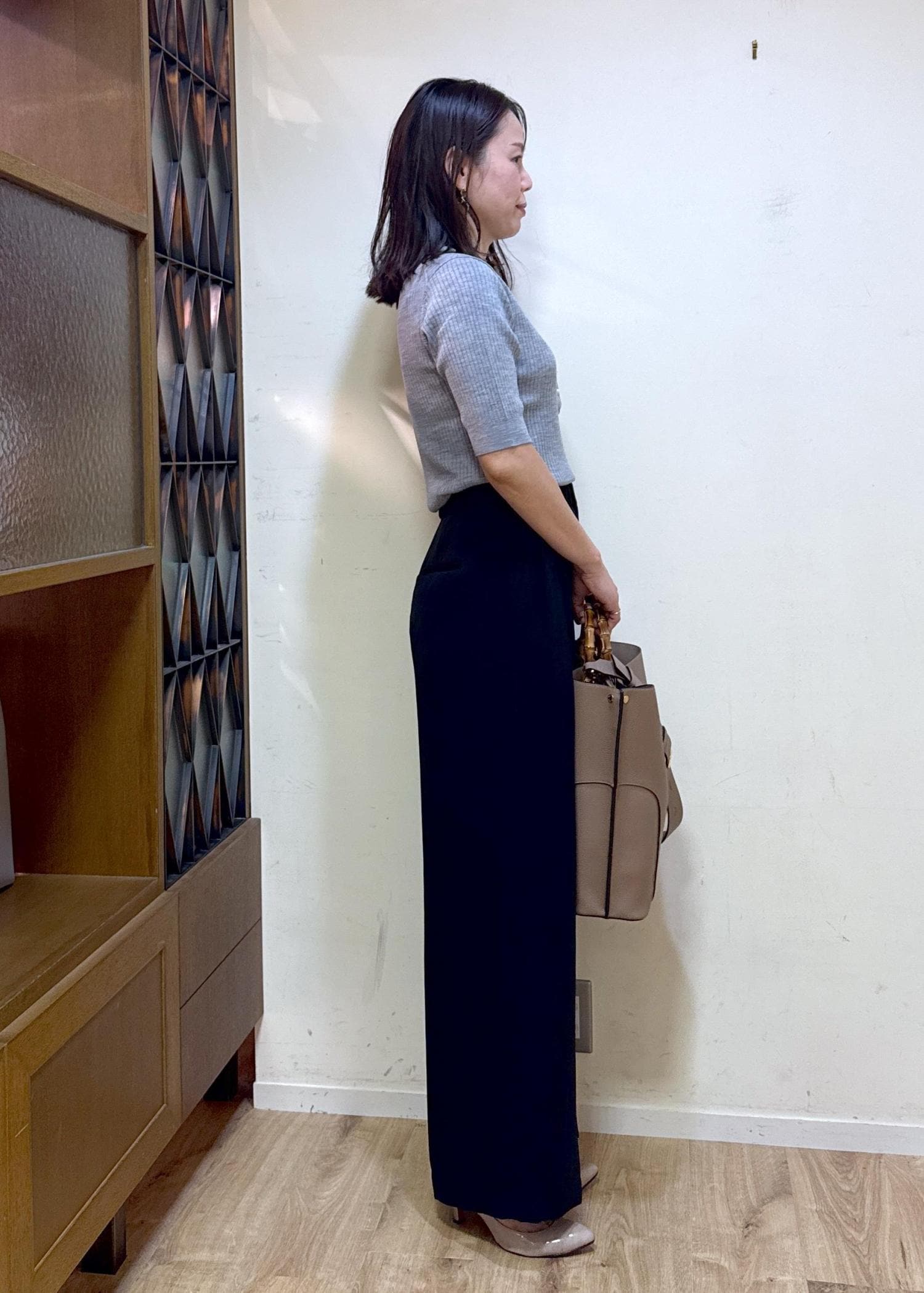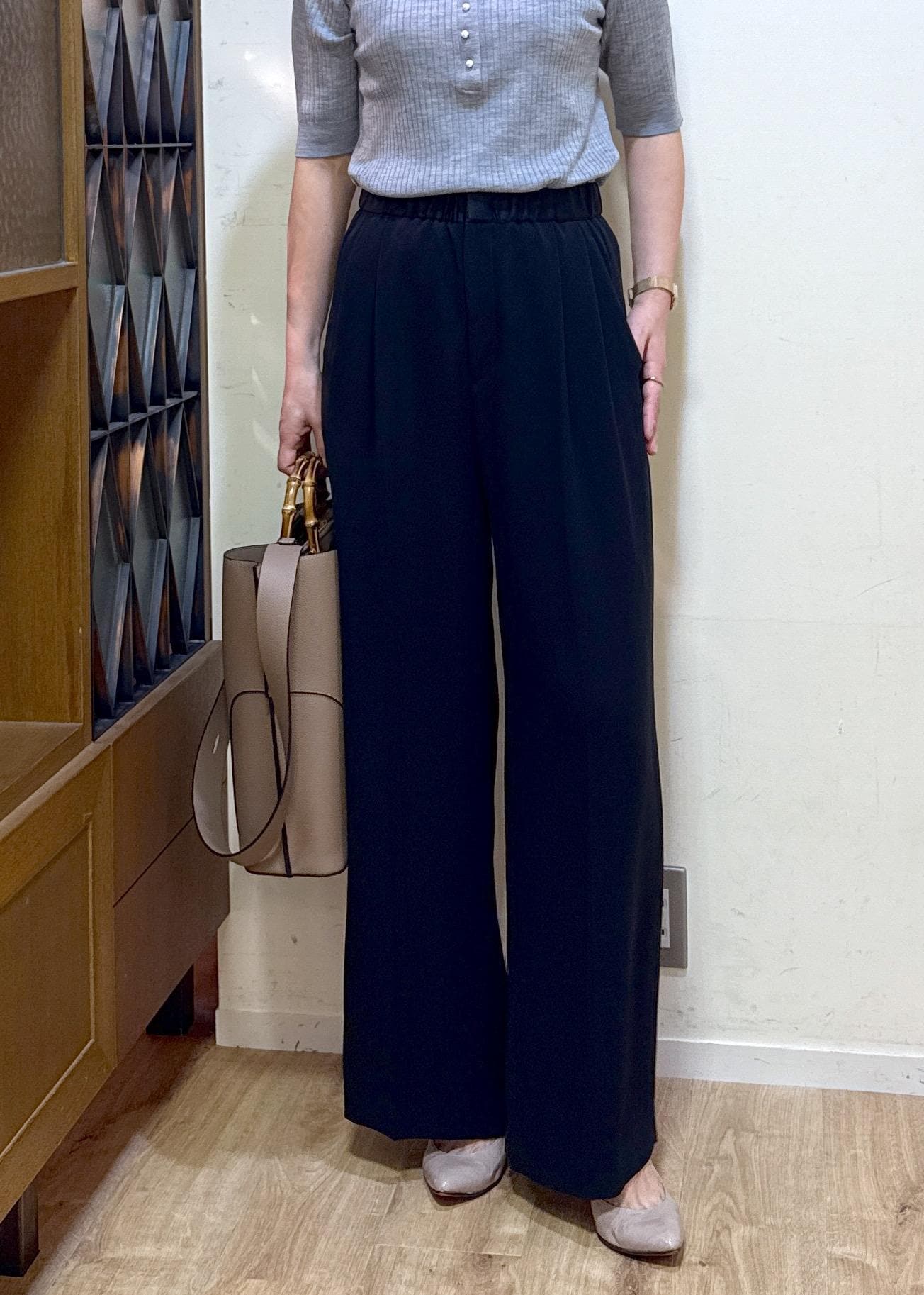 ROPÉ【洗える・カセット服・新色追加】バックサテンイージーワイドパンツ/お仕事・通勤・セットアップ対応ブラック / 36¥27,500レビュー163センチ 36サイズ着用