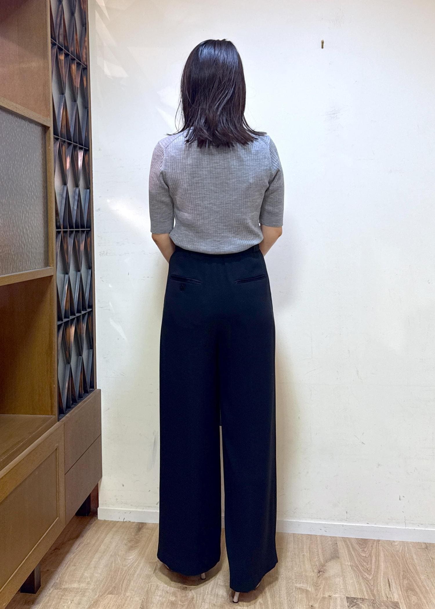 パール釦がポイントのポロニットをワイドパンツとコーディネート!